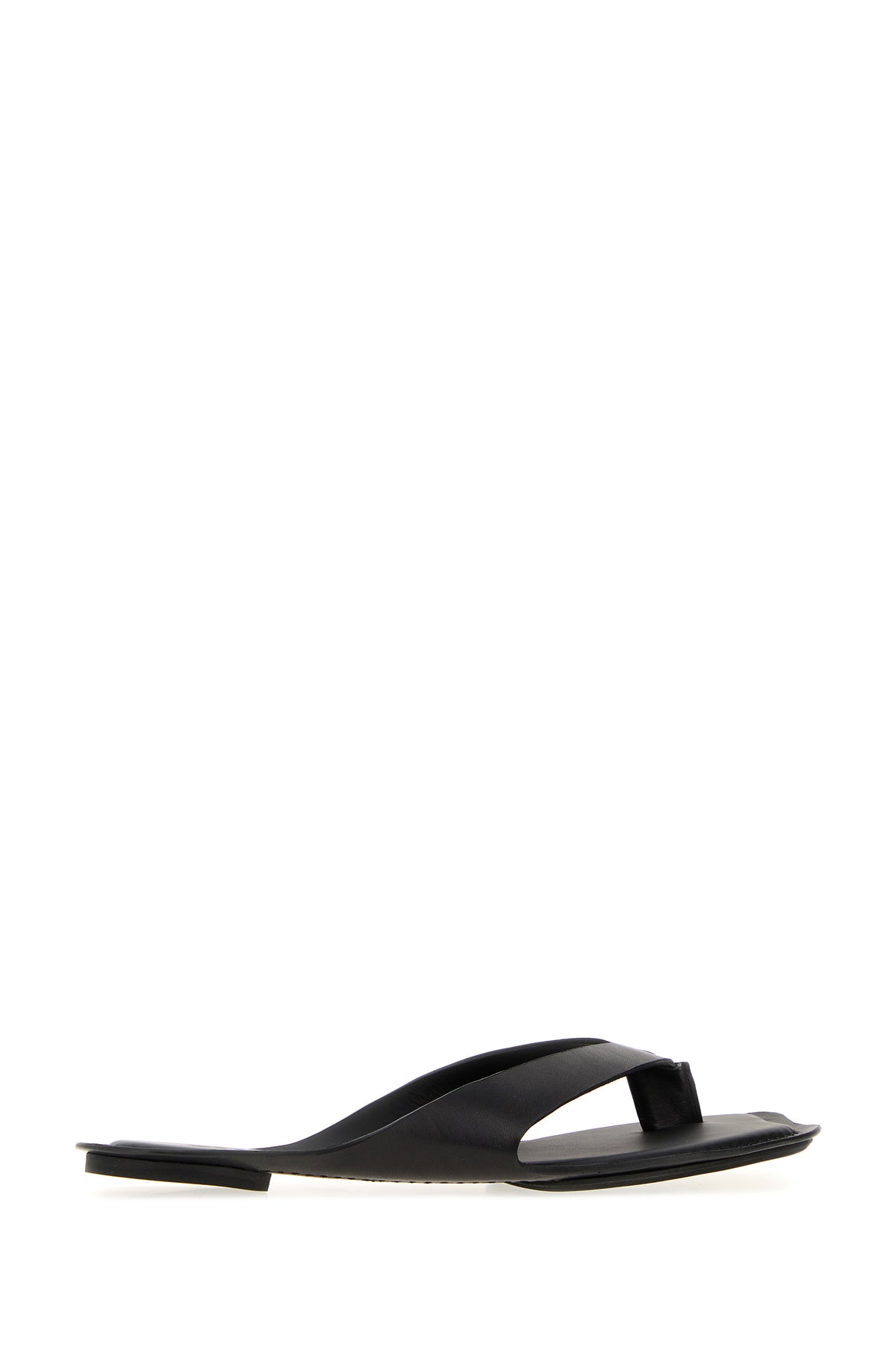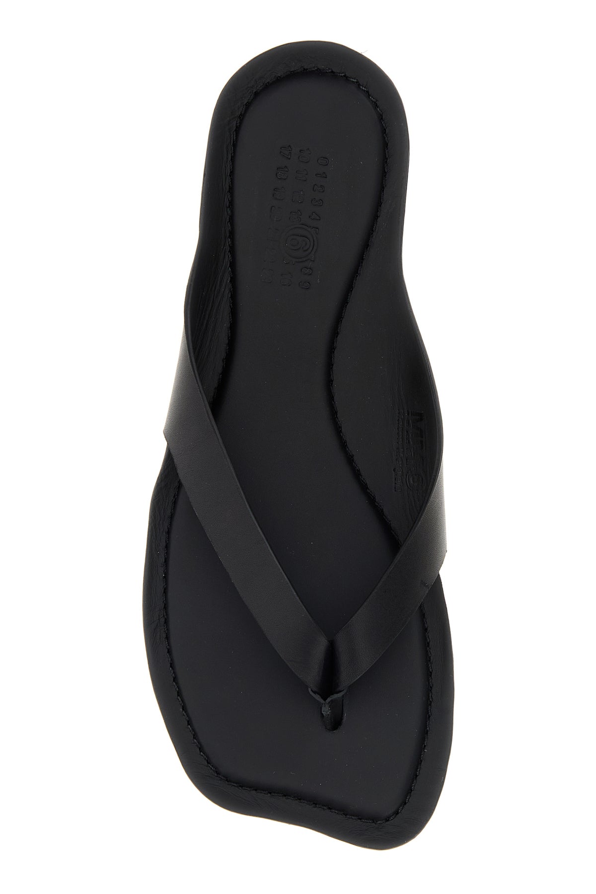Thong slippers realized in calf leather characterized by peculiar toe.