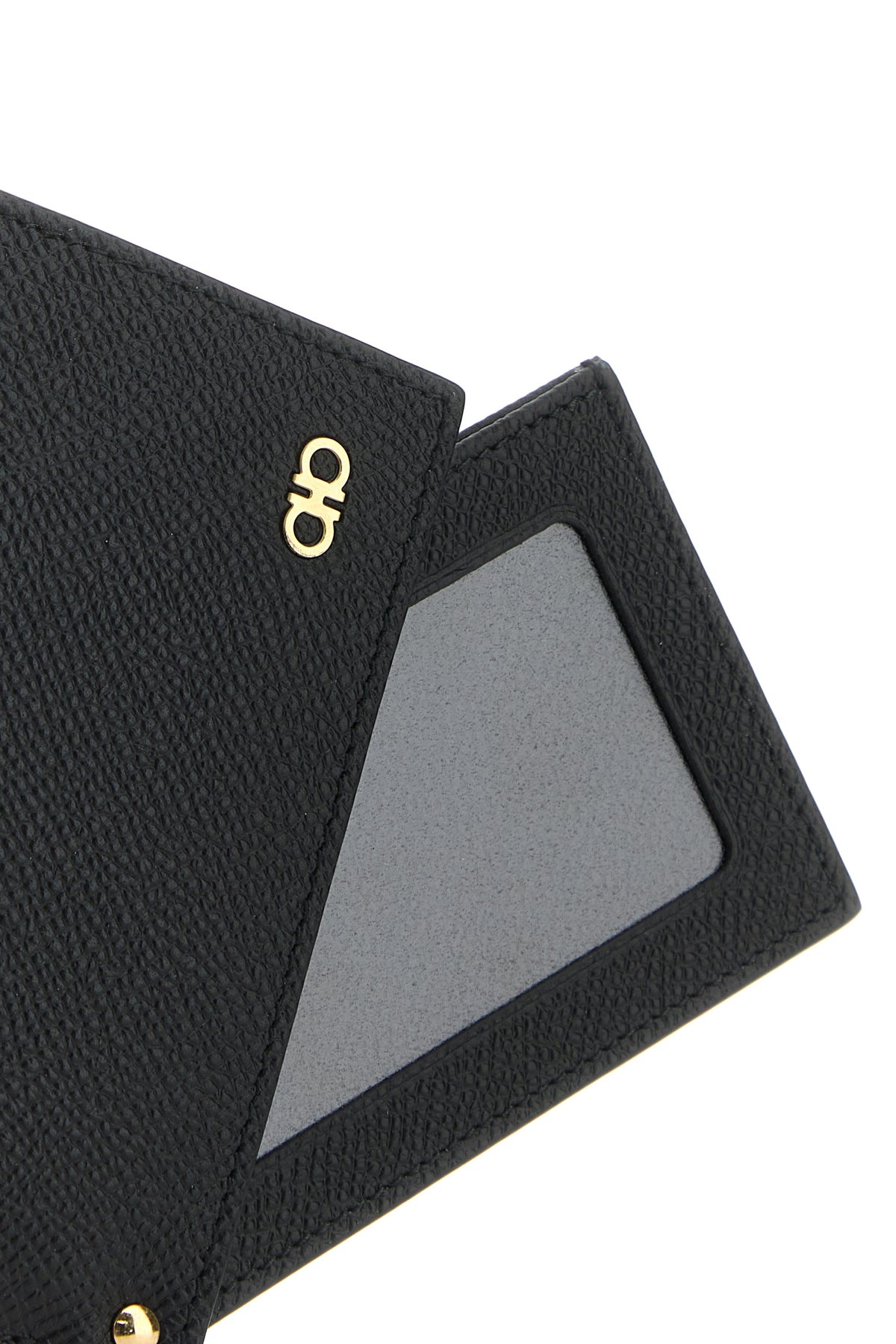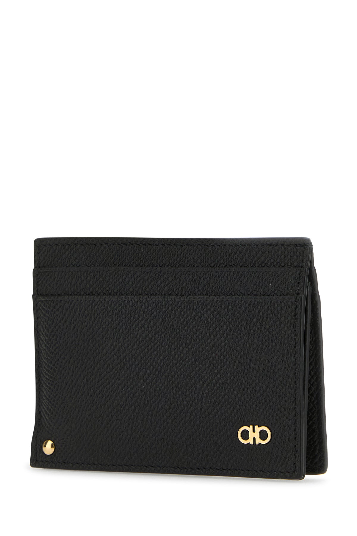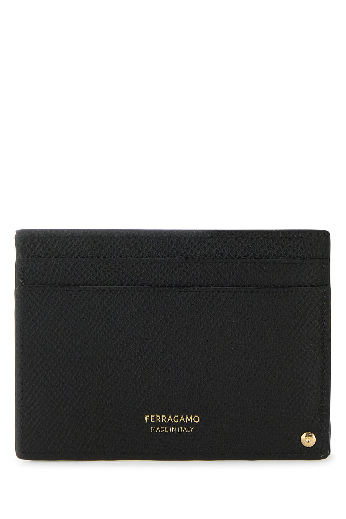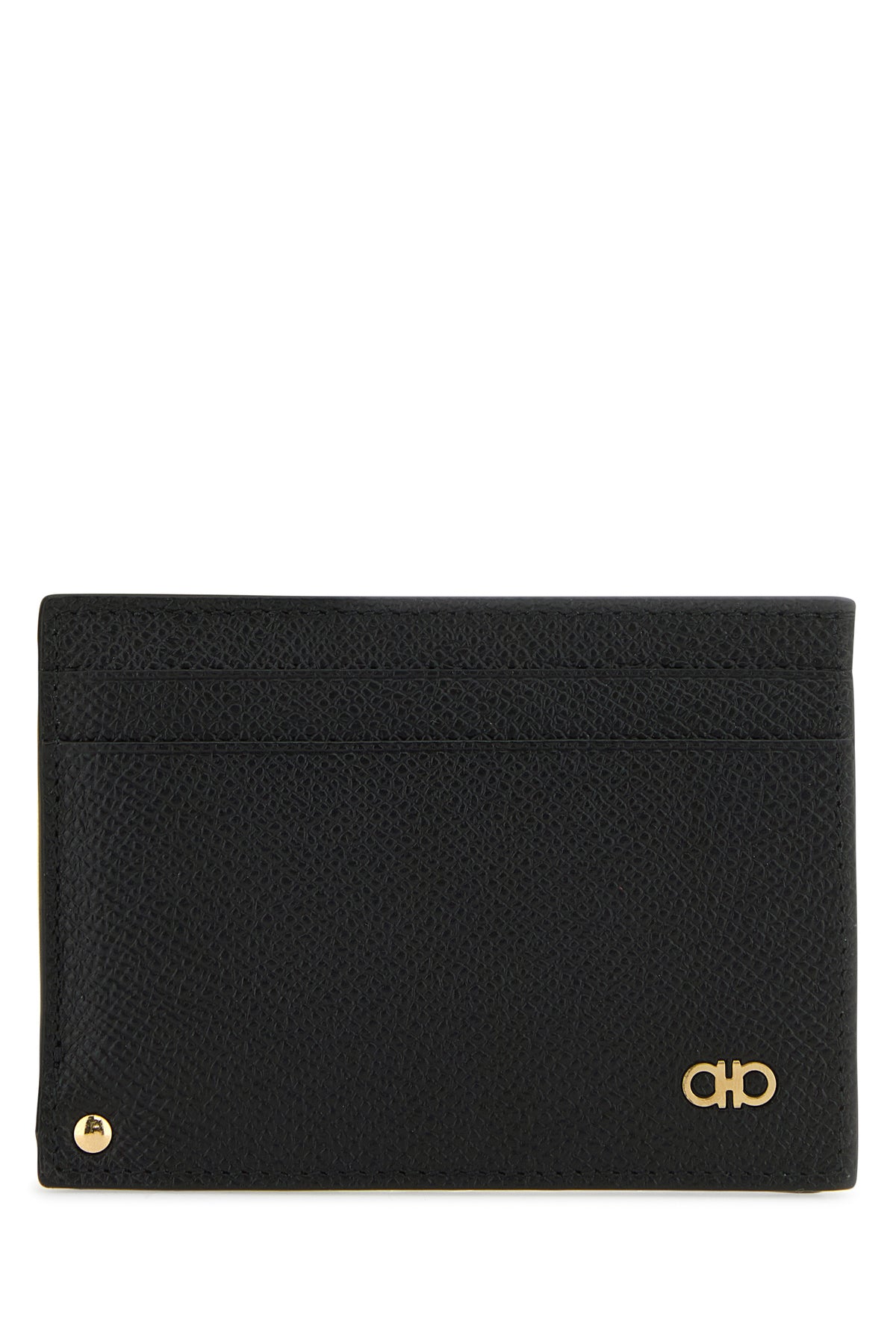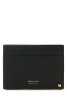 Card holder realized in grained calf leather characterized by contrasting printed logo at the back enriched by metal Gancini detail at the front.
