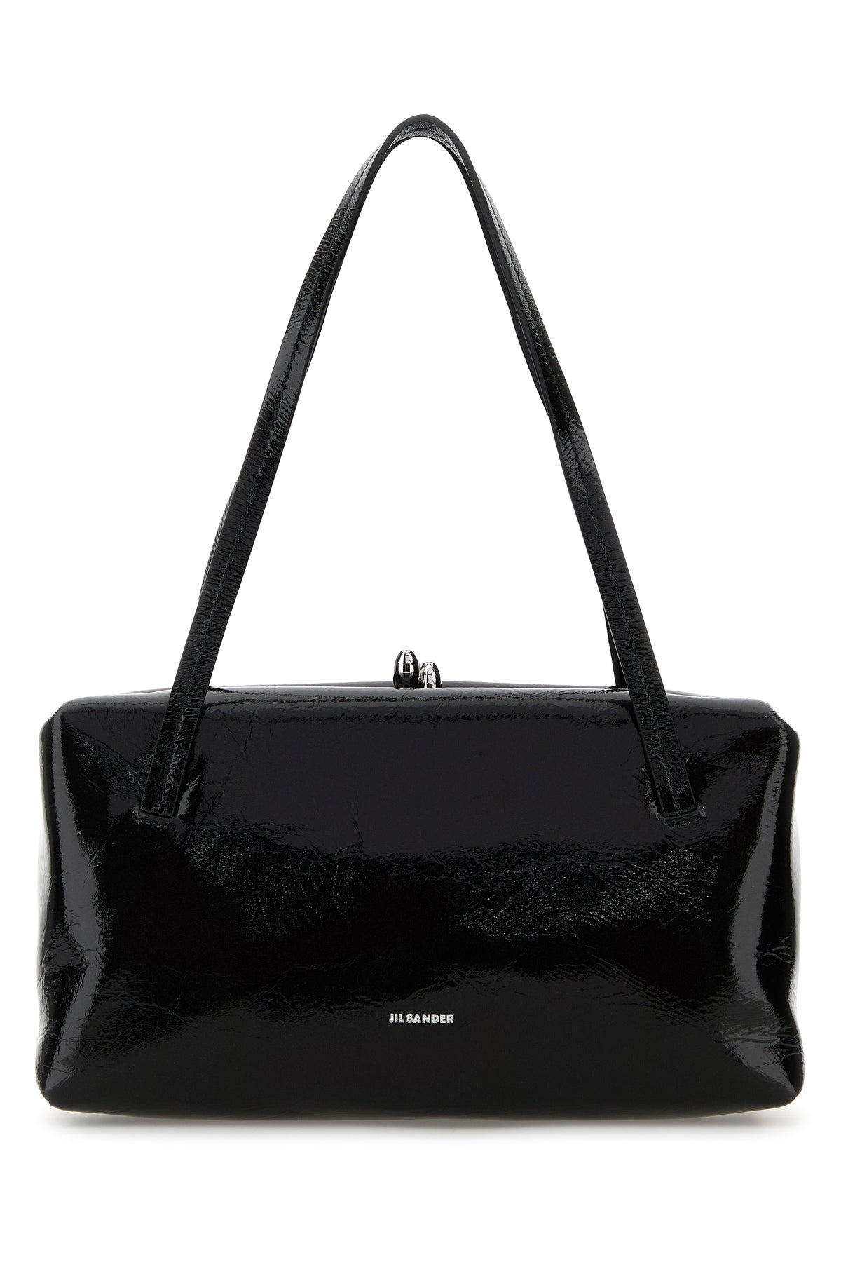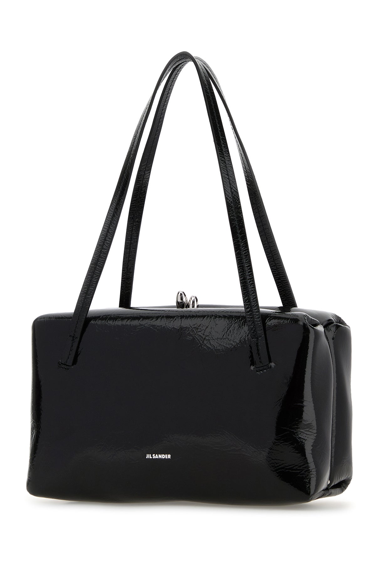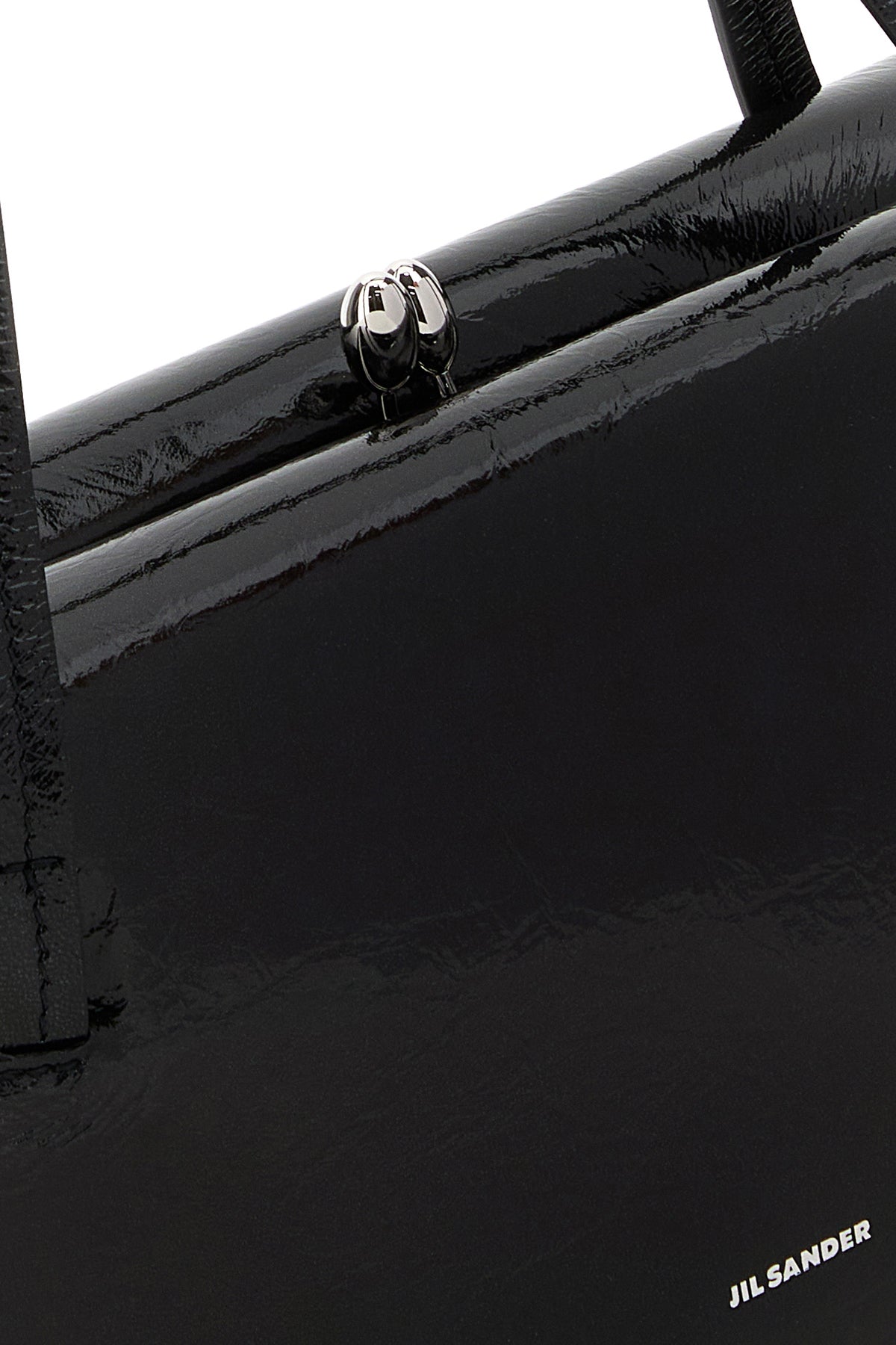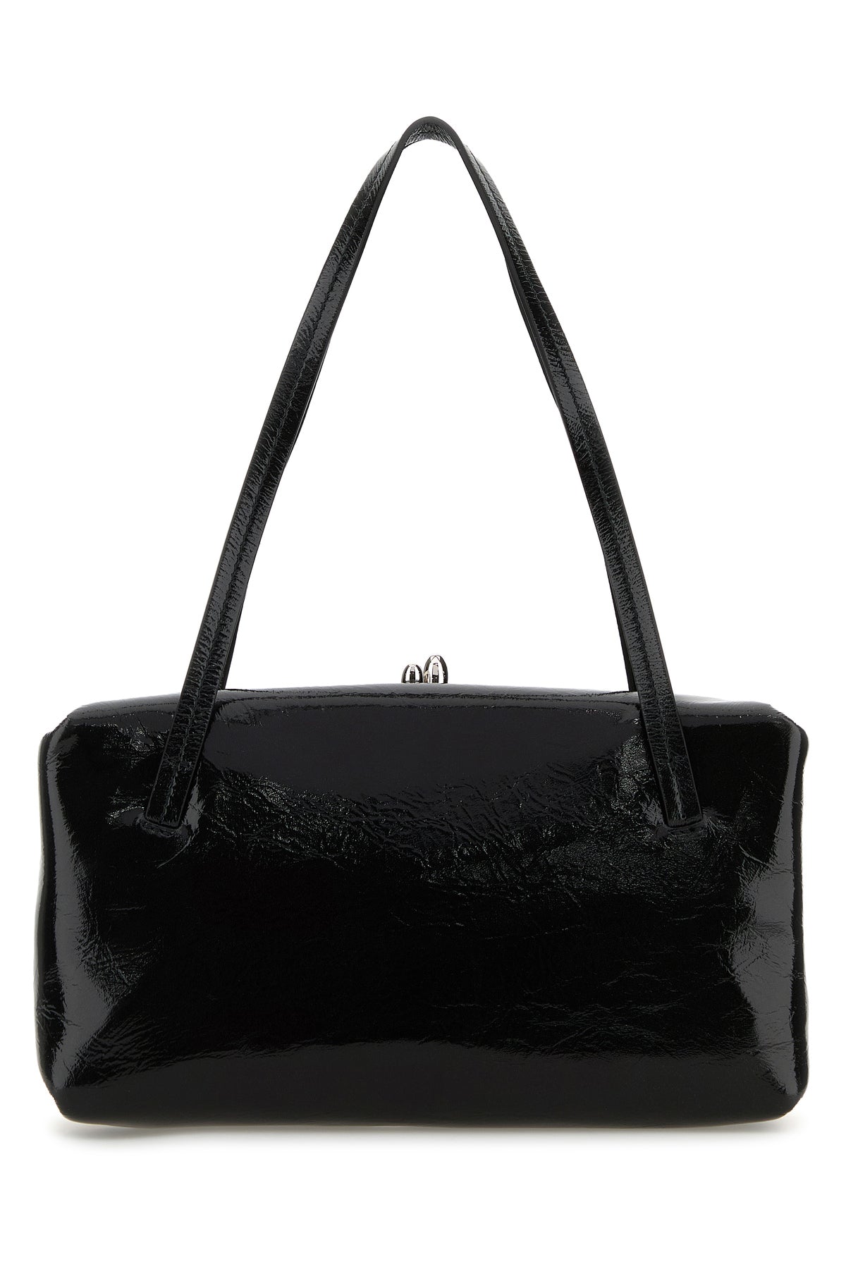 Handbag realized in craquele-effect polished finish leather characterized by laminated logoed print at the front.