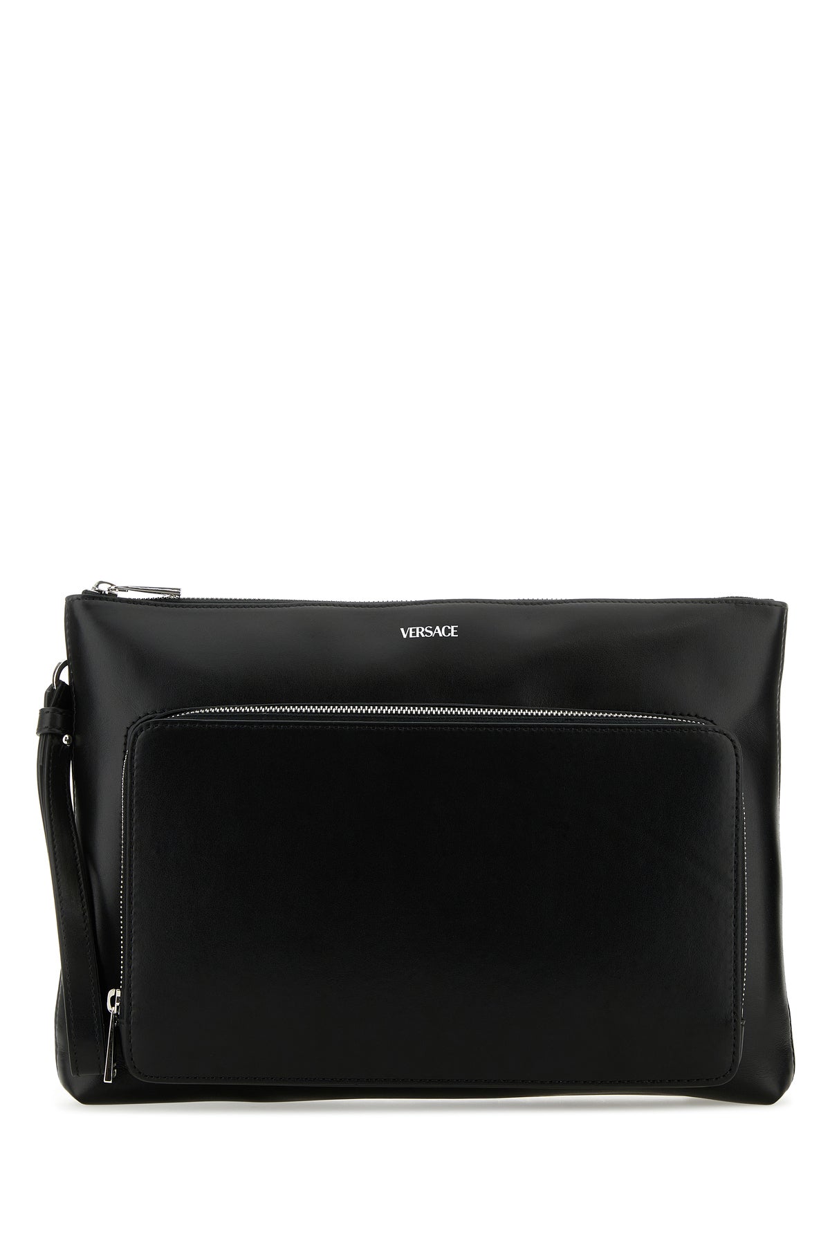 Clutch realized in slightly pebble calf leather characterized by printed logo at the front.
