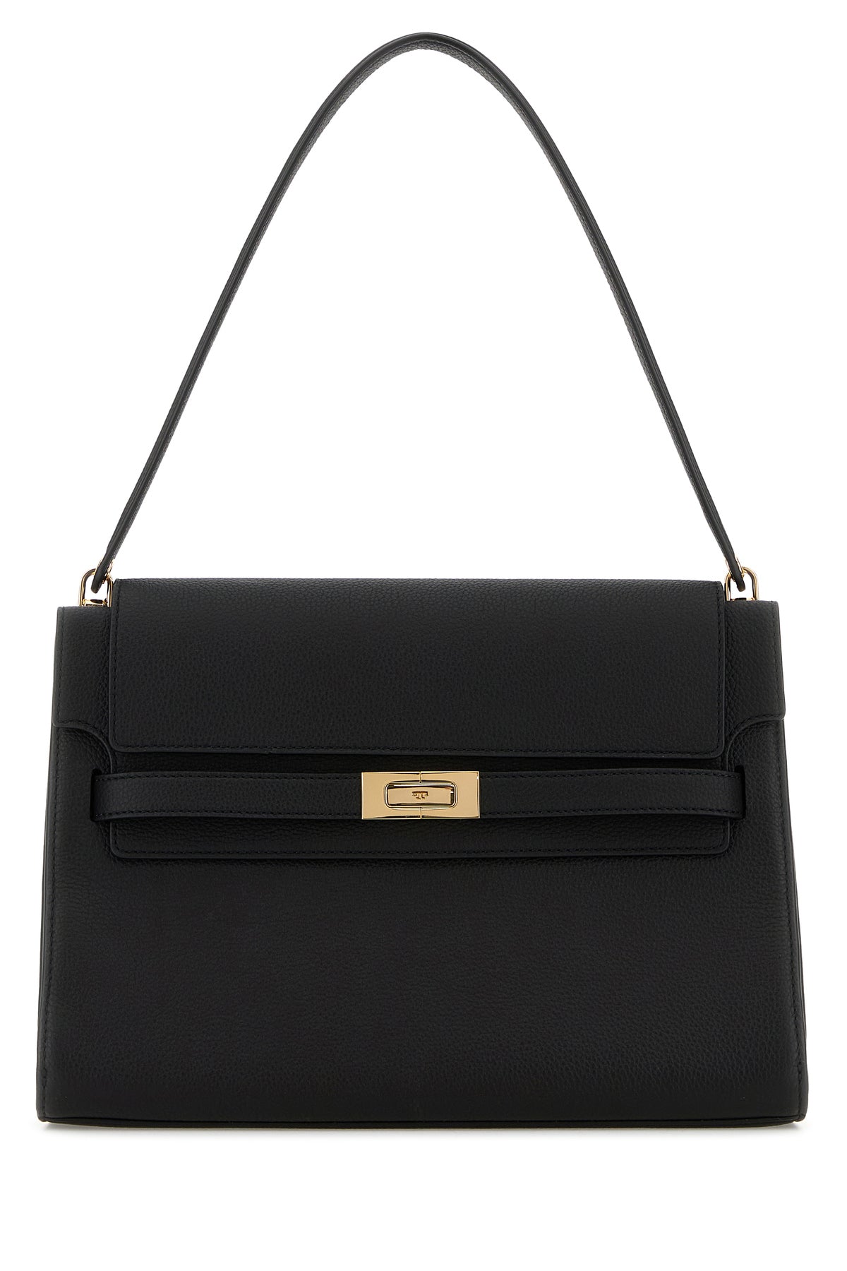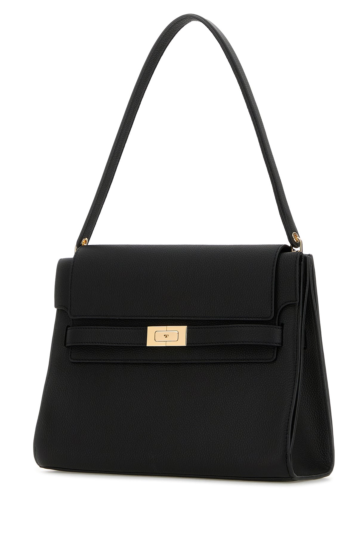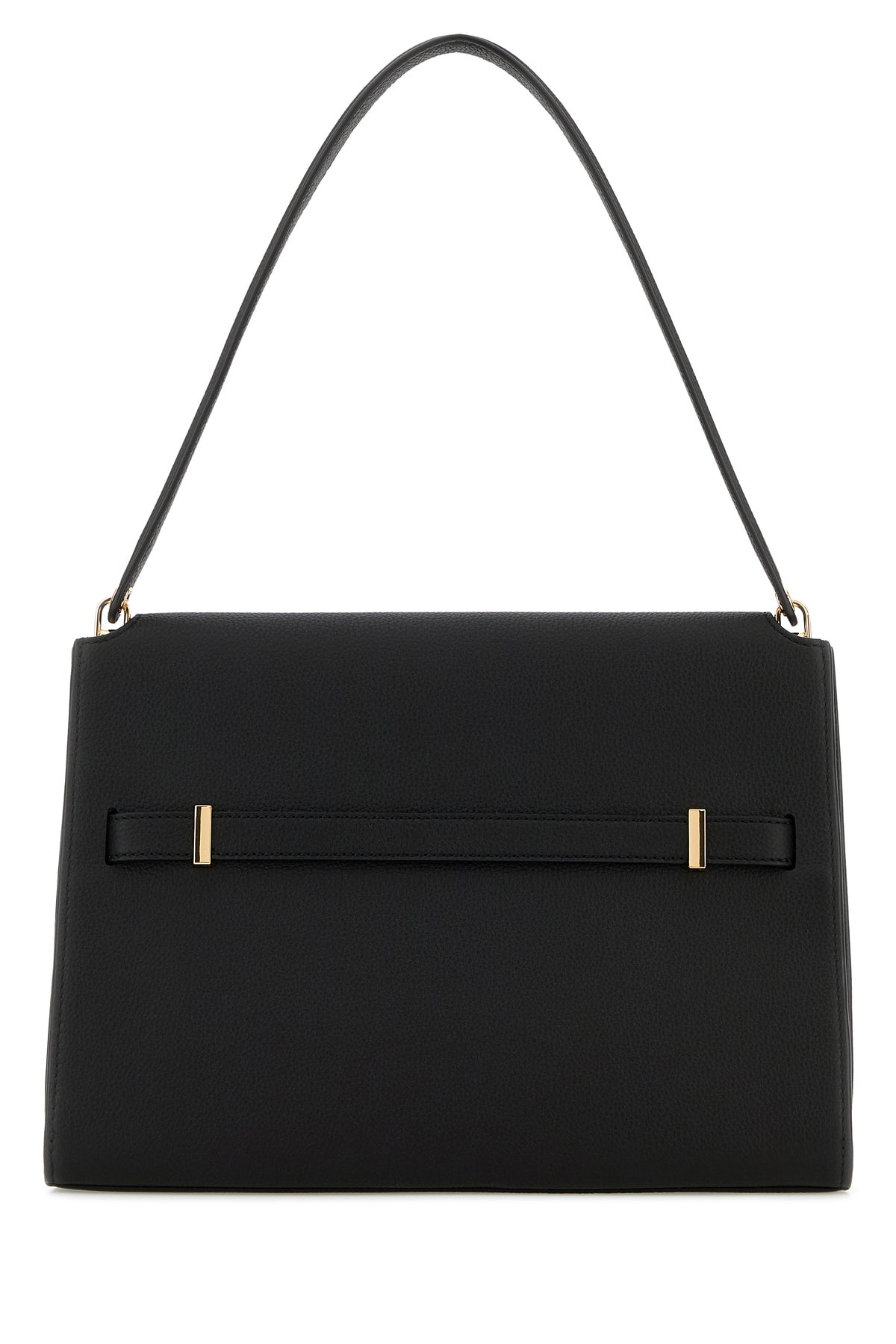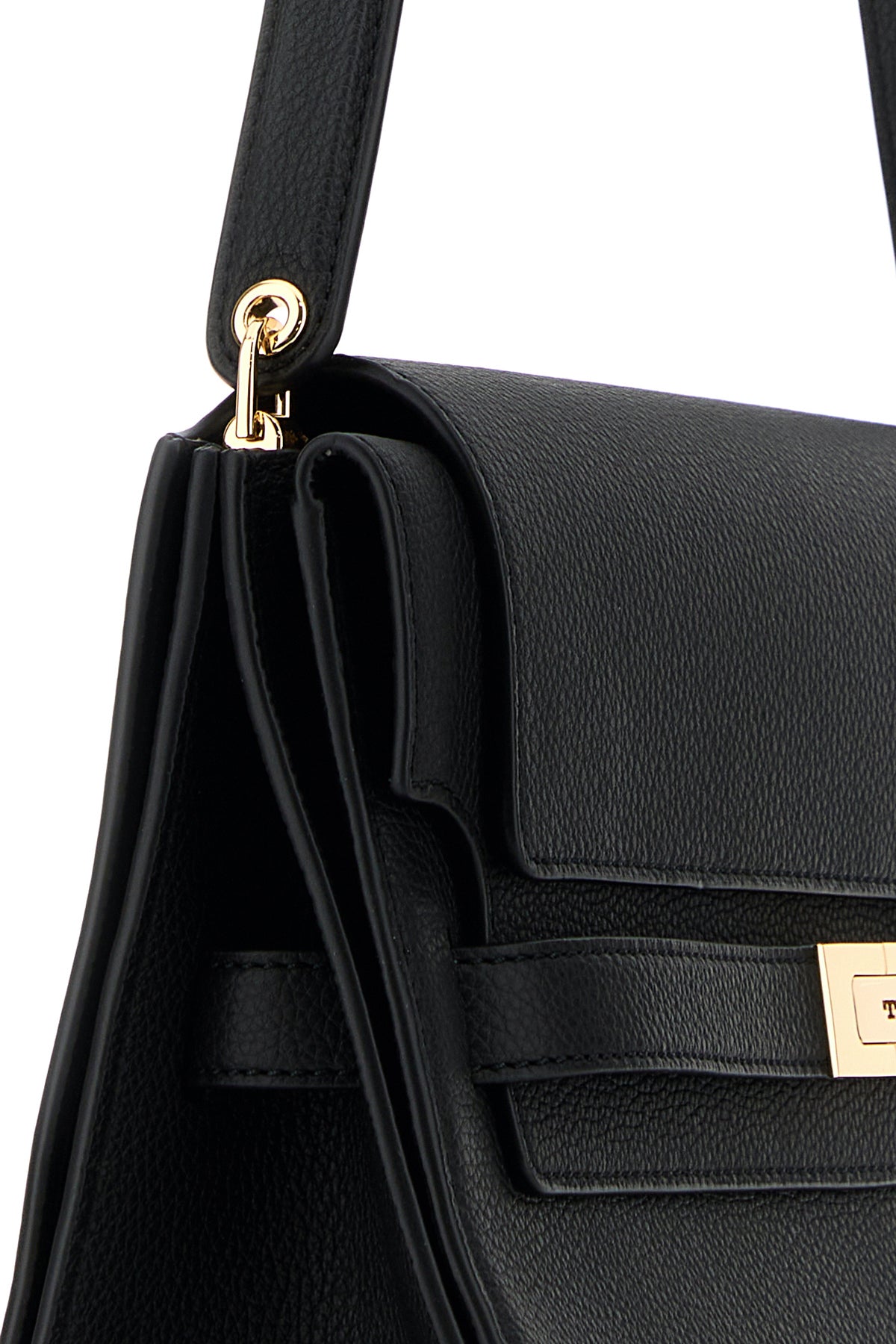 Shoulder bag realized in pebble leather enriched by tonal leather belt with metal T buckle.