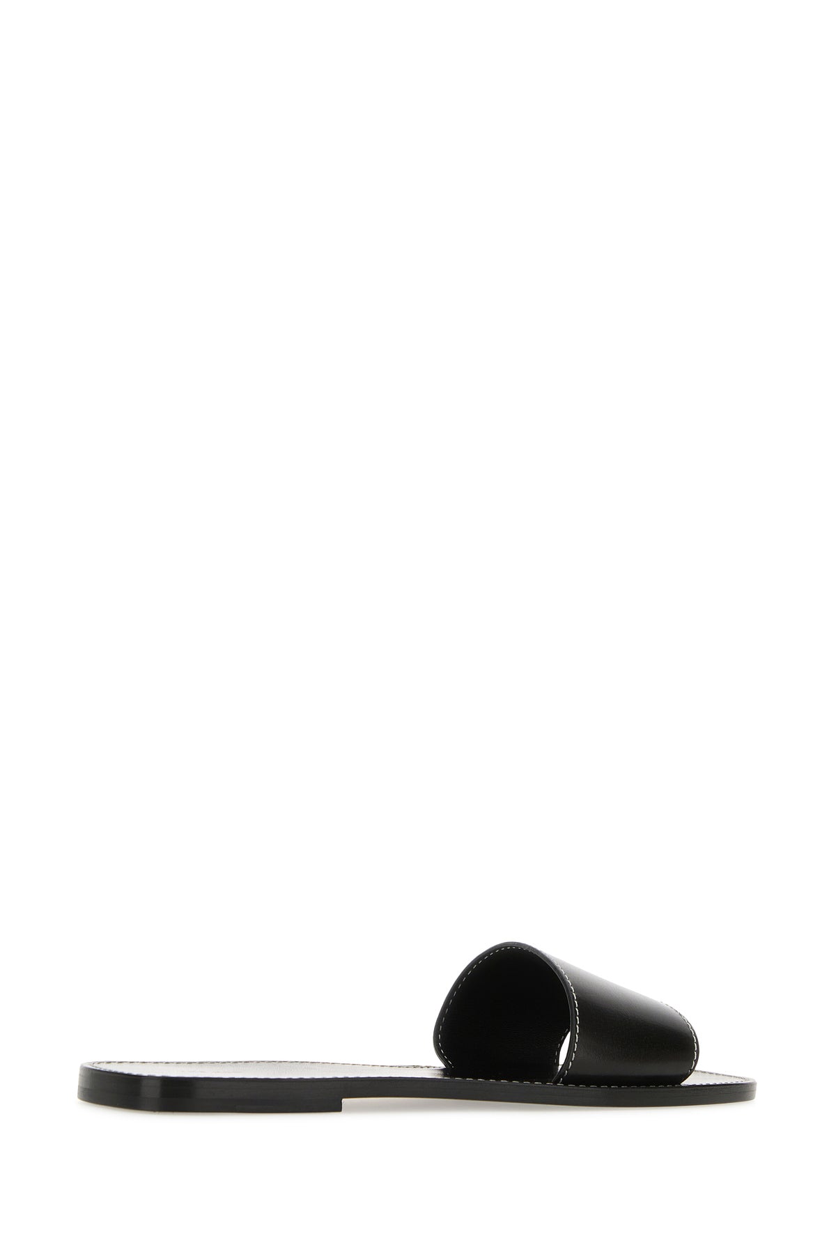 Slippers realized in smooth leather characterized by contrasting stitchings.
