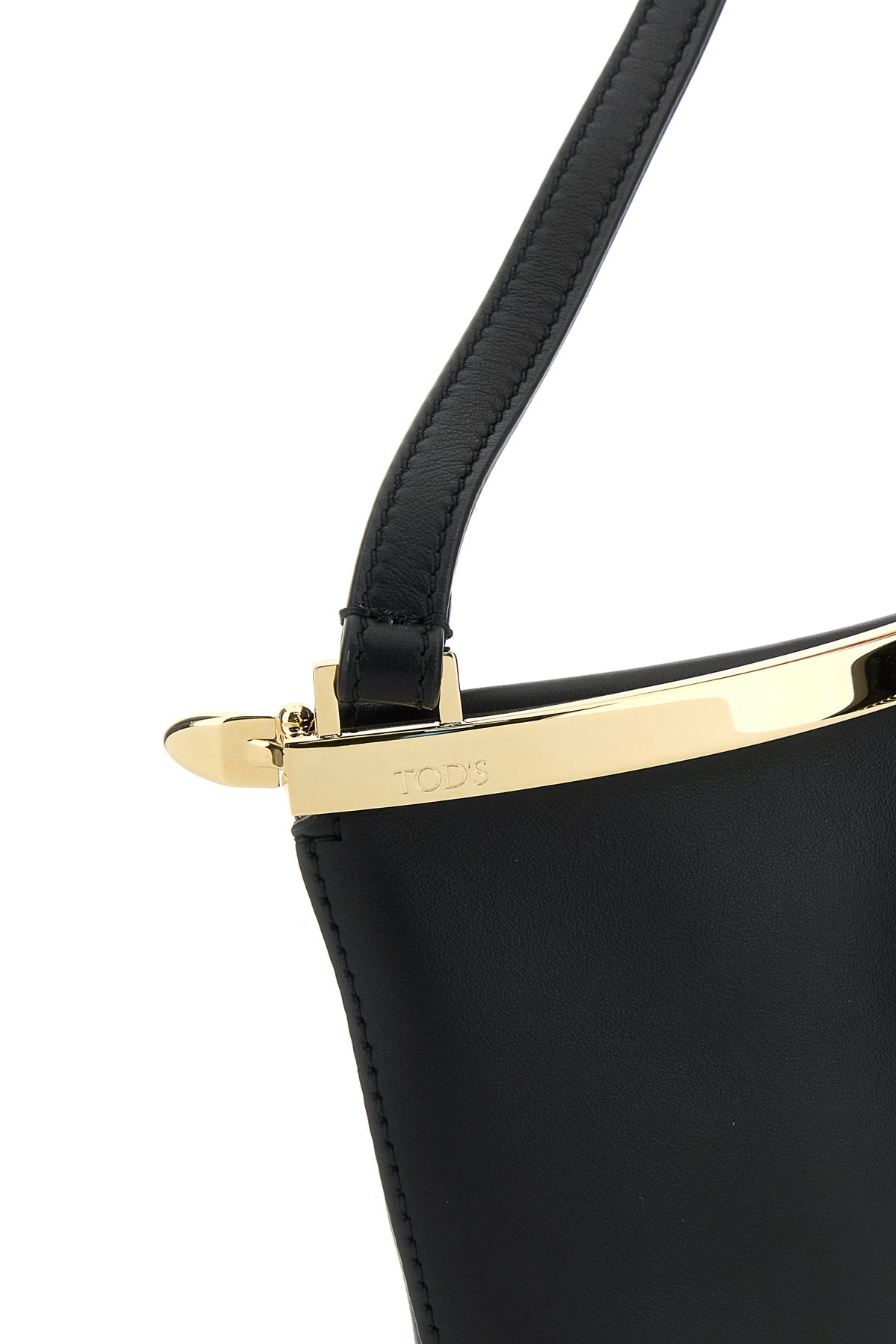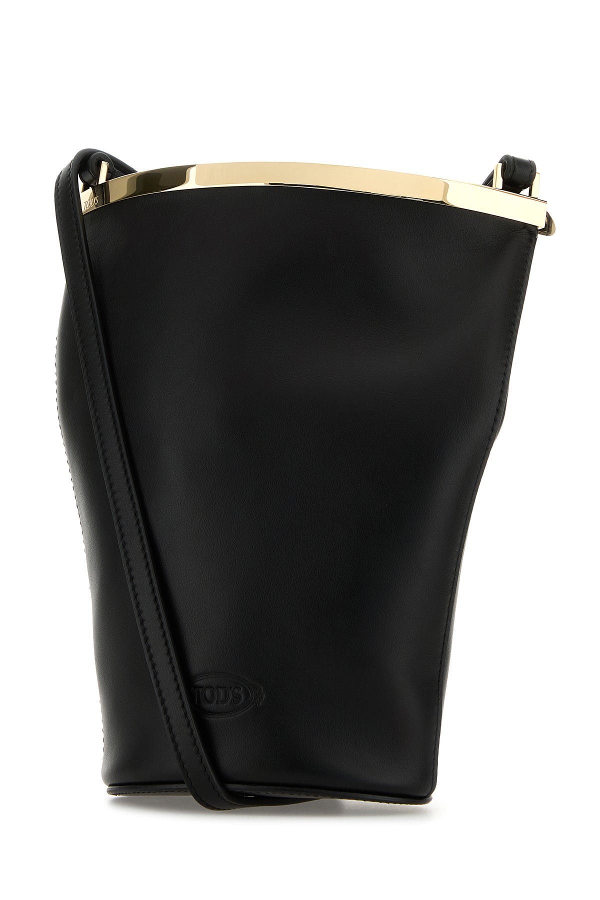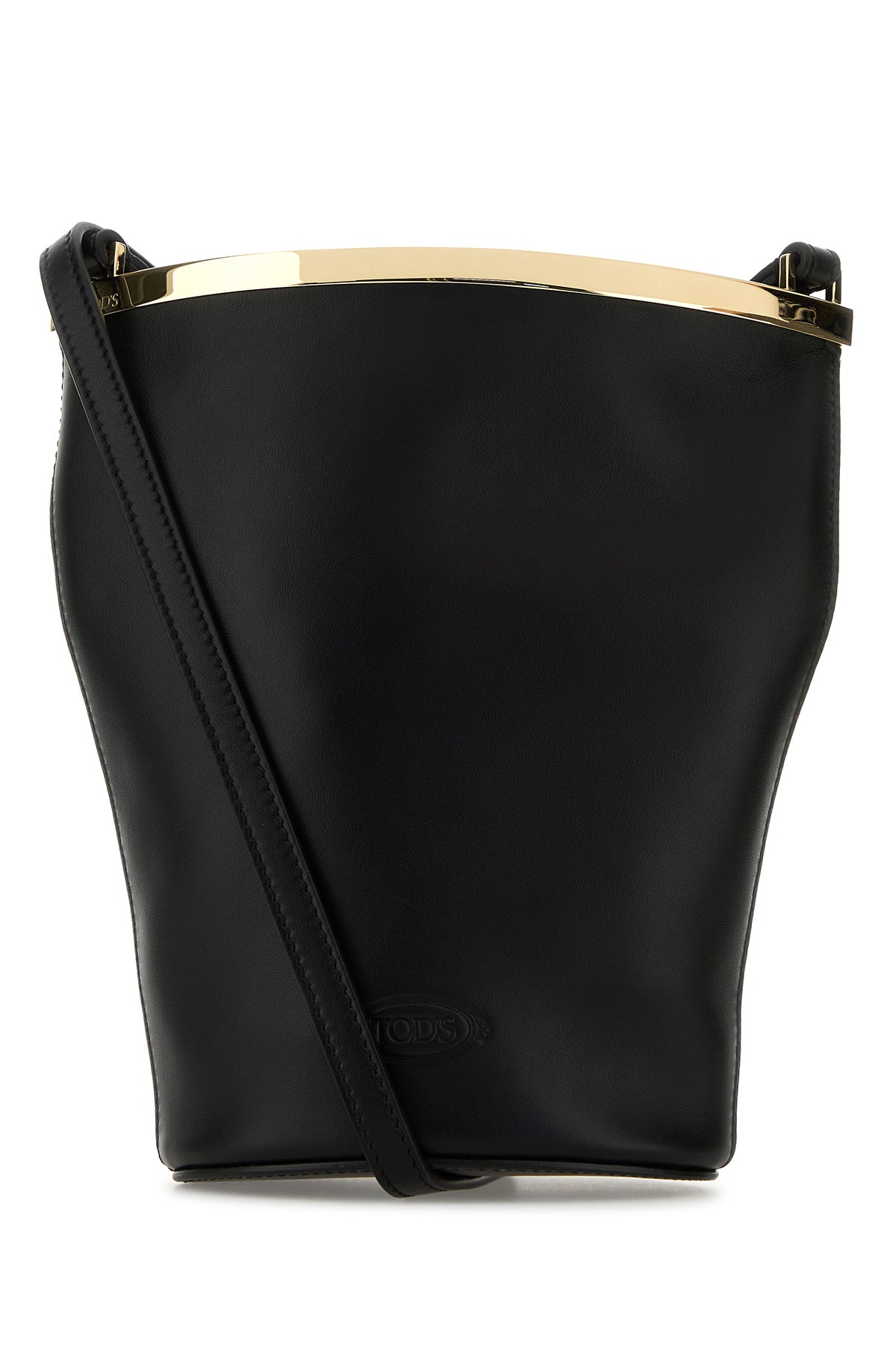 Bucket bag realized in smooth leather characterized by embossed logo at the front.