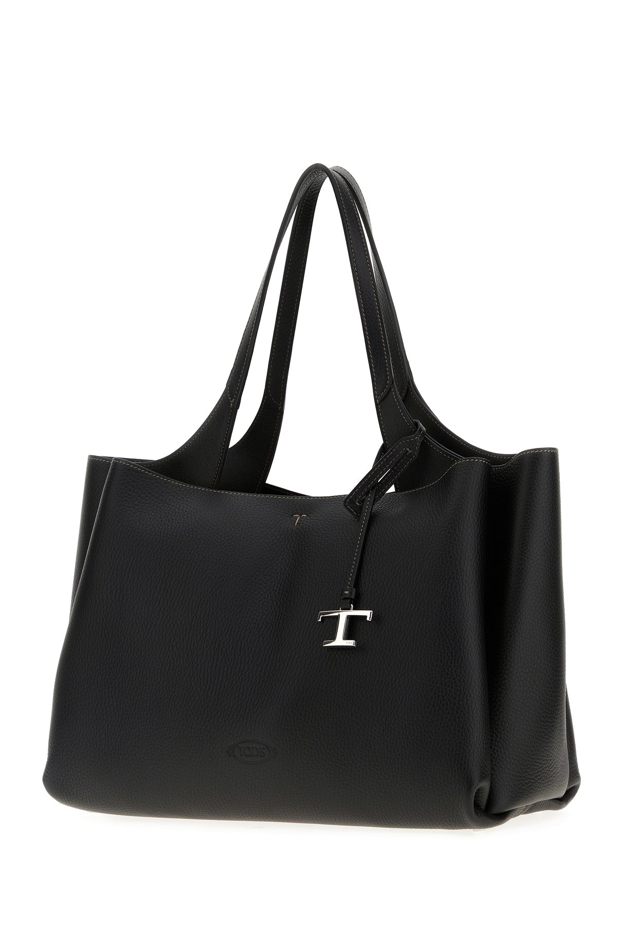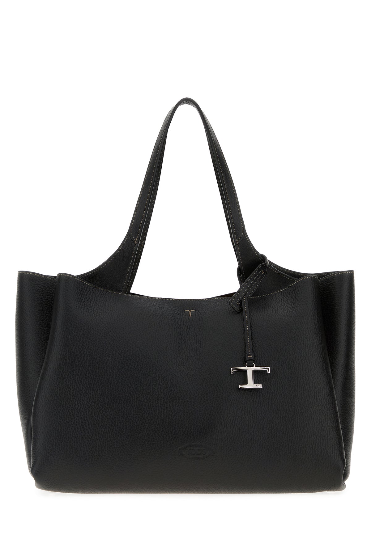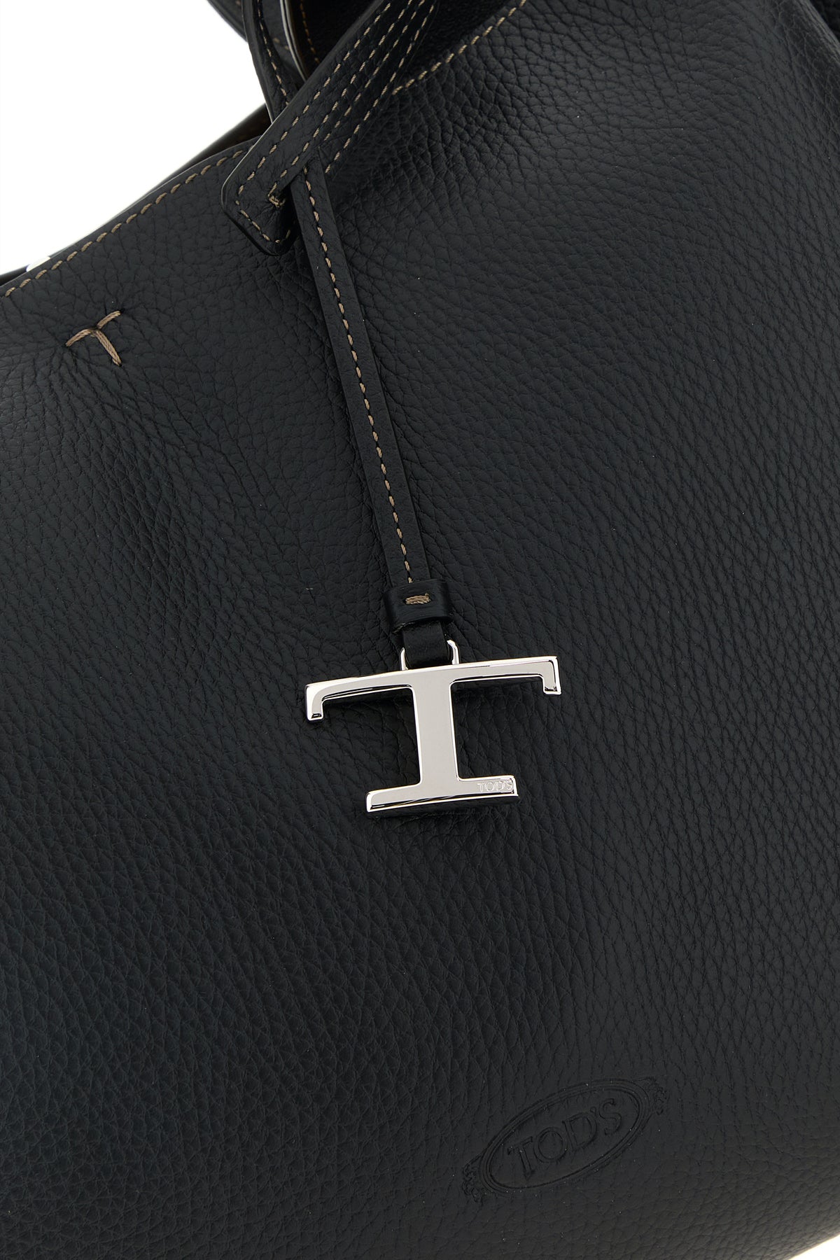 Shoulder bag realized in pebble leather characterized by embossed logo at the front enriched by detachable leather T Timeless accessory.