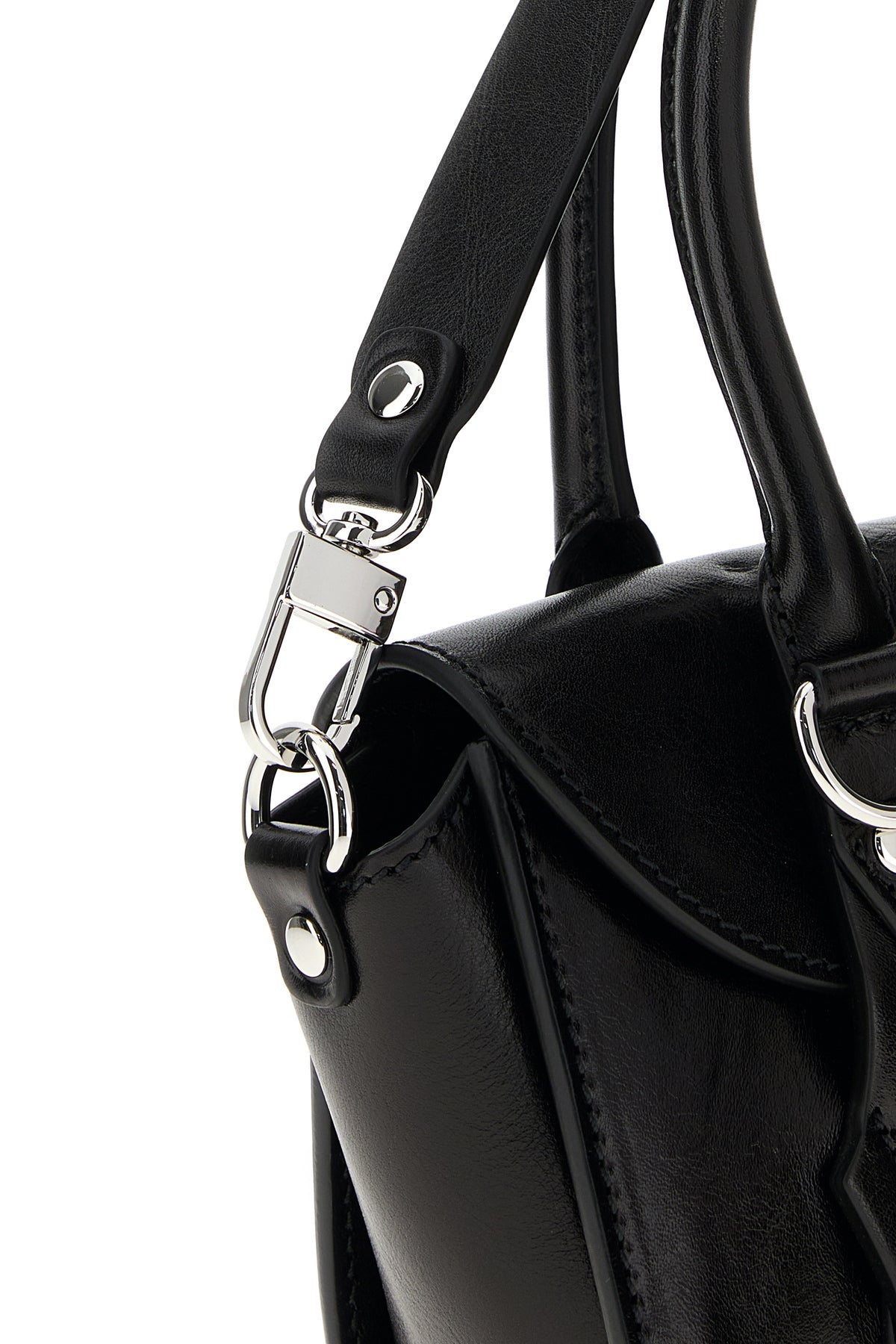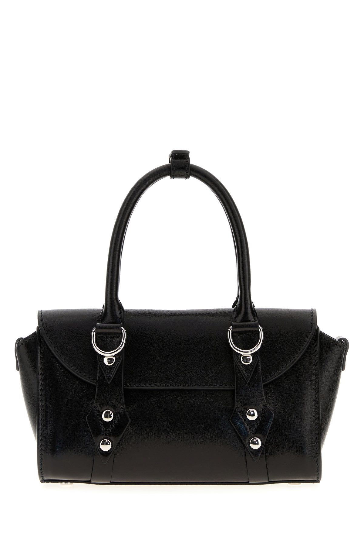 Handbag realized in pebble calf leather enriched by Orb metal detail at the front.