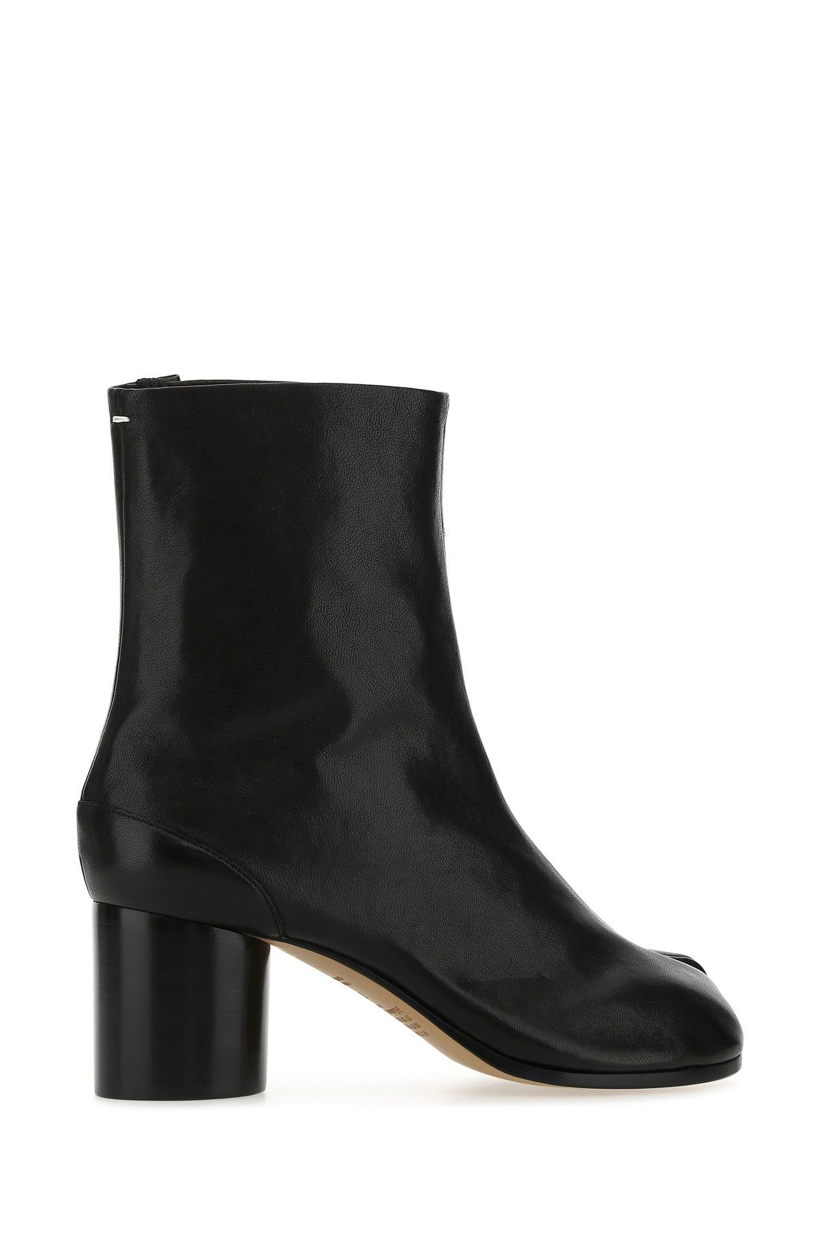 Boots realized in smooth calf leather characterized by contrasting stitching at the back.