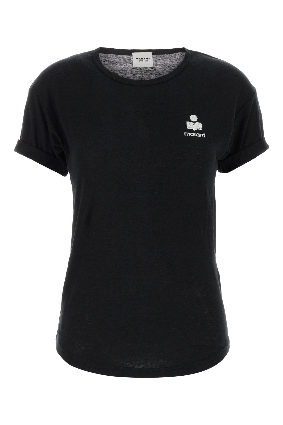 T-shirt realized in pure linen characterized by laminated printed logo on the chest.