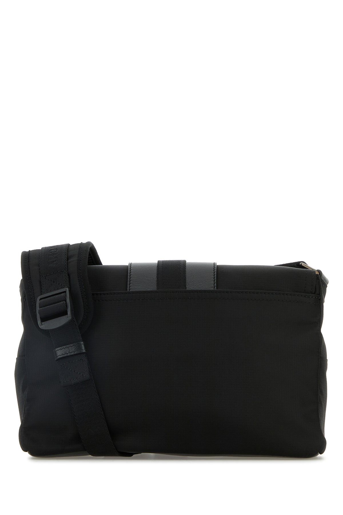Crossbody bag realized in nylon and slightly pebble leather characterized by printed logo at the front.
