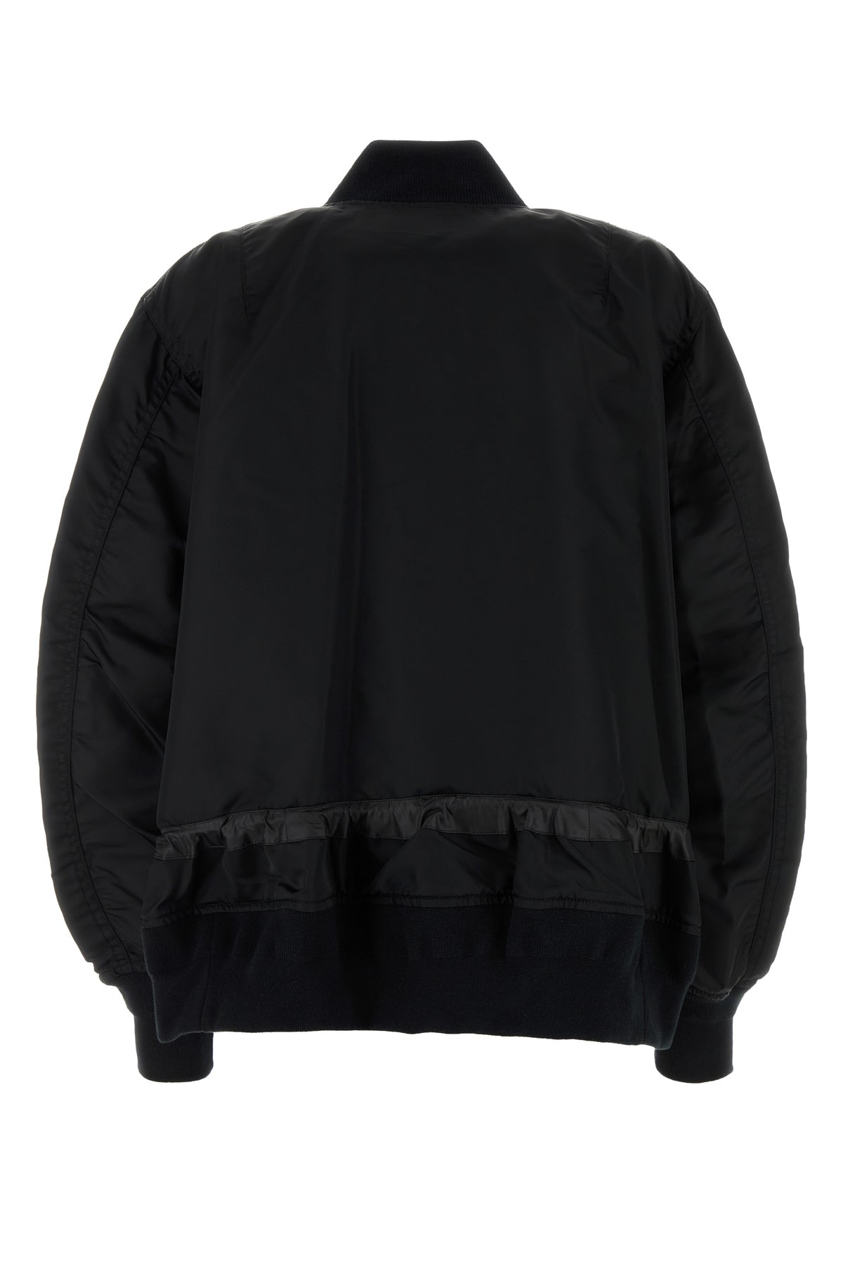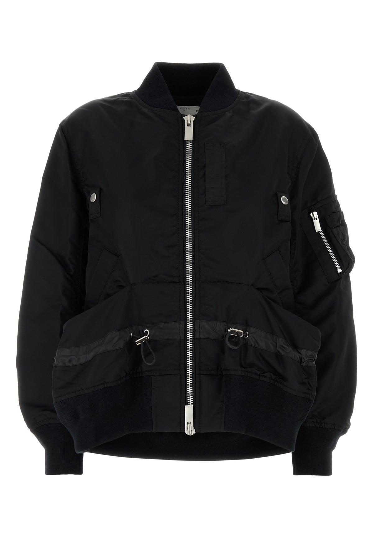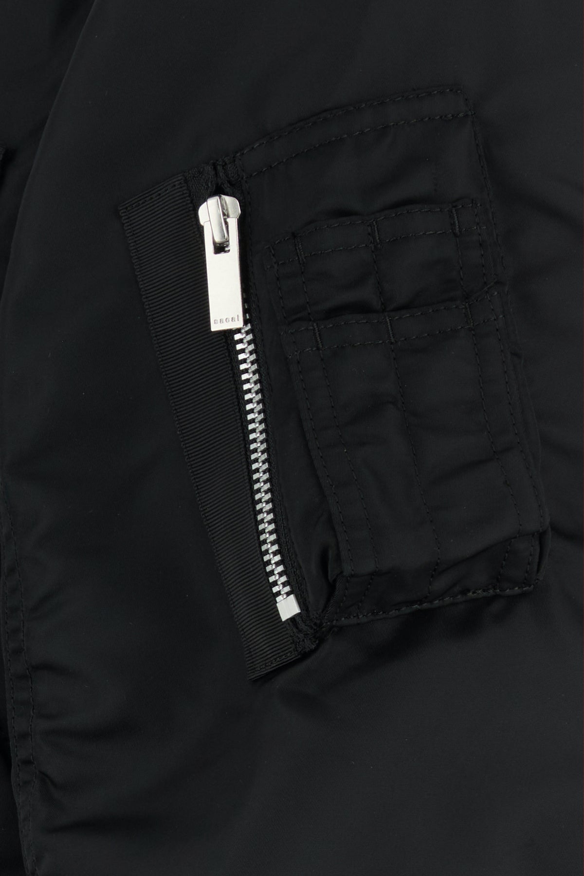 Bomber jacket realized in nylon characterized by drawstring at the waist.
