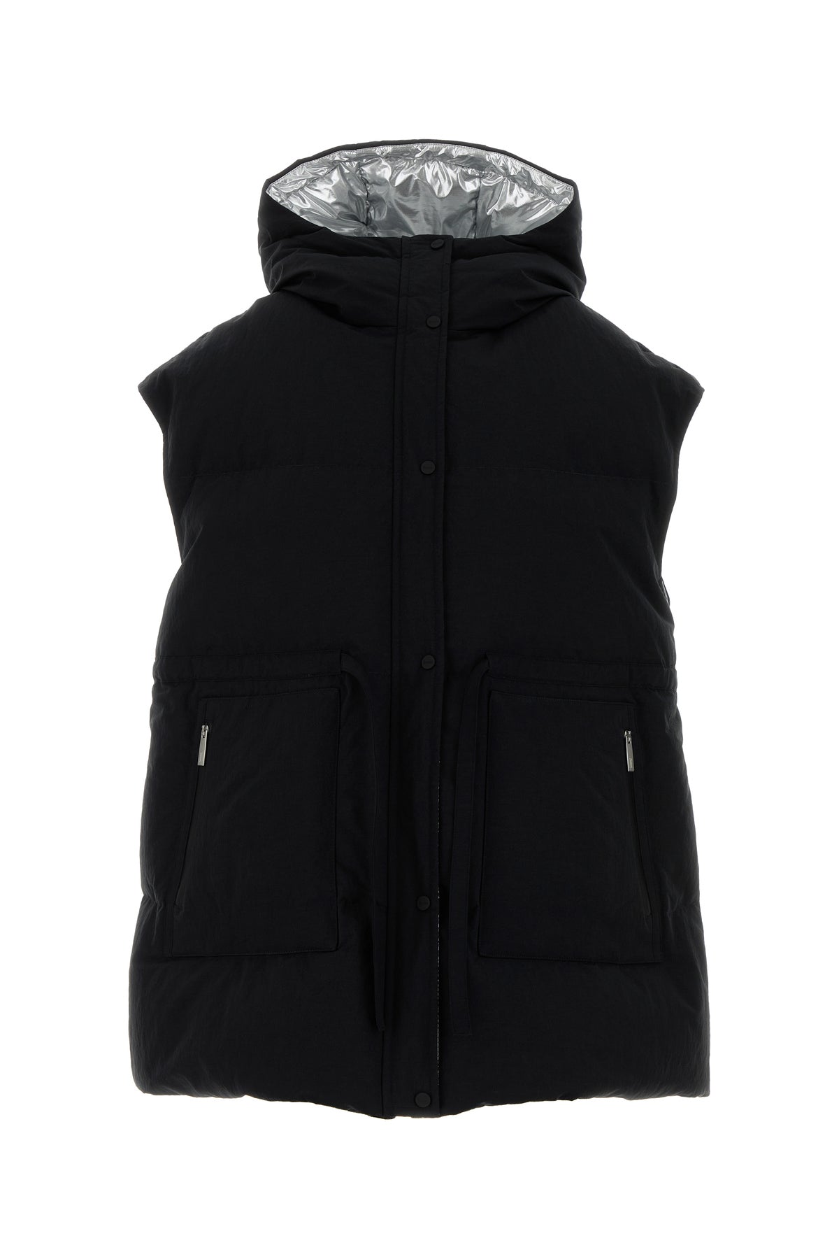 Sleeveless down jacket realized in polyester and cotton characterized by tonal embroidered logo at the back.