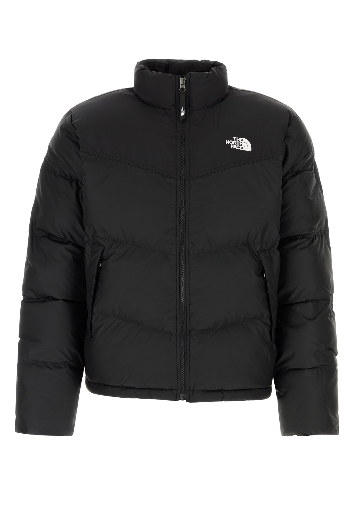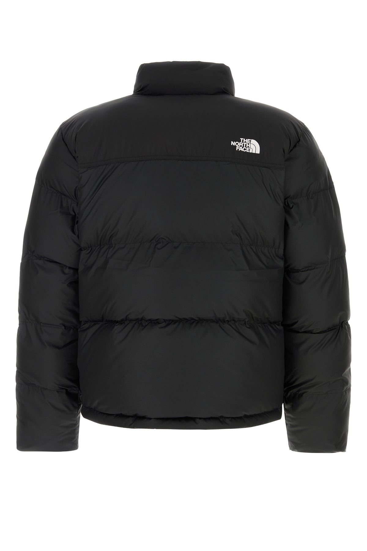 Padded jacket realized in polyester characterized by contrasting embroidered logo on the chest and at the back.