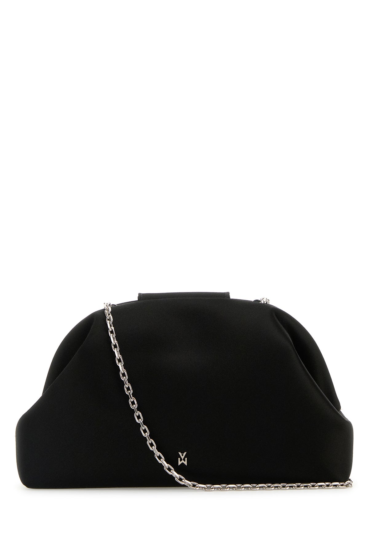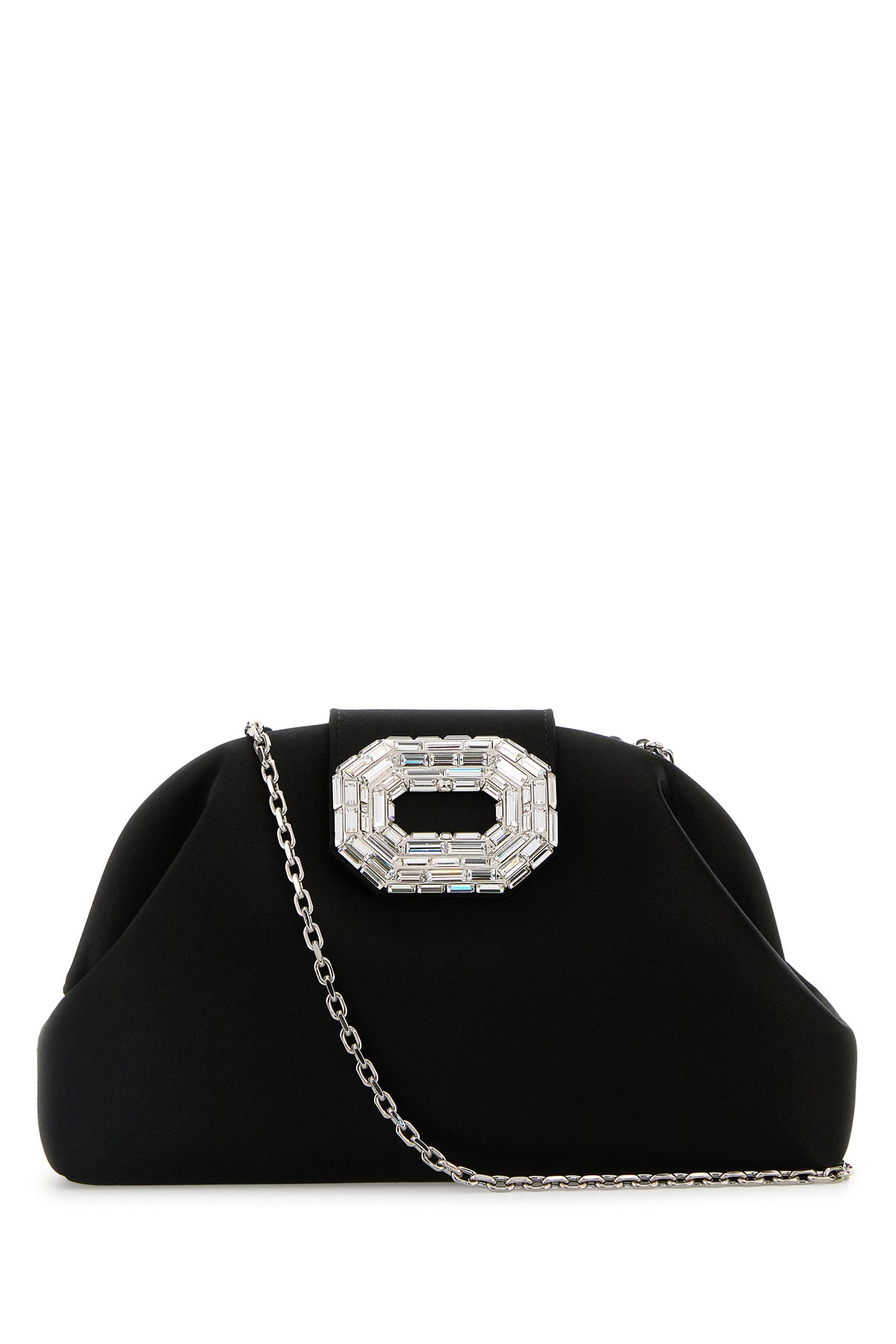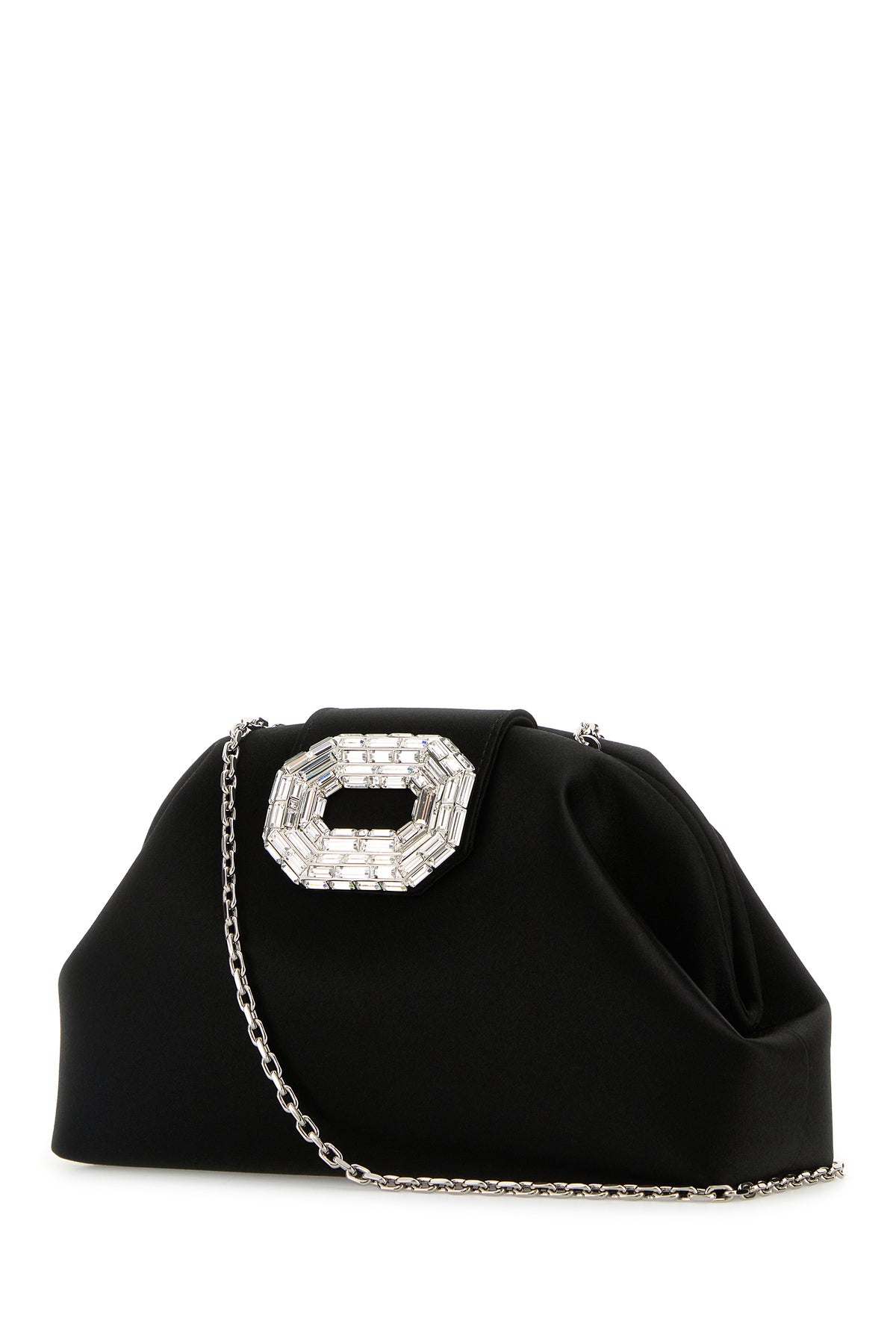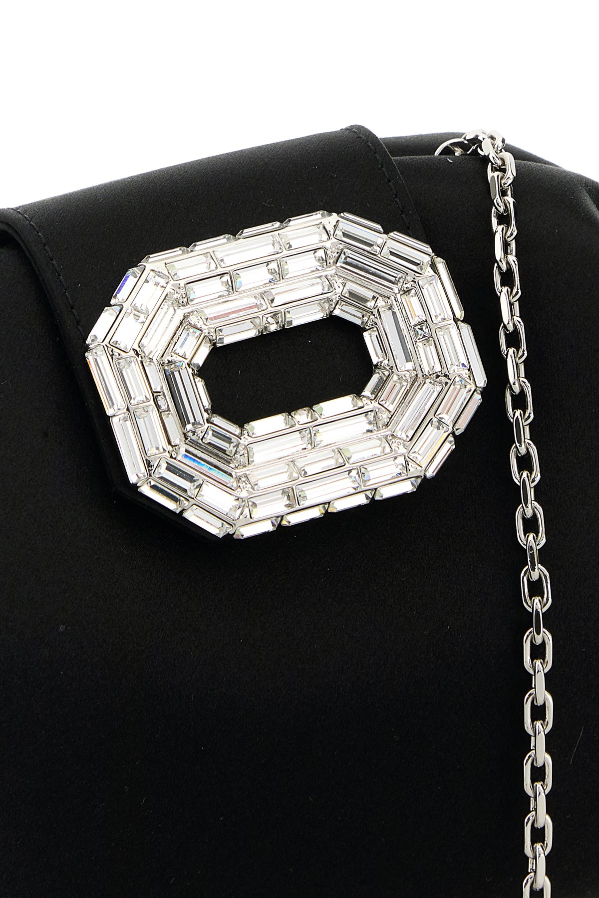 Clutch realized in satin enriched by jewel embellishment at the front.