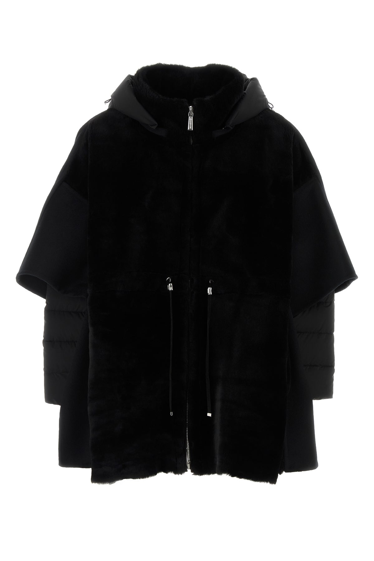 Layered jacket realized in shearling and nylon characterized by drawstring at the waist.