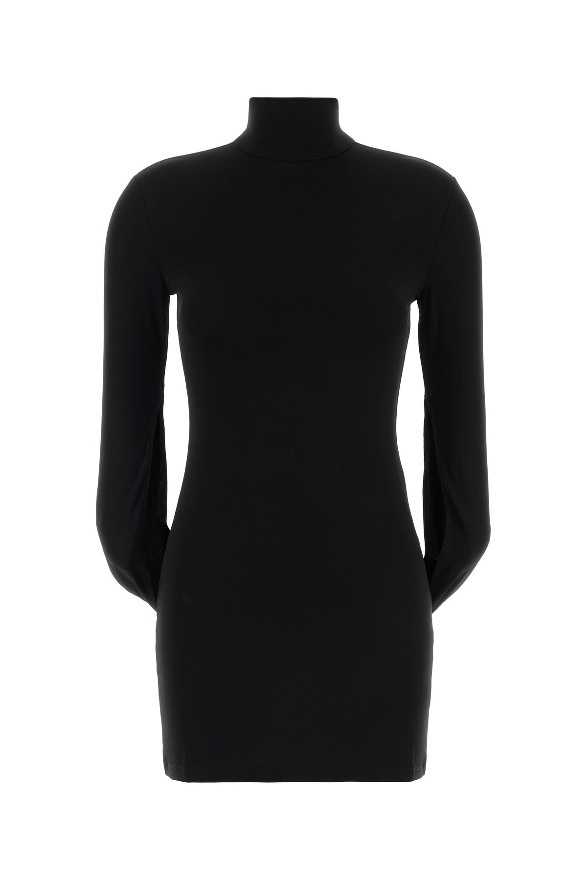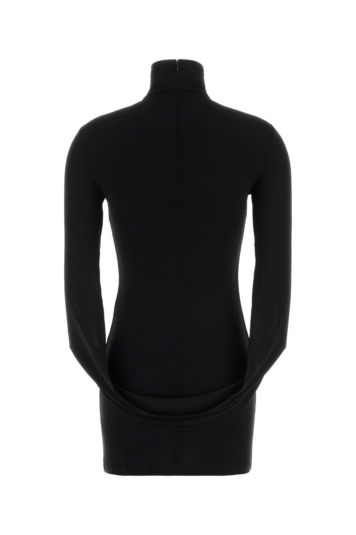 Mini dress realized in stretch jersey characterized by joined draped sleeves.