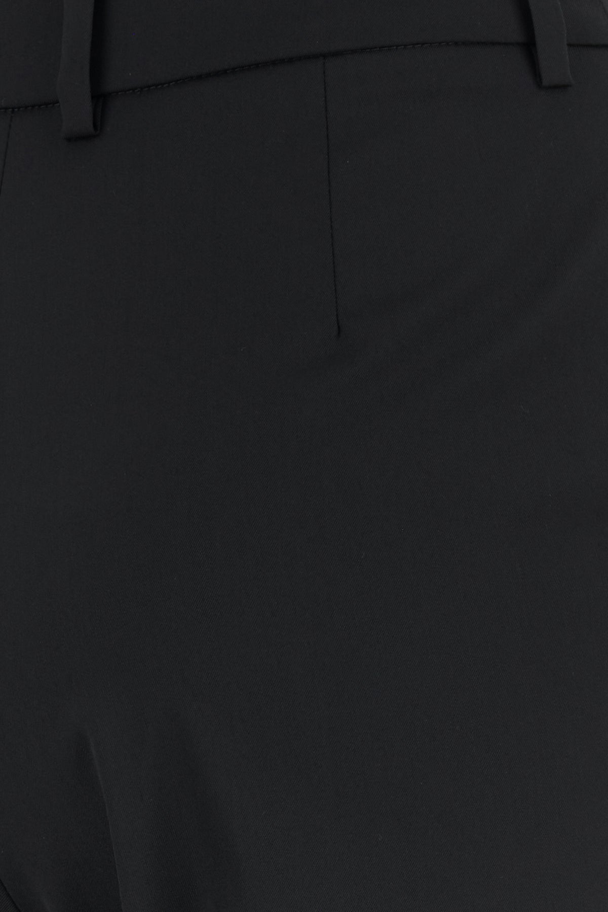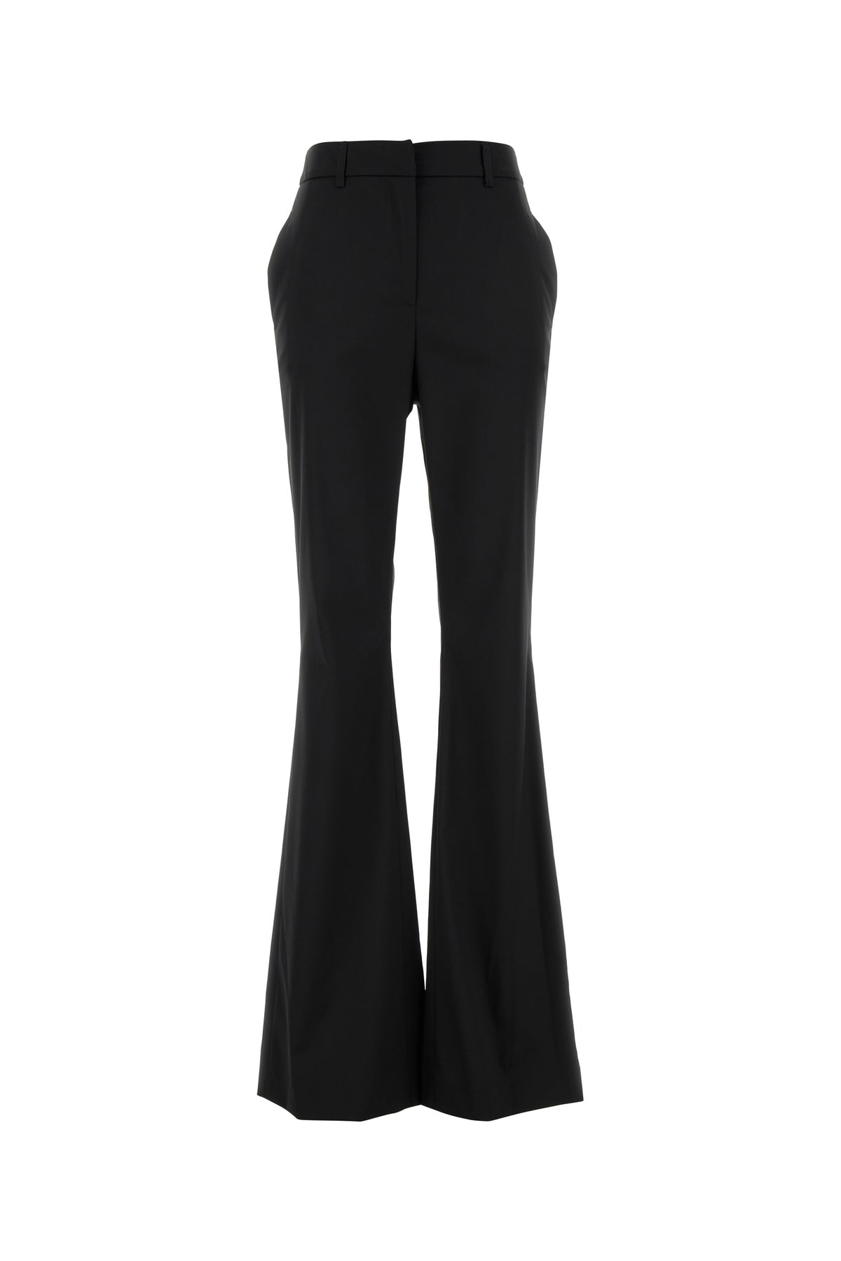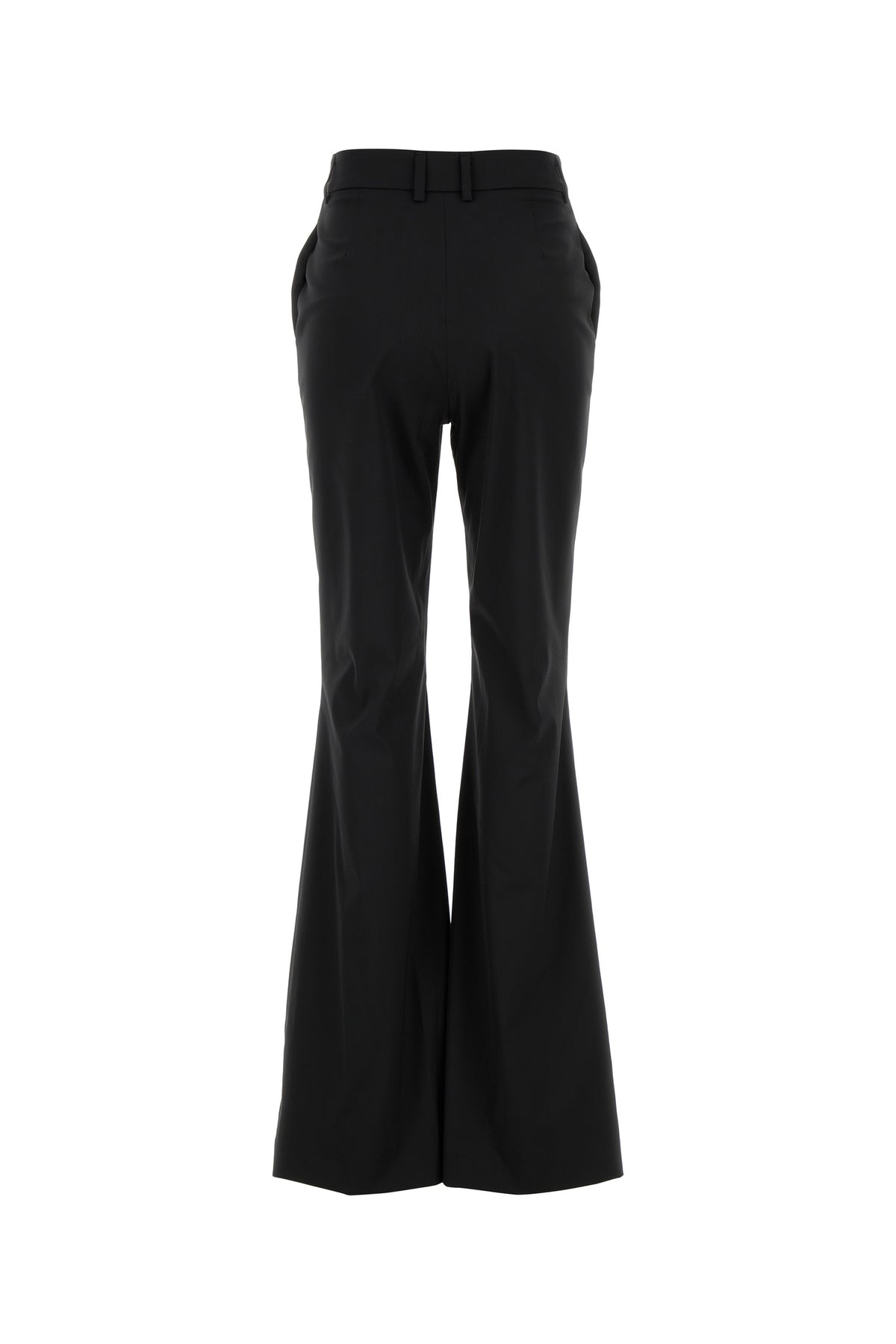 Flared leg pant realized in stretch polyester blend characterized by belt loops at the waist.