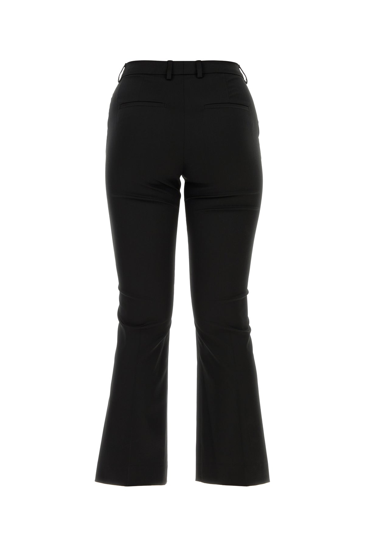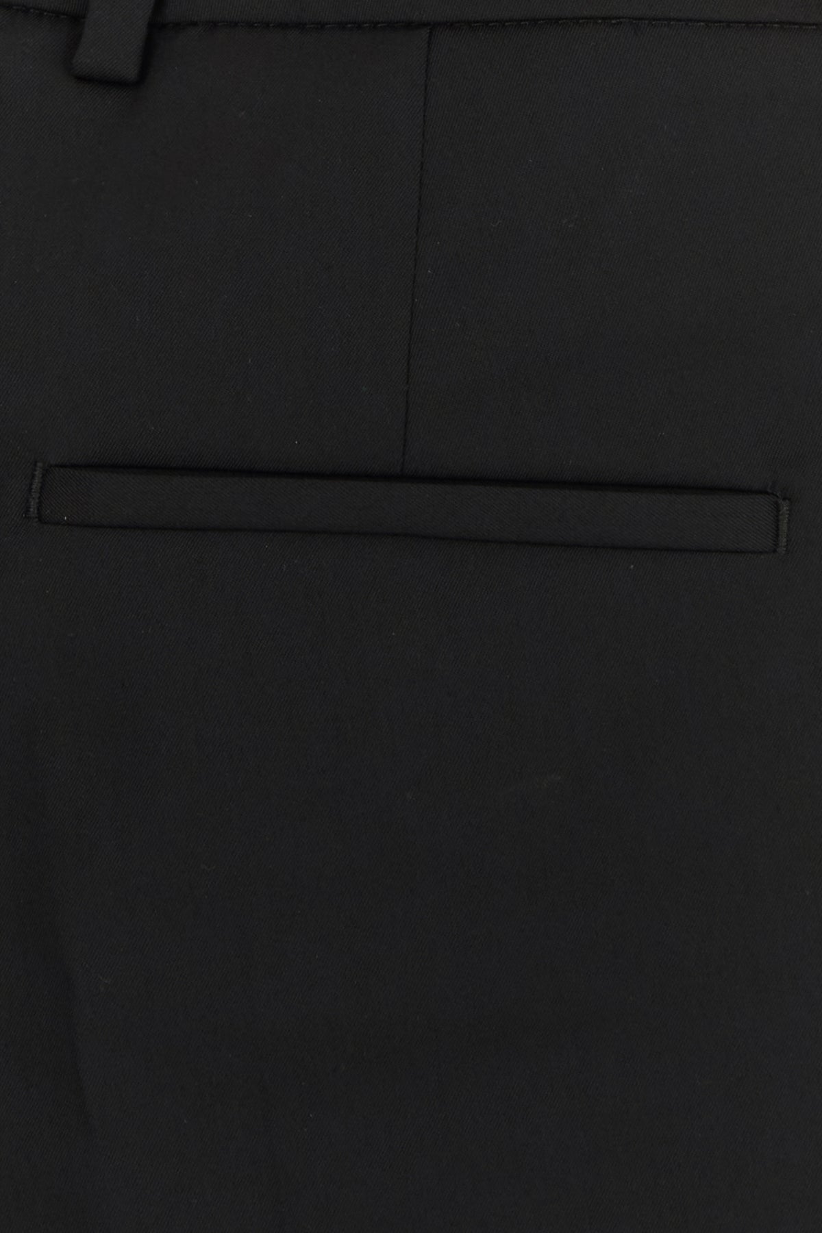 Pant realized in stretch polyester blend characterized by central ironed pleats.