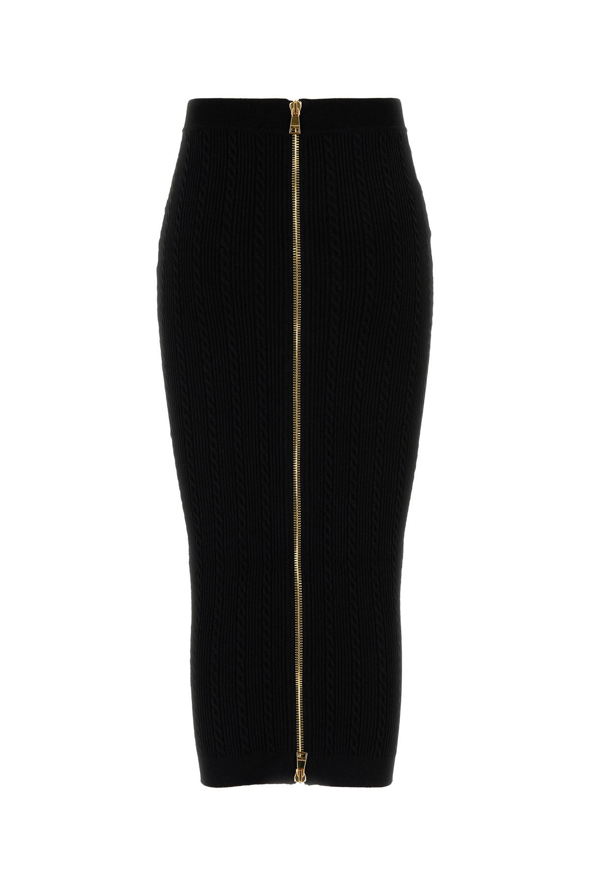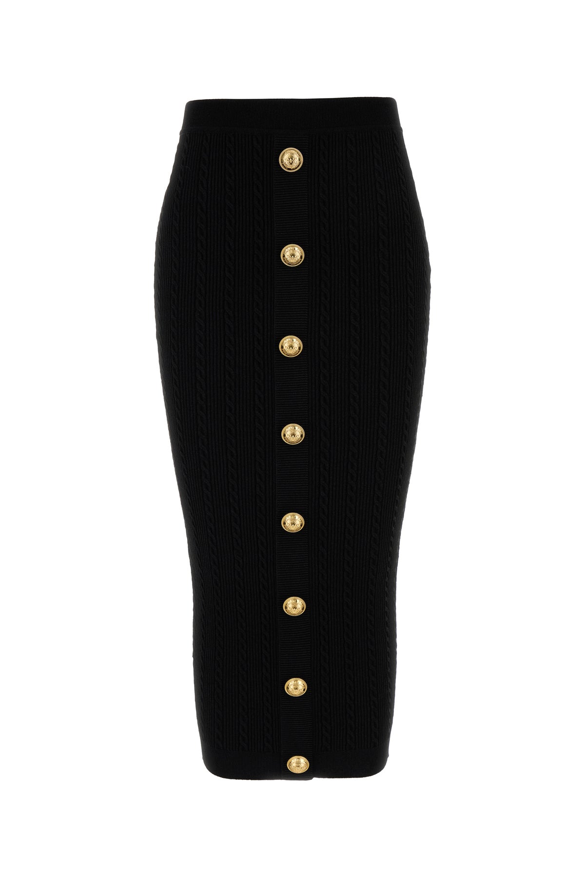 Fitted skirt realized in viscose blend enriched by decorative buttons at the front.