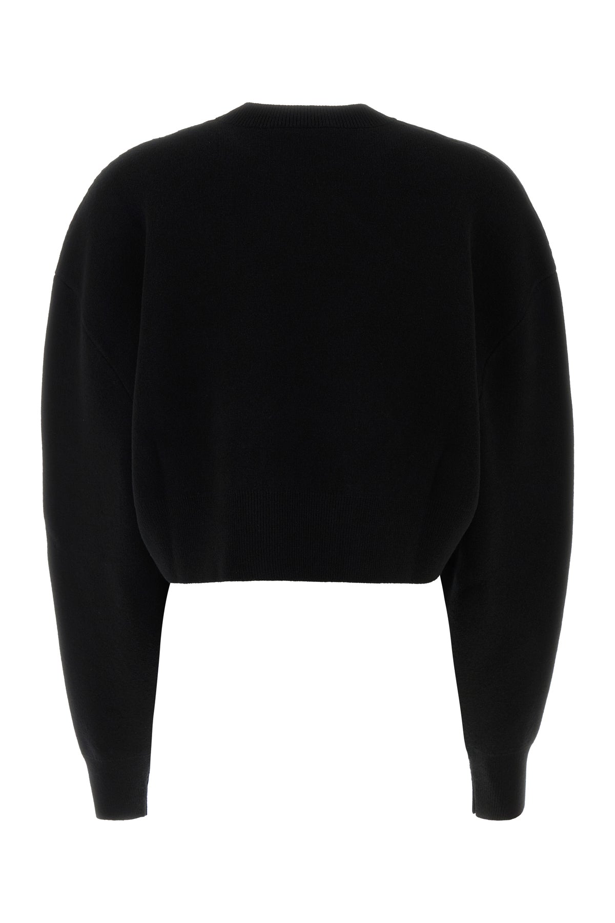 Cropped-cut oversize sweater realized in virgin wool blend.