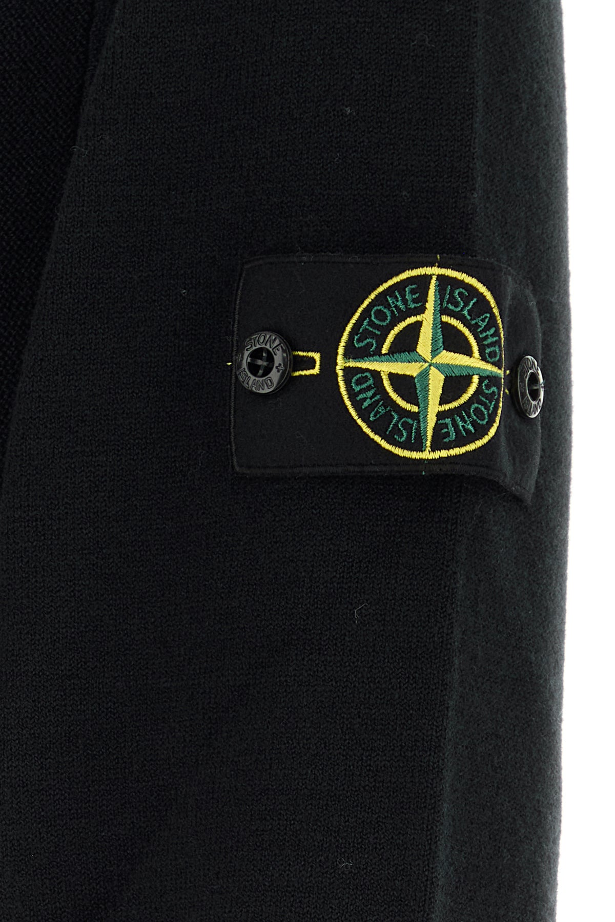 Sweater realized in wool blend enriched by detachable logoed label on the sleeve.