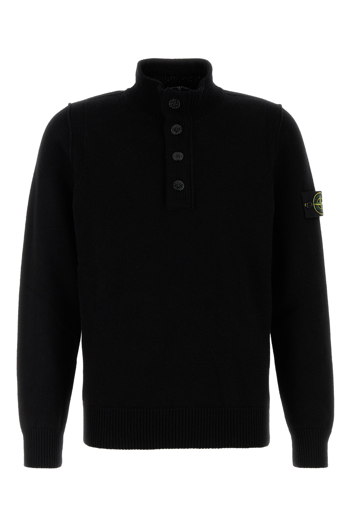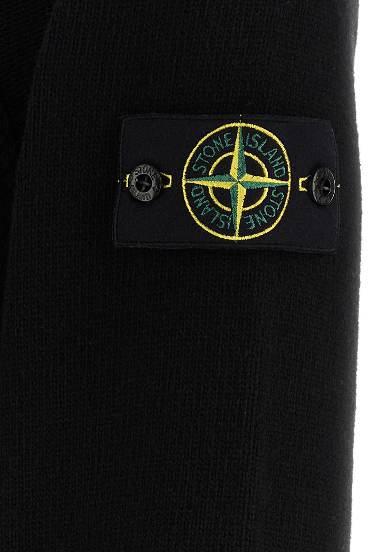 Sweater realized in virgin wool blend enriched by detachable logged label on the sleeve.