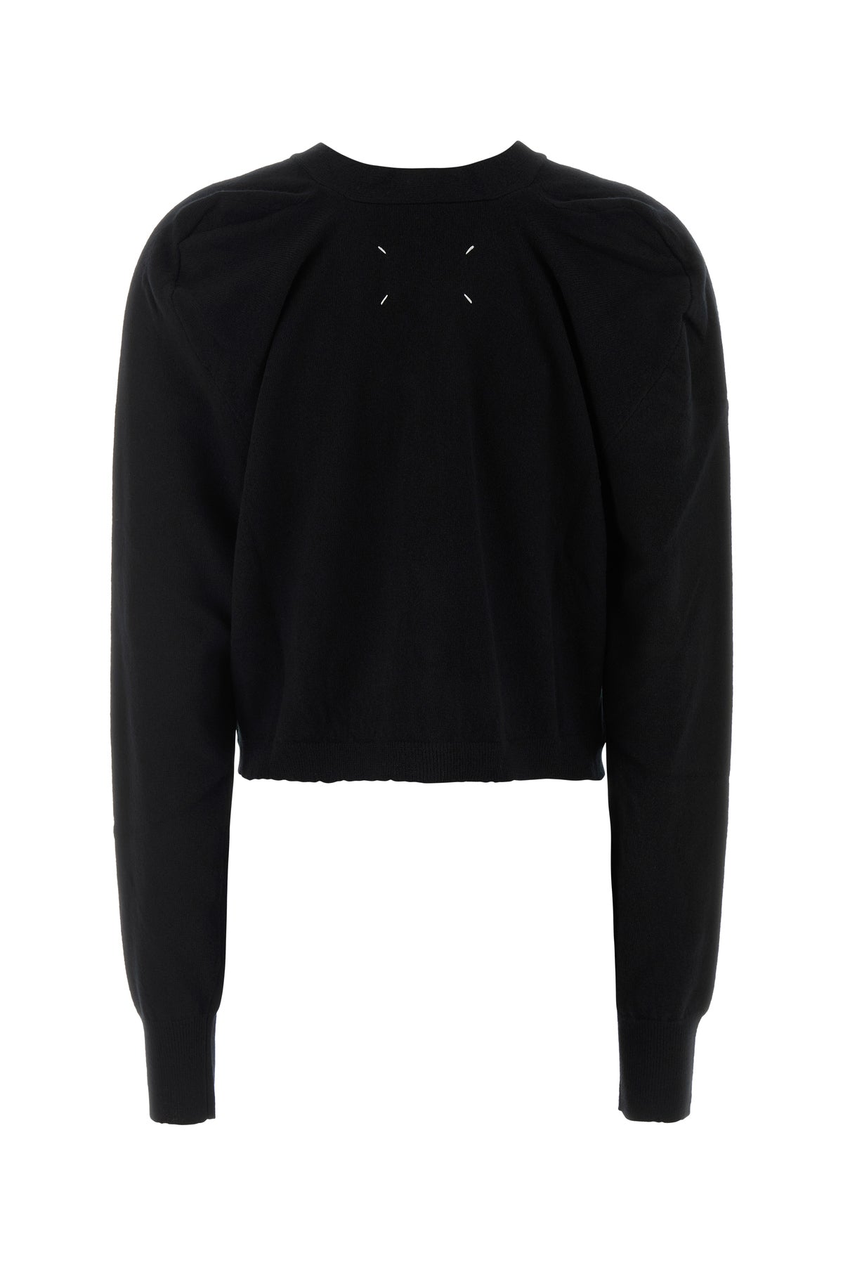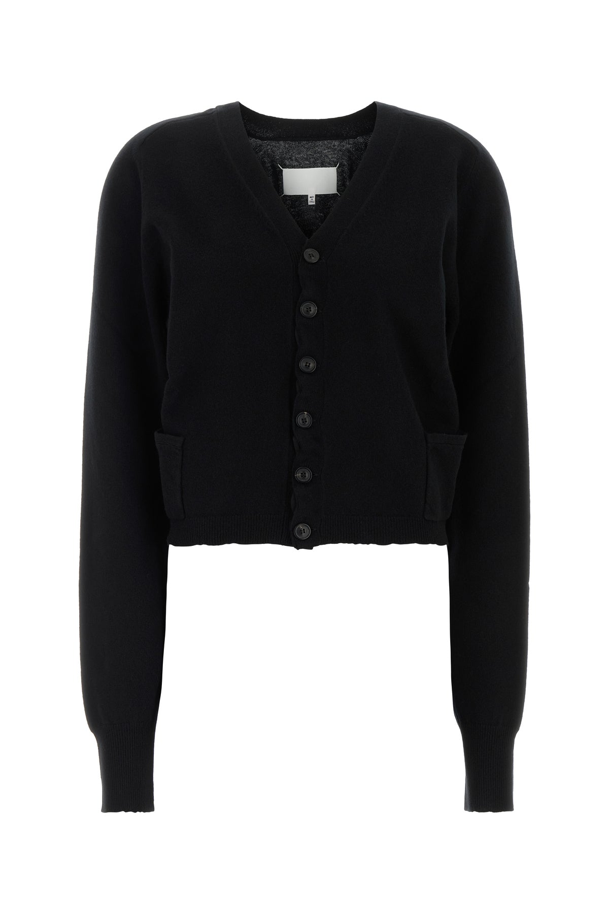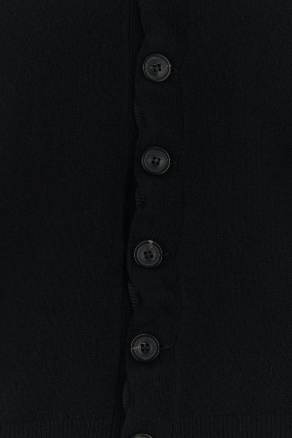 Cardigan realized in pure wool characterized by iconic contrasting stitching at the back.