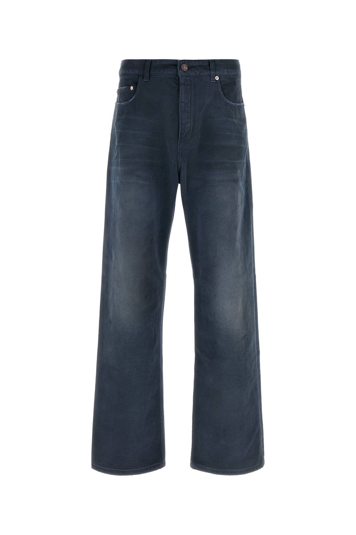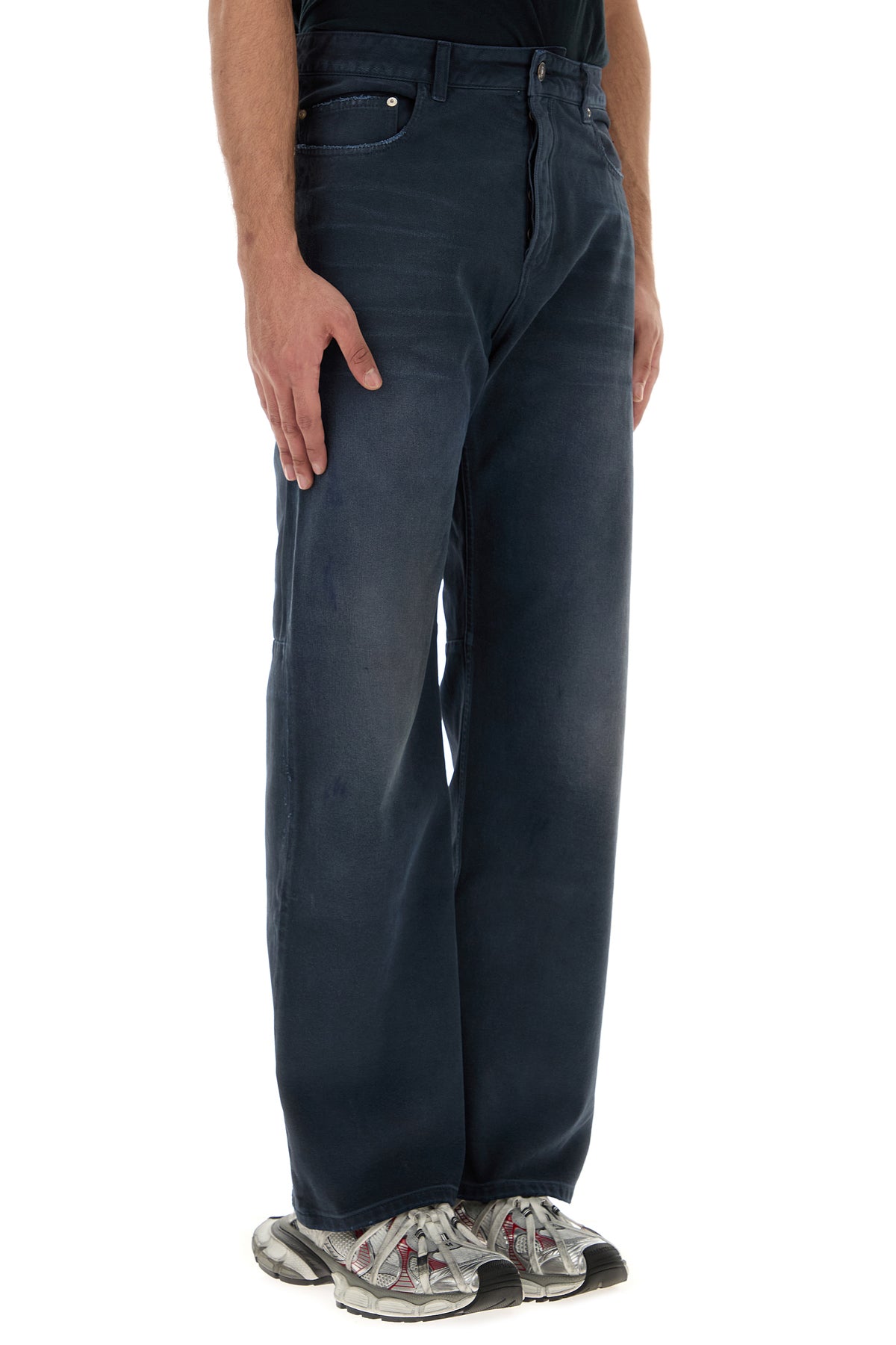 Jeans realized in stonewashed stonewashed and slightly distressed pure cotton denim enriched by logoed label at the back.