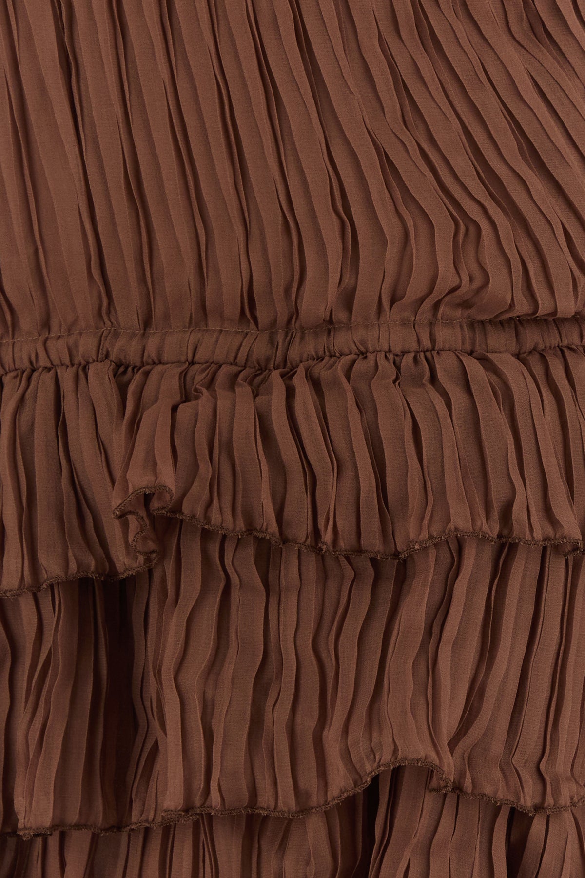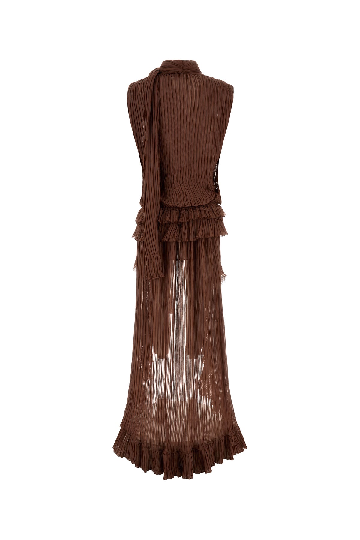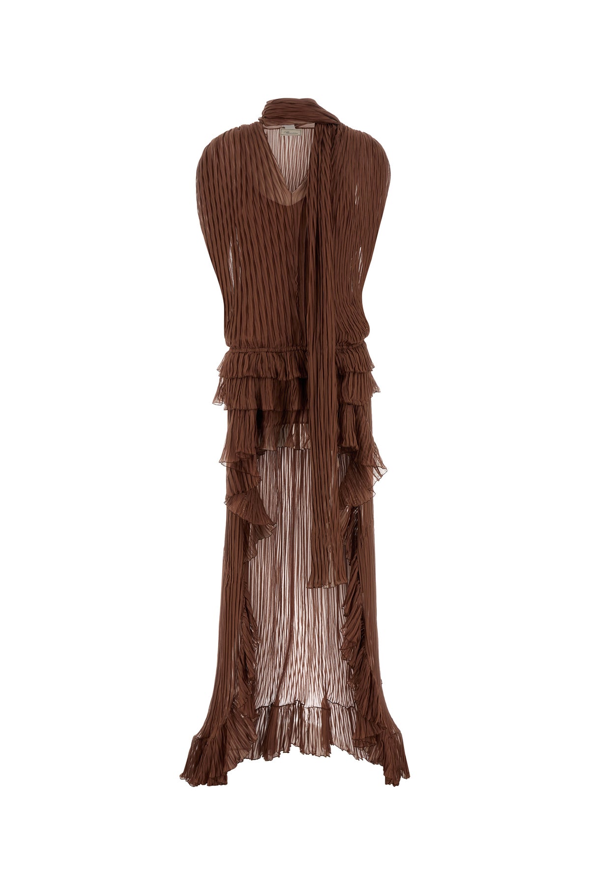 Pleated dress realized in pure silk chiffon characterized by scarf to tie at the neck.