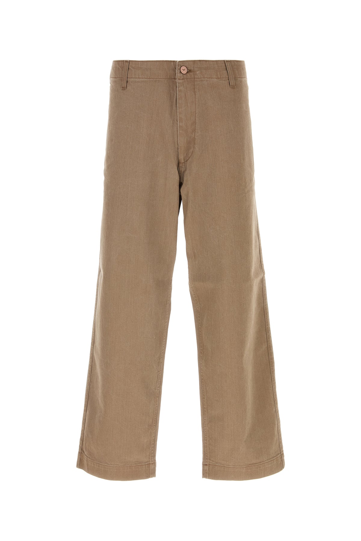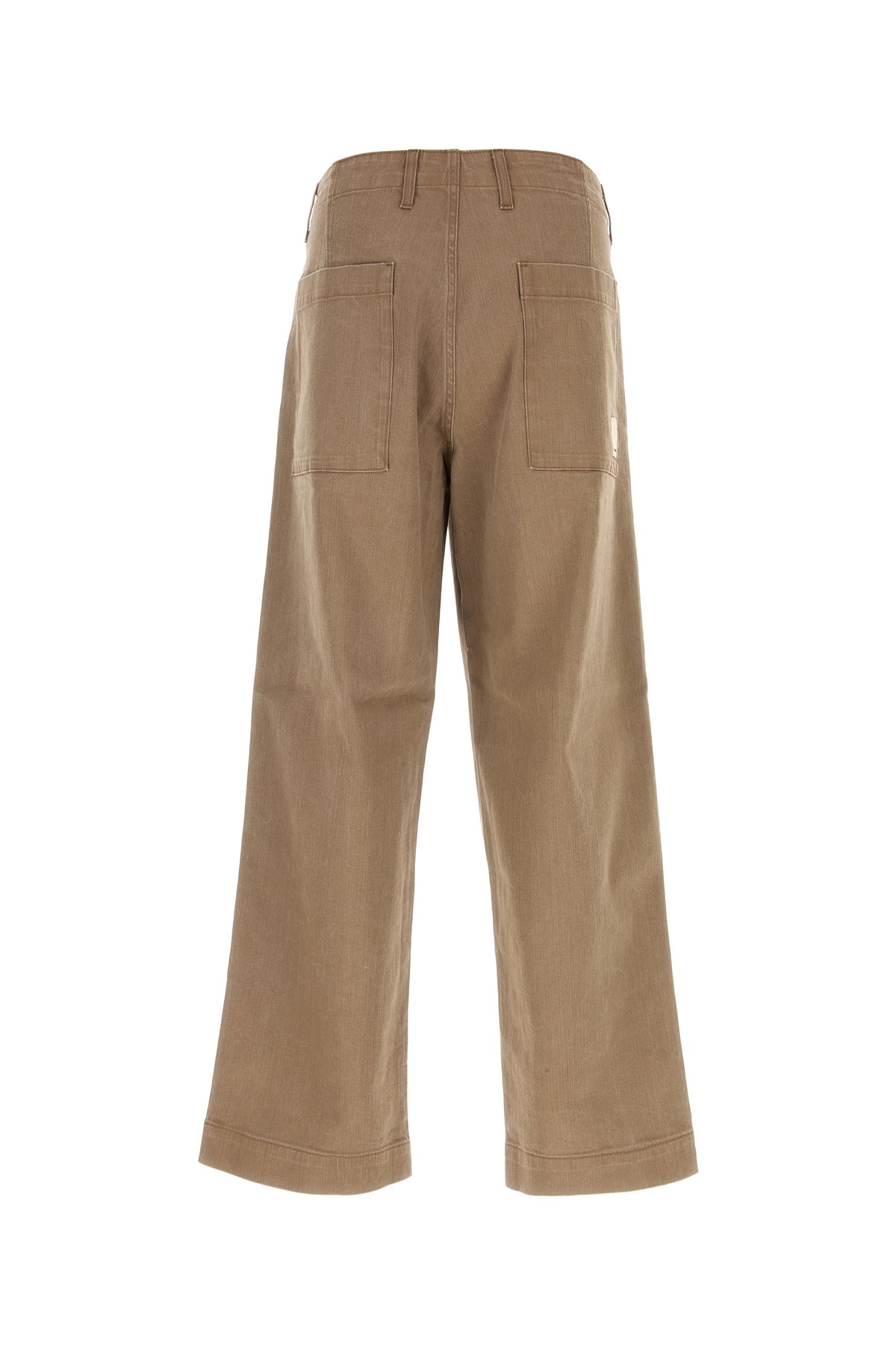 Jeans realized in stretch cotton denim enriched by contrasting logoed label at the back.