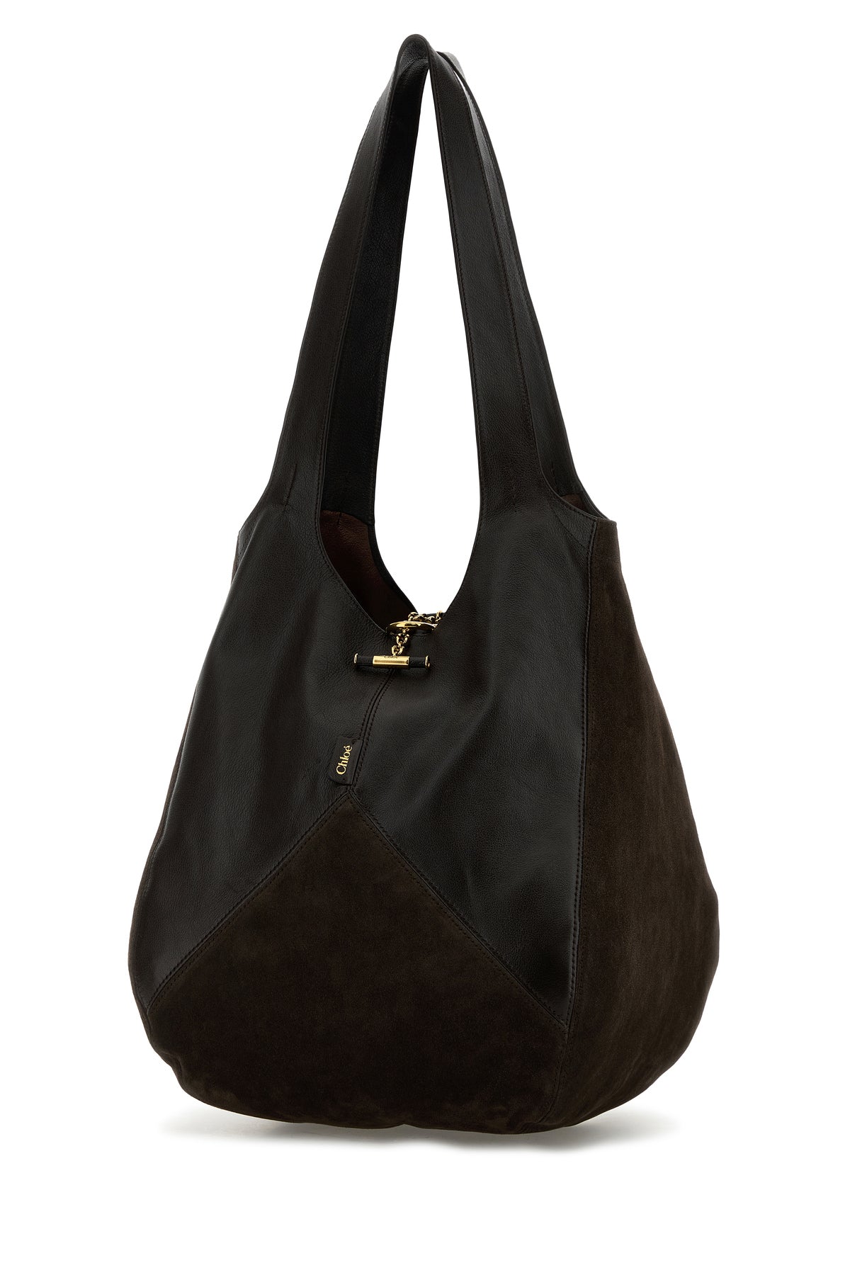 Brown suede and leather Balloon shopping bag