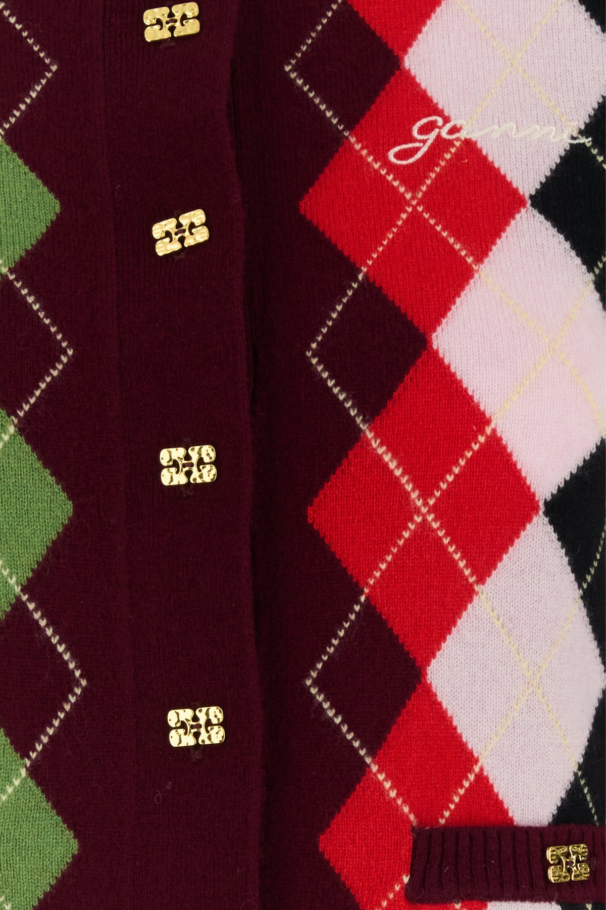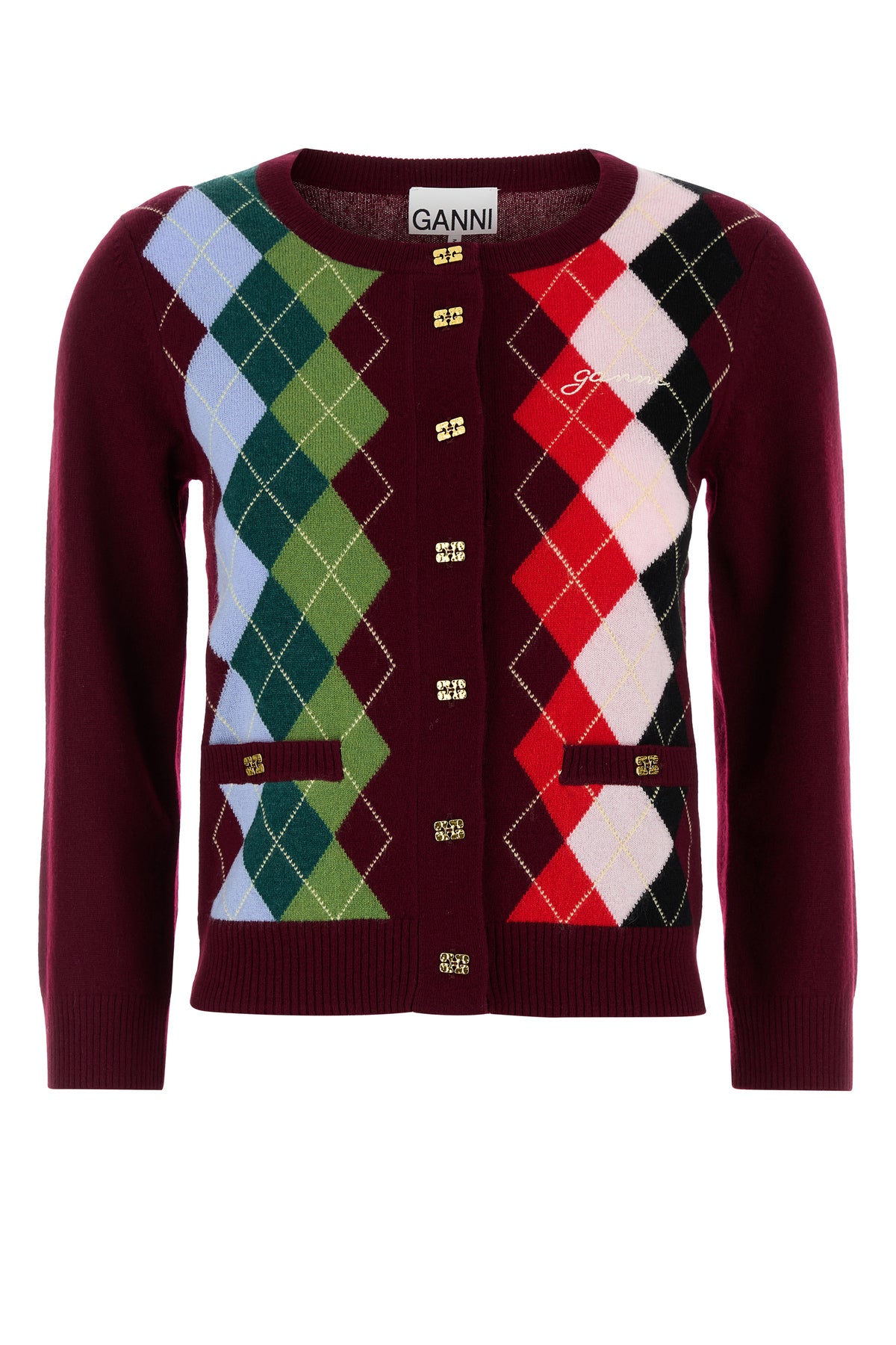 Cardigan realized in wool and cashmere characterized by checked embroidery at the front and embroidered logo on the chest.
