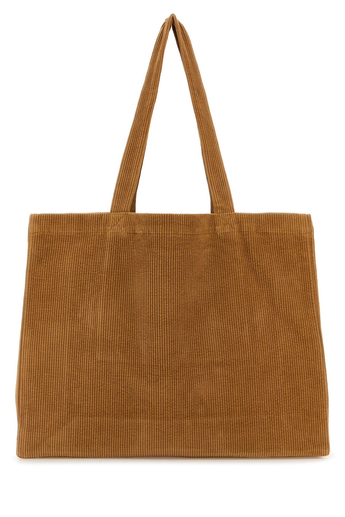 Shopping bag realized in corduroy characterized by tonal printed logo at the front.