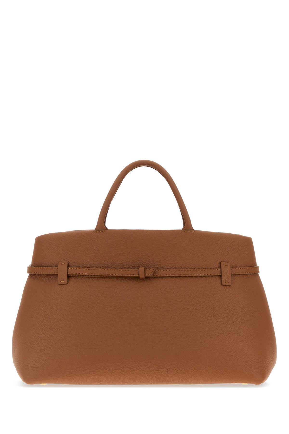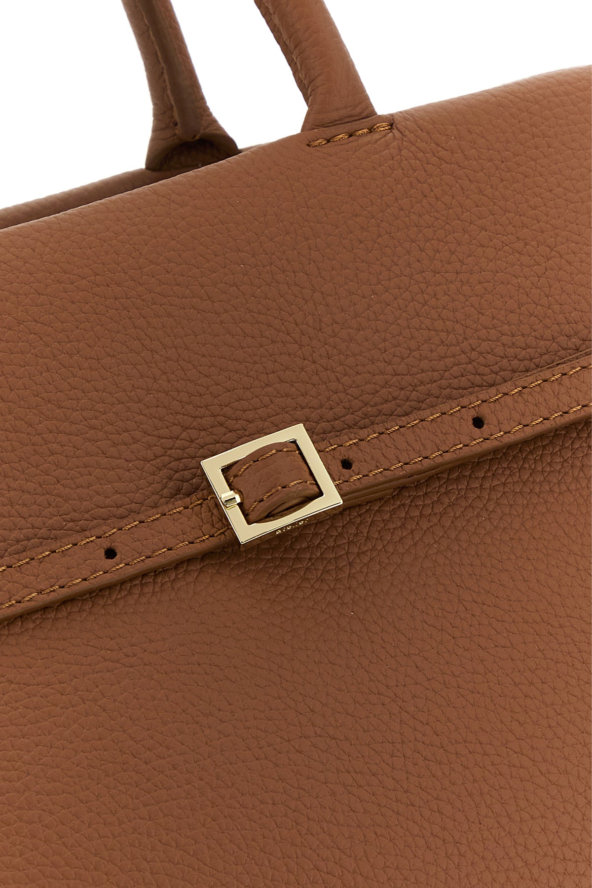 Handbag realized in pebble calf leather characterized by laminated printed logo at the front.