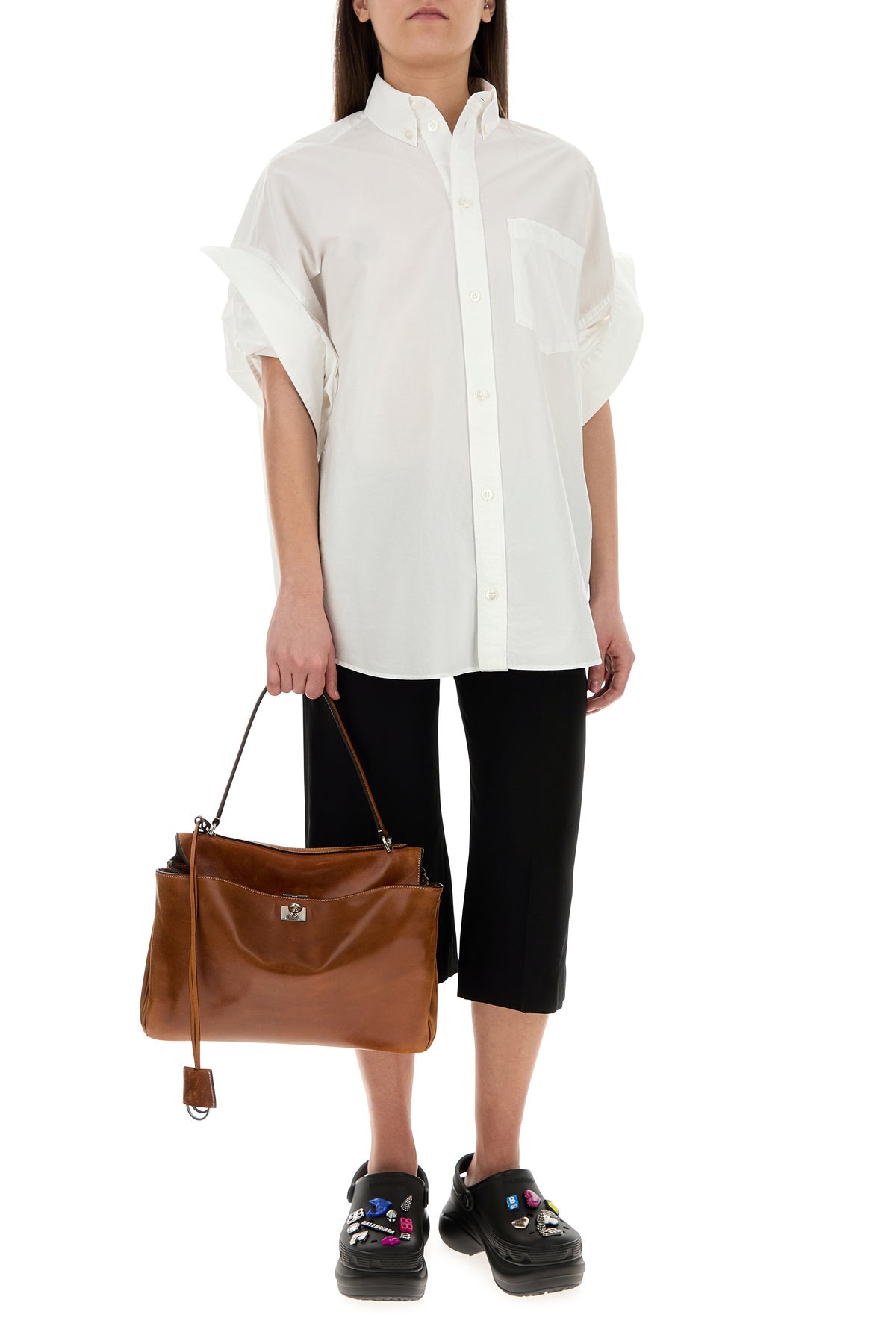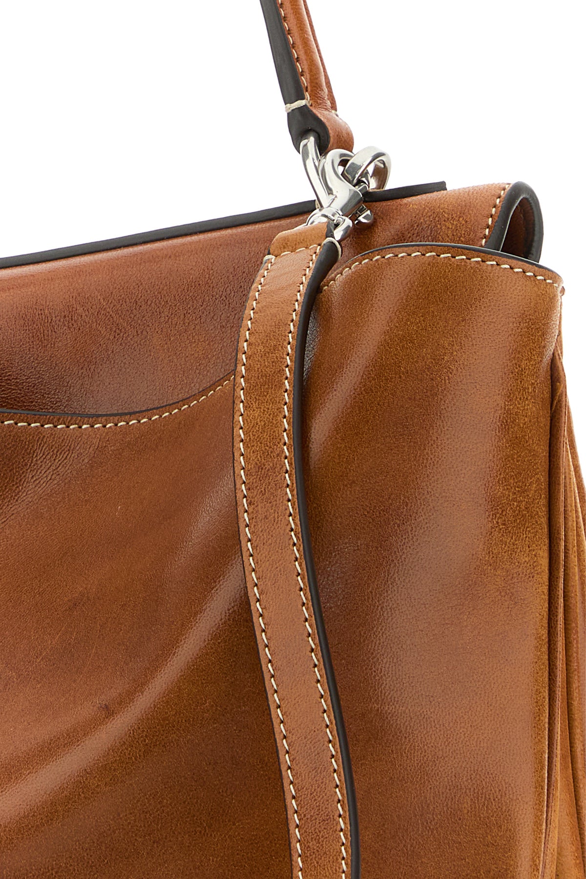 Handbag realized in vintage effect smooth lamb leather enriched by detachable leather keychain accessory.