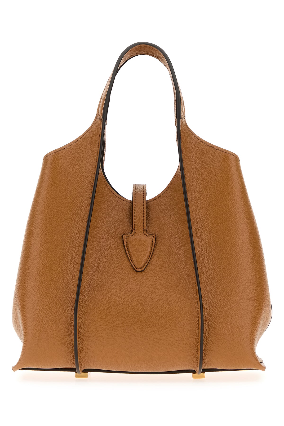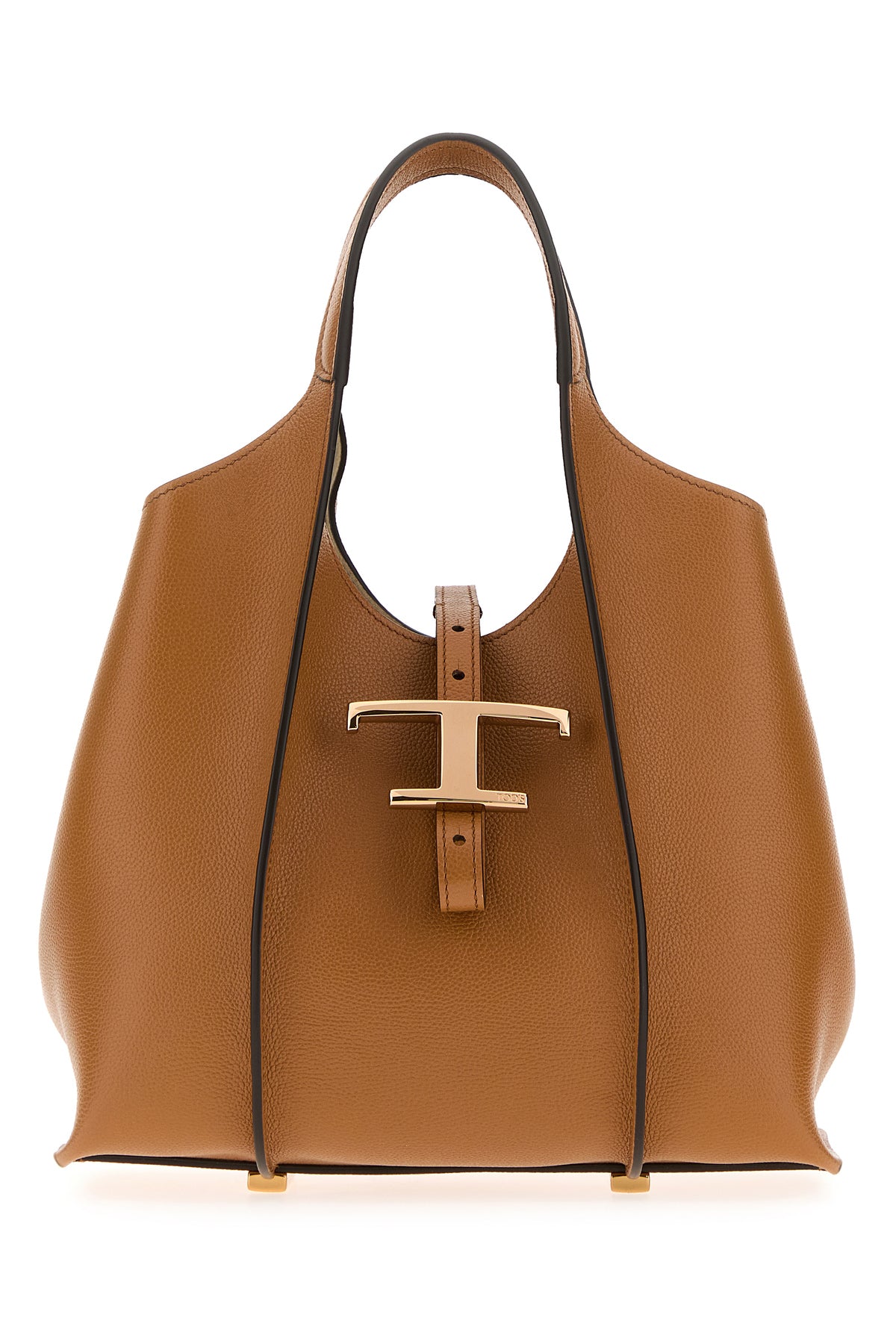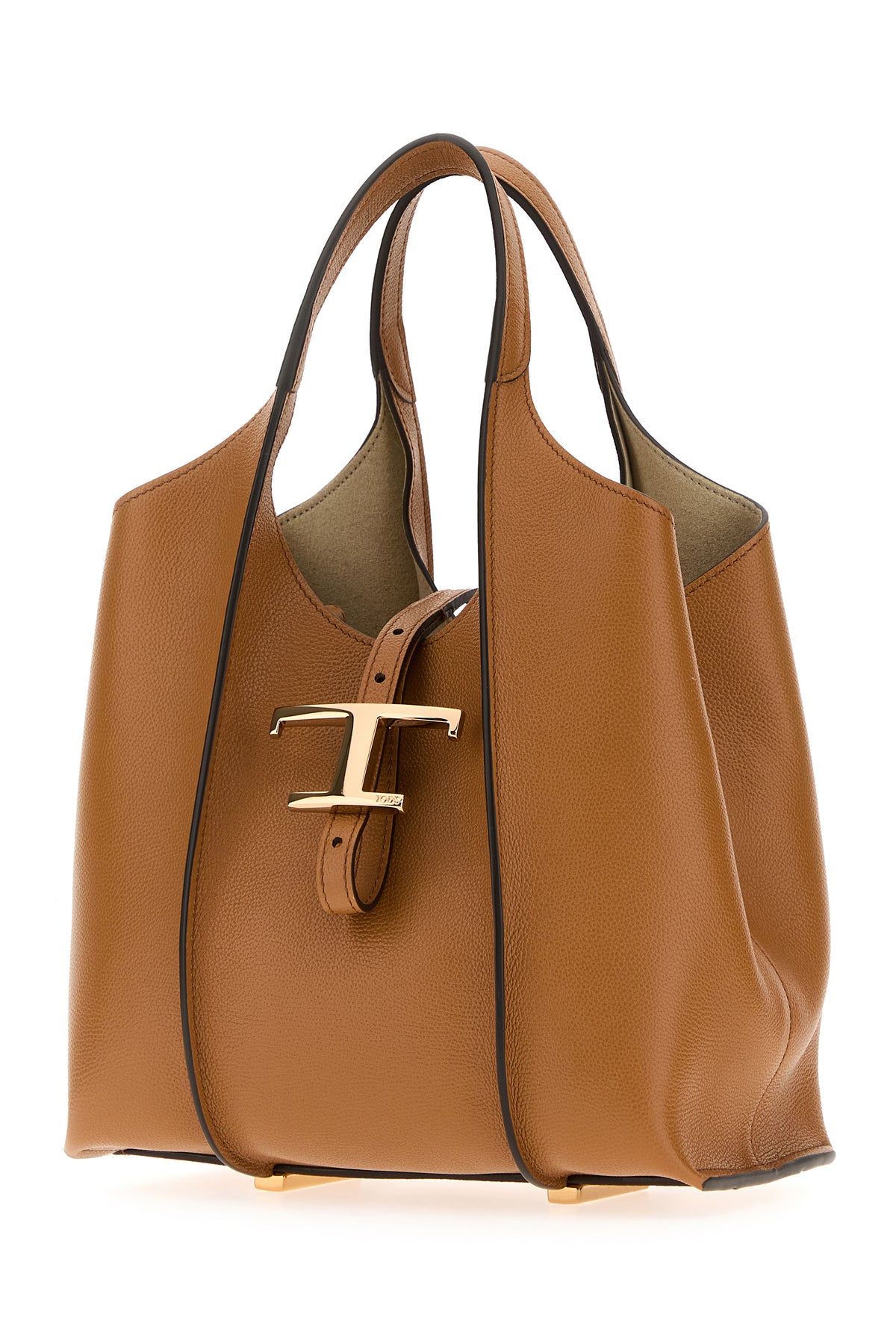 Shopping bag realized in pebble leather enriched by decorative leather strap with metal T Timeless detail.