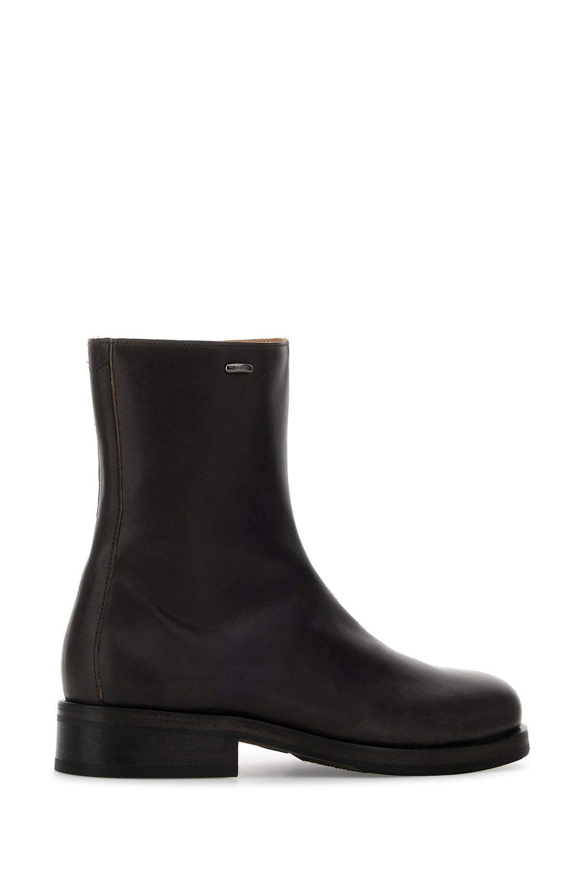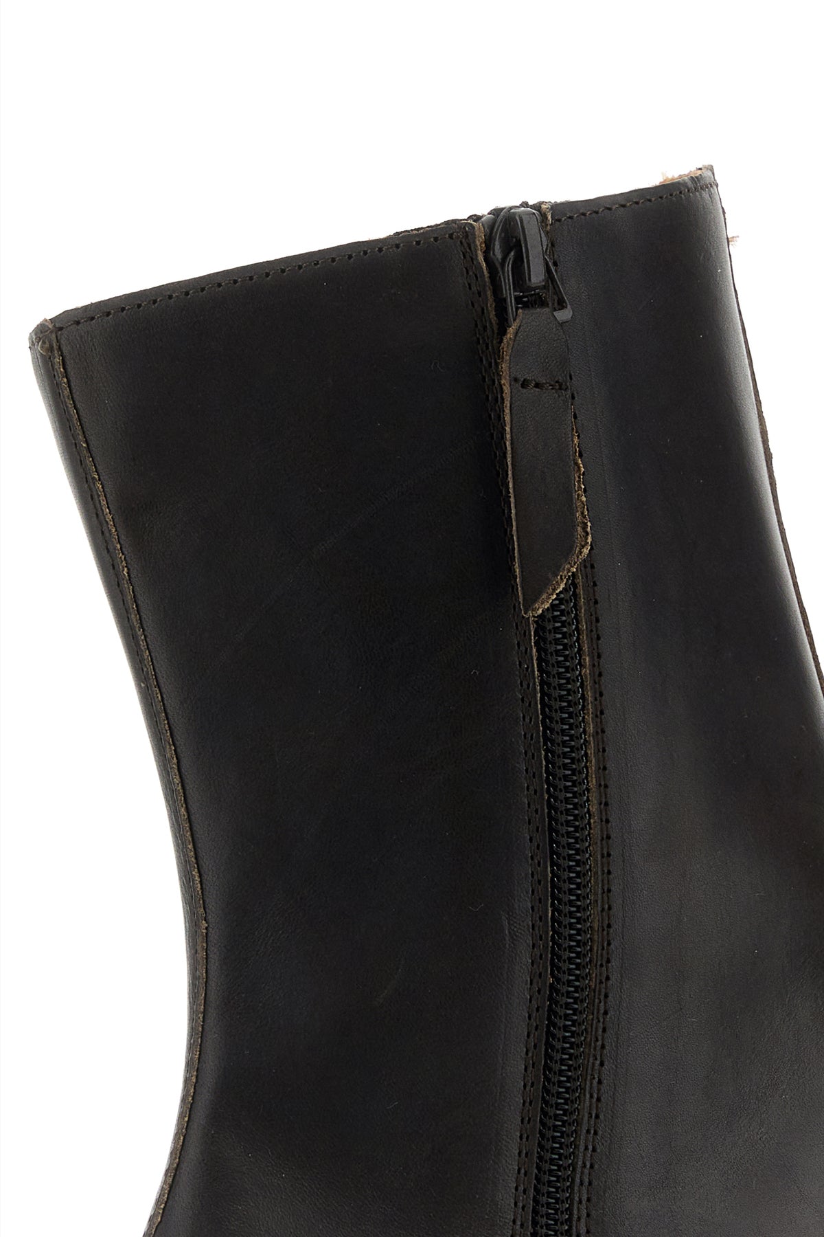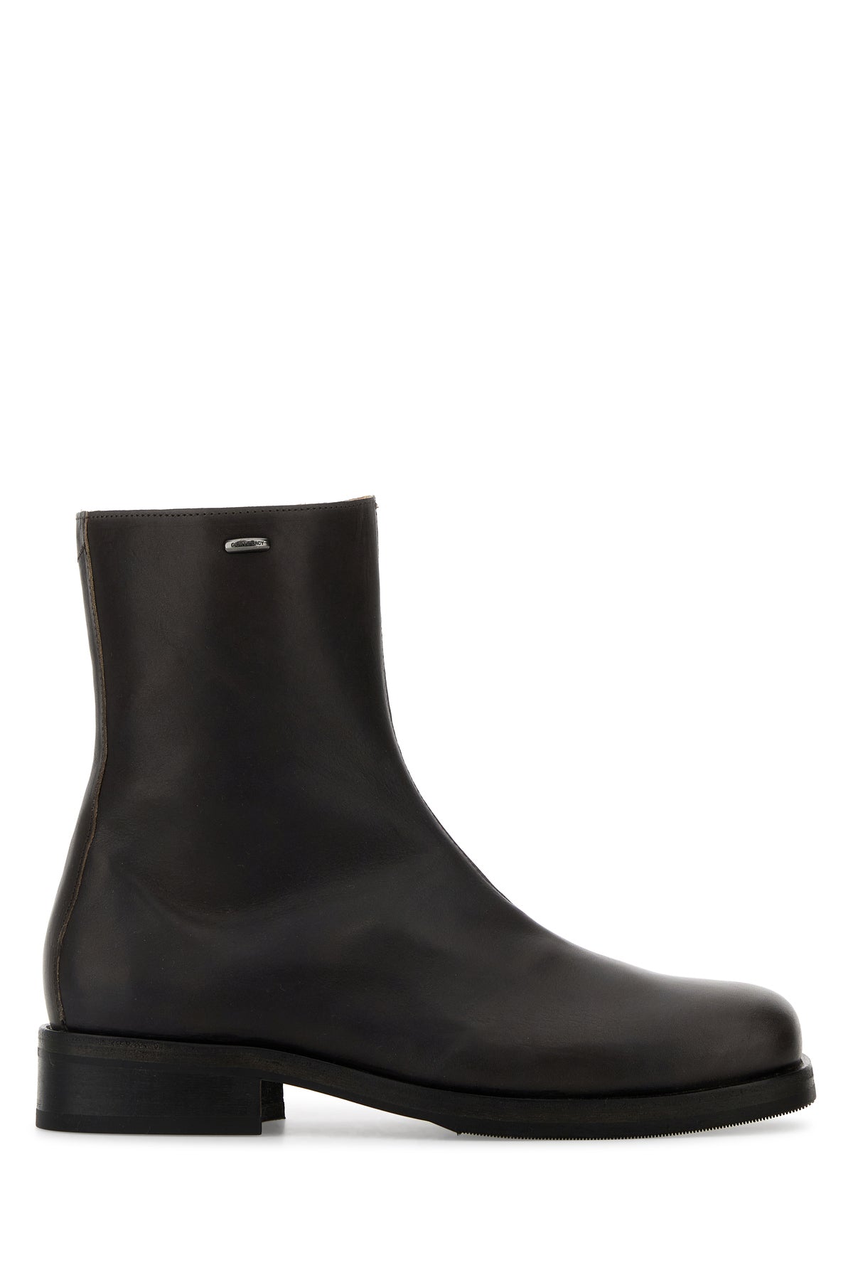 Ankle boots realized in leather enriched by metal logoed detail on the side.