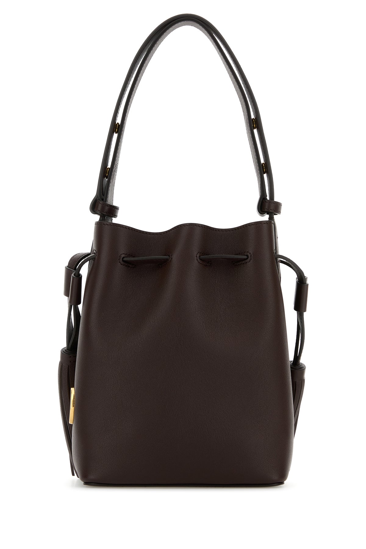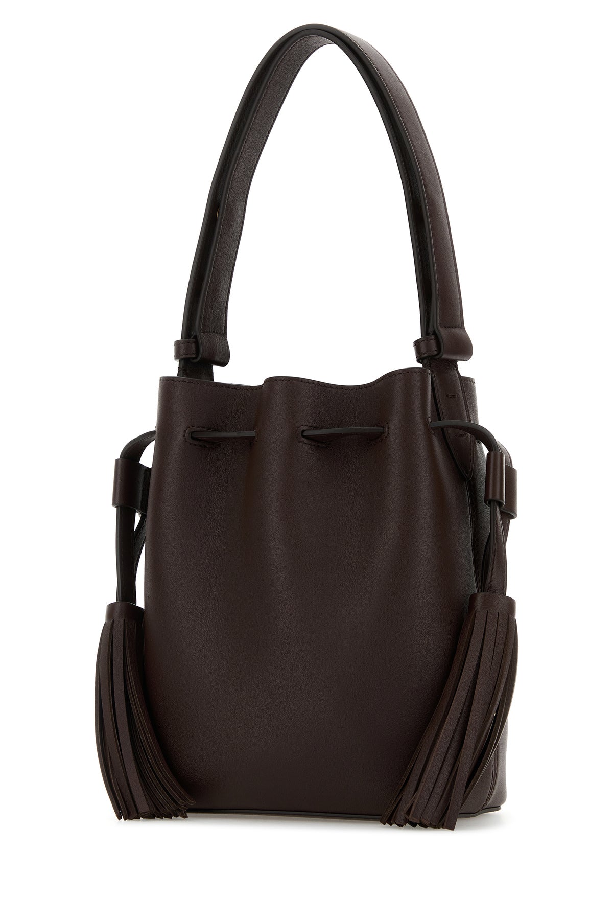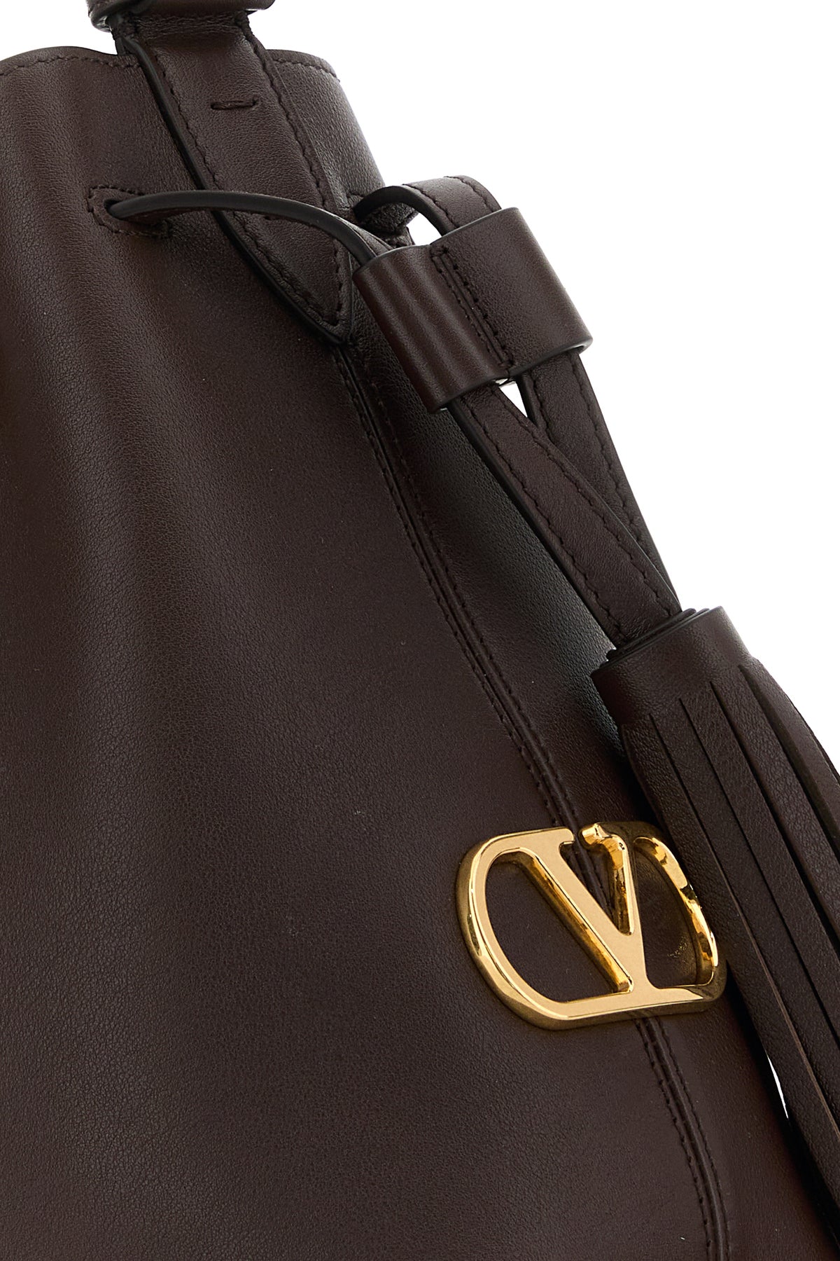 Bucket bag realized in pebble leather enriched by VLogo Signature metal detail on the side.