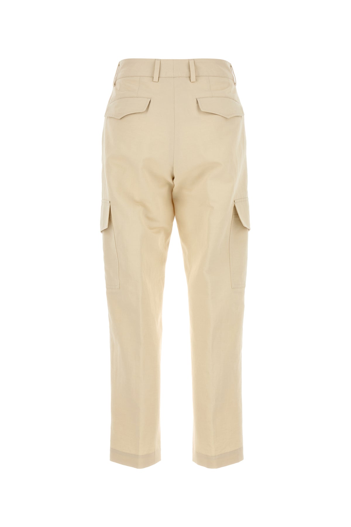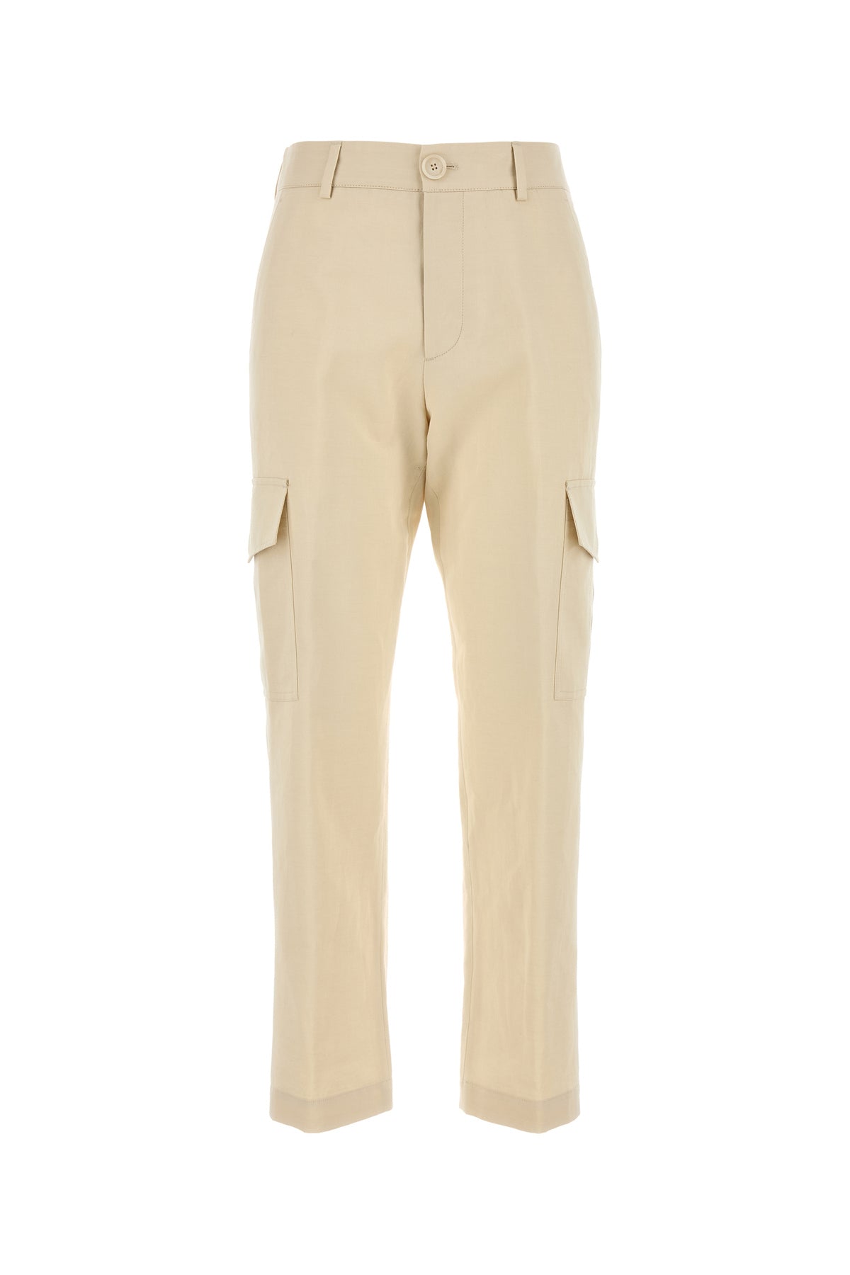 Cargo pant realized in cotton and linen characterized by central ironed pleats.