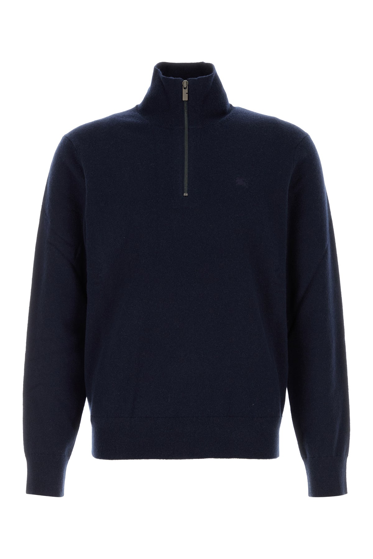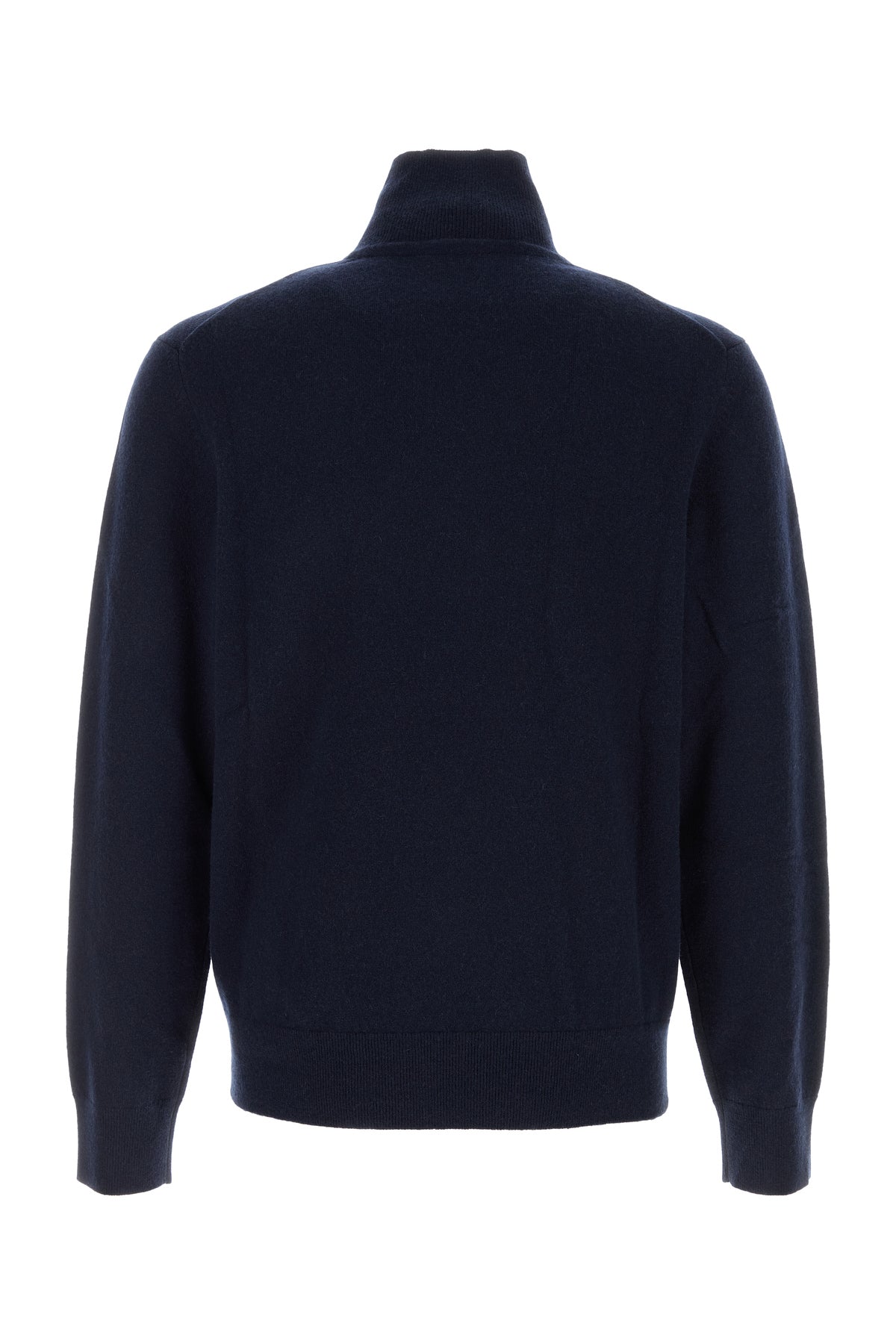 Sweater realized in stretch cashmere blend characterized by mock turtleneck.