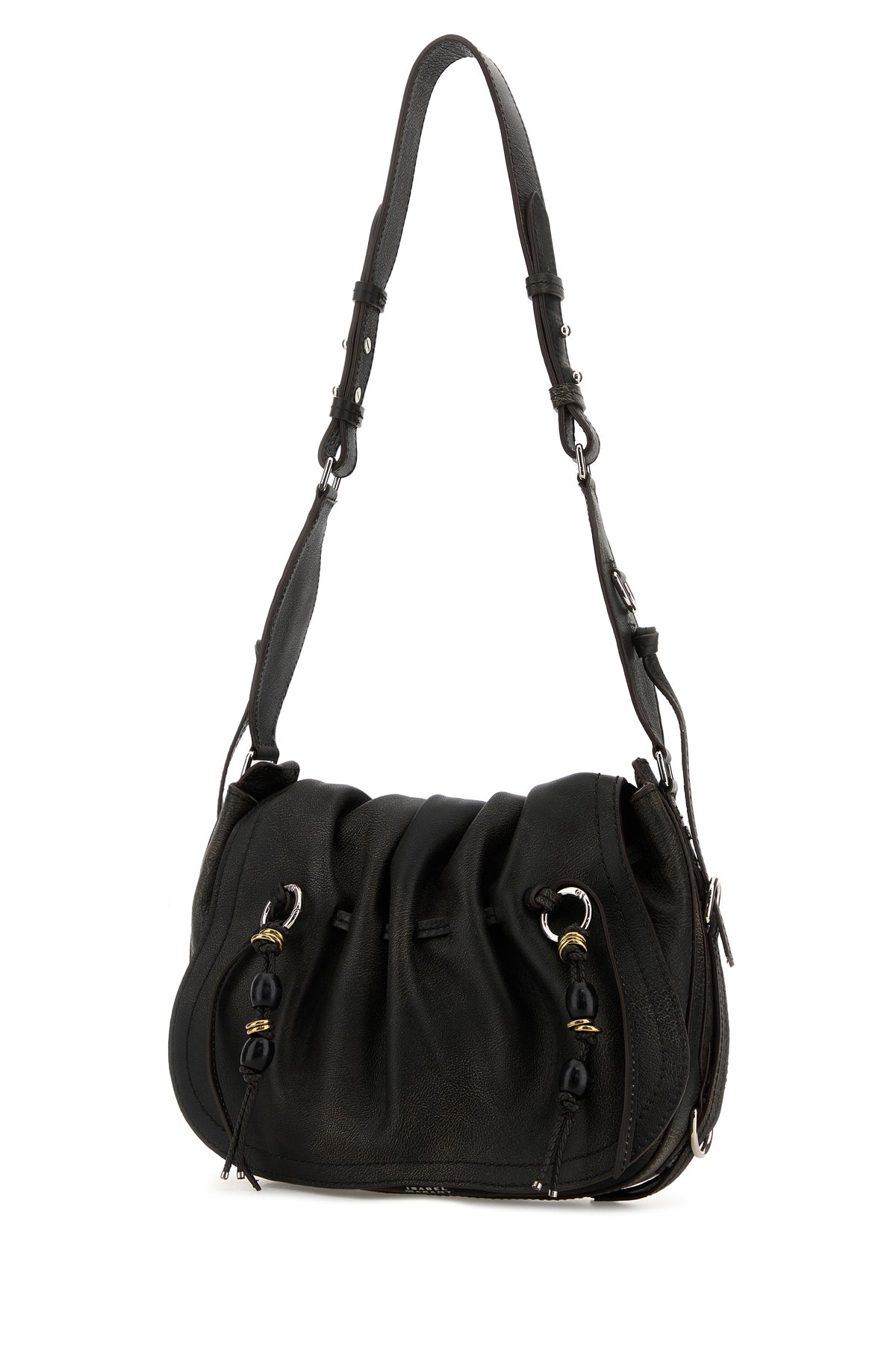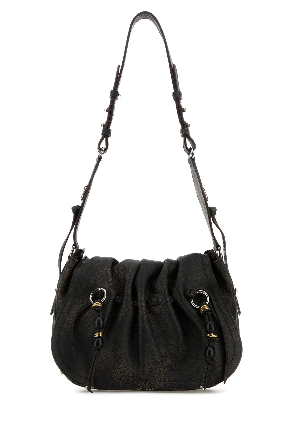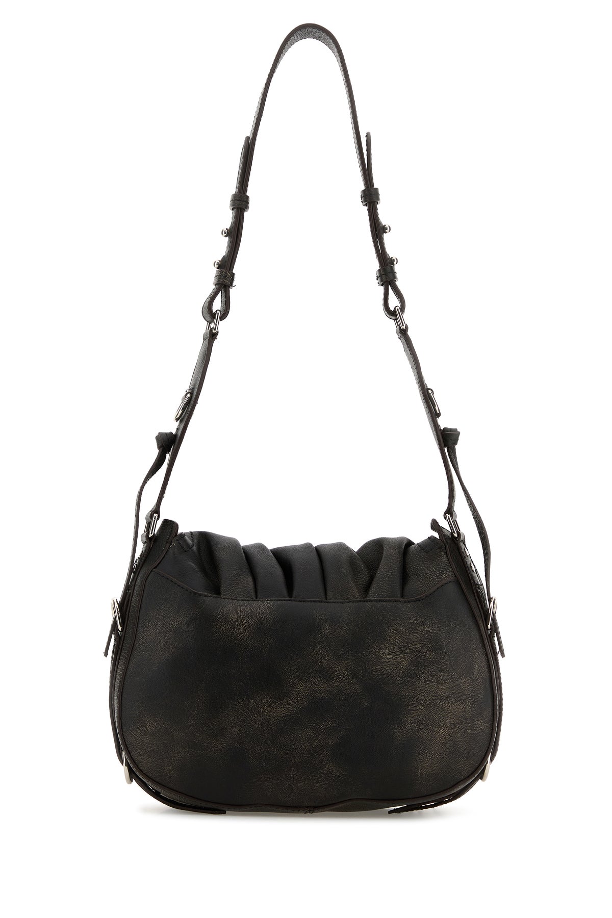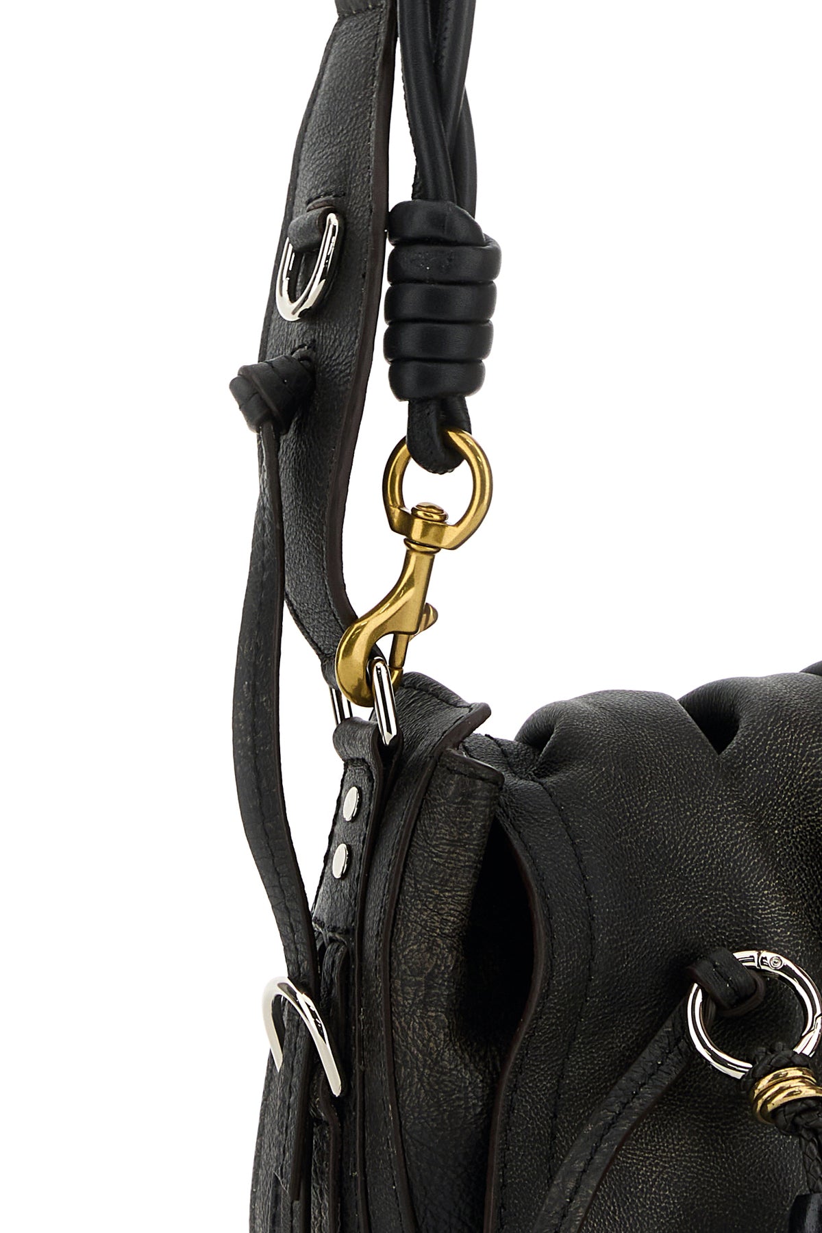 Shoulder bag realized in vintage effect pebble bovine leather characterized by laminated printed logo at the front enriched by detachable charms.