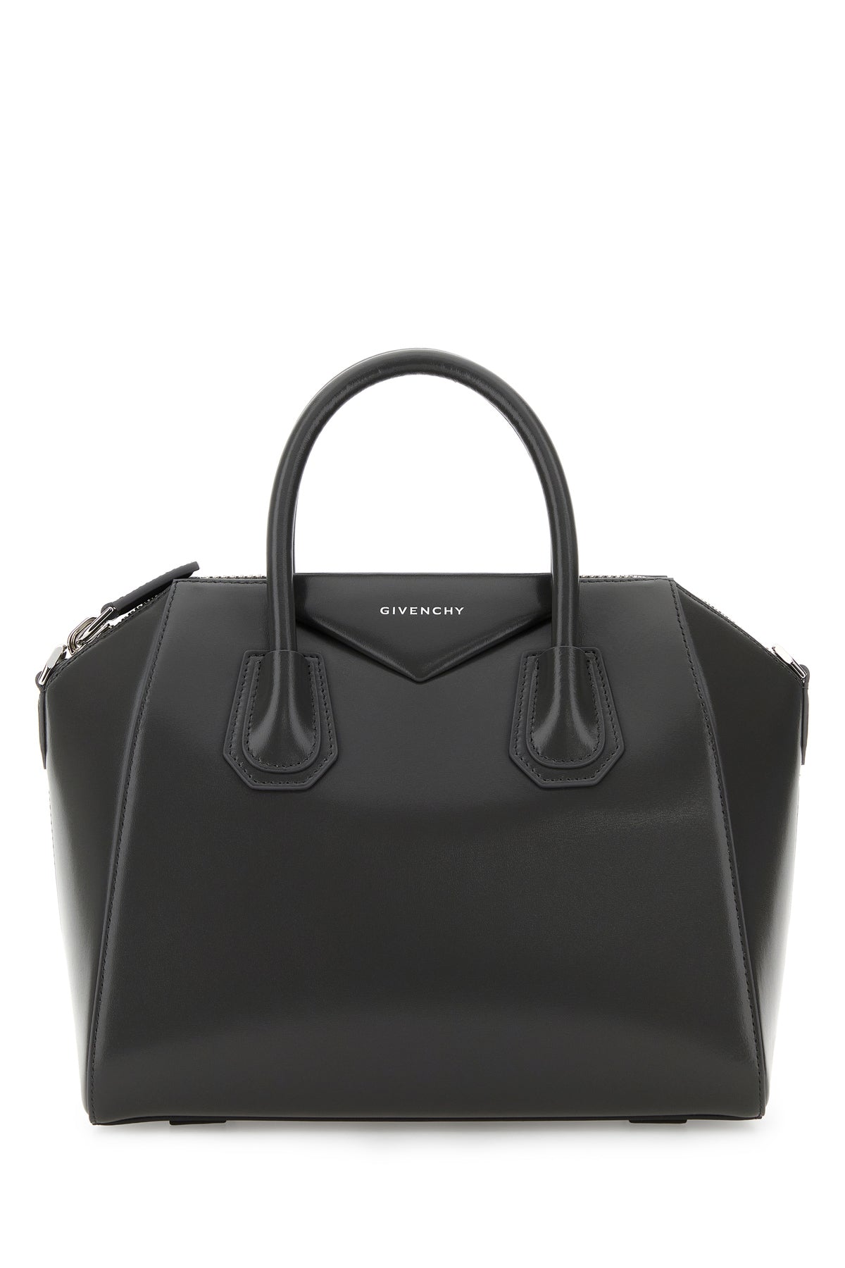 Handbag realized in smooth calf leather characterized by laminated printed logo at the front.