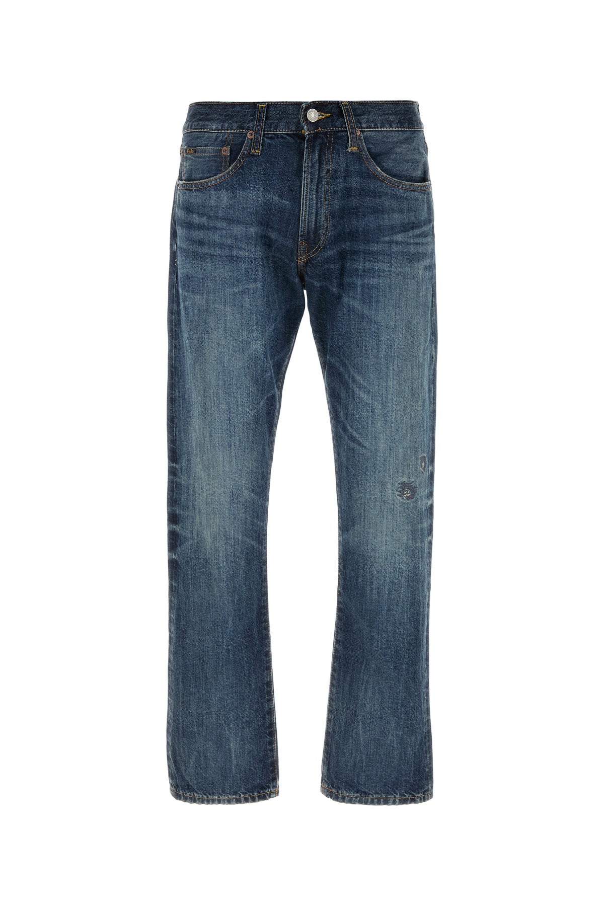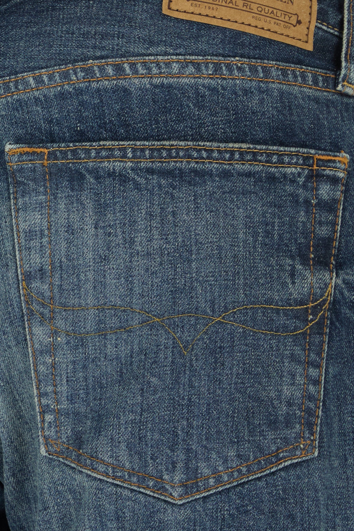 Jeans realized in stonewashed and distressed pure cotton enriched by logoed label at the back.