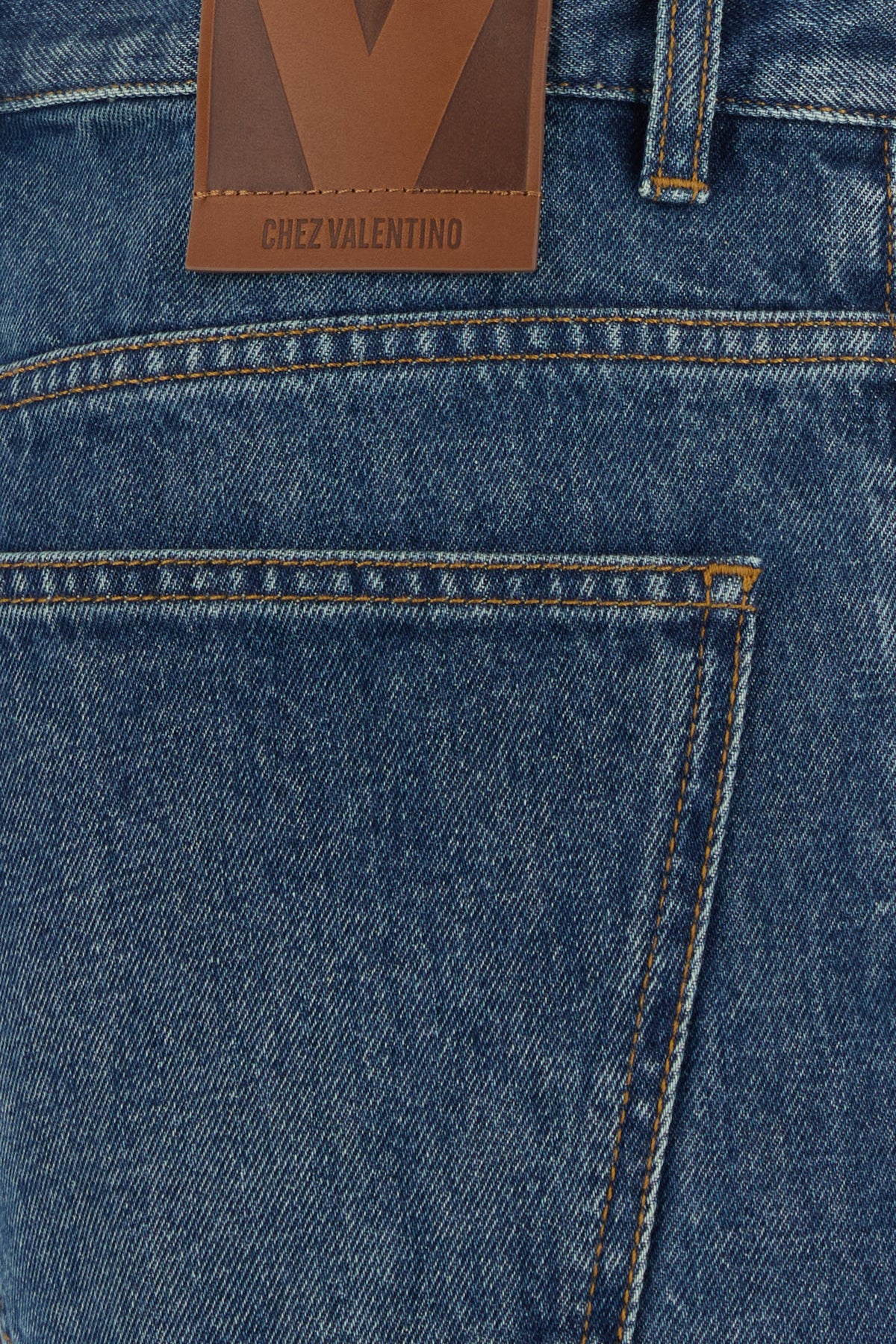 Jeans realized in slightly stonewashed pure cotton denim enriched by La Cour de Coeur motif fabric inserts on the hemline.