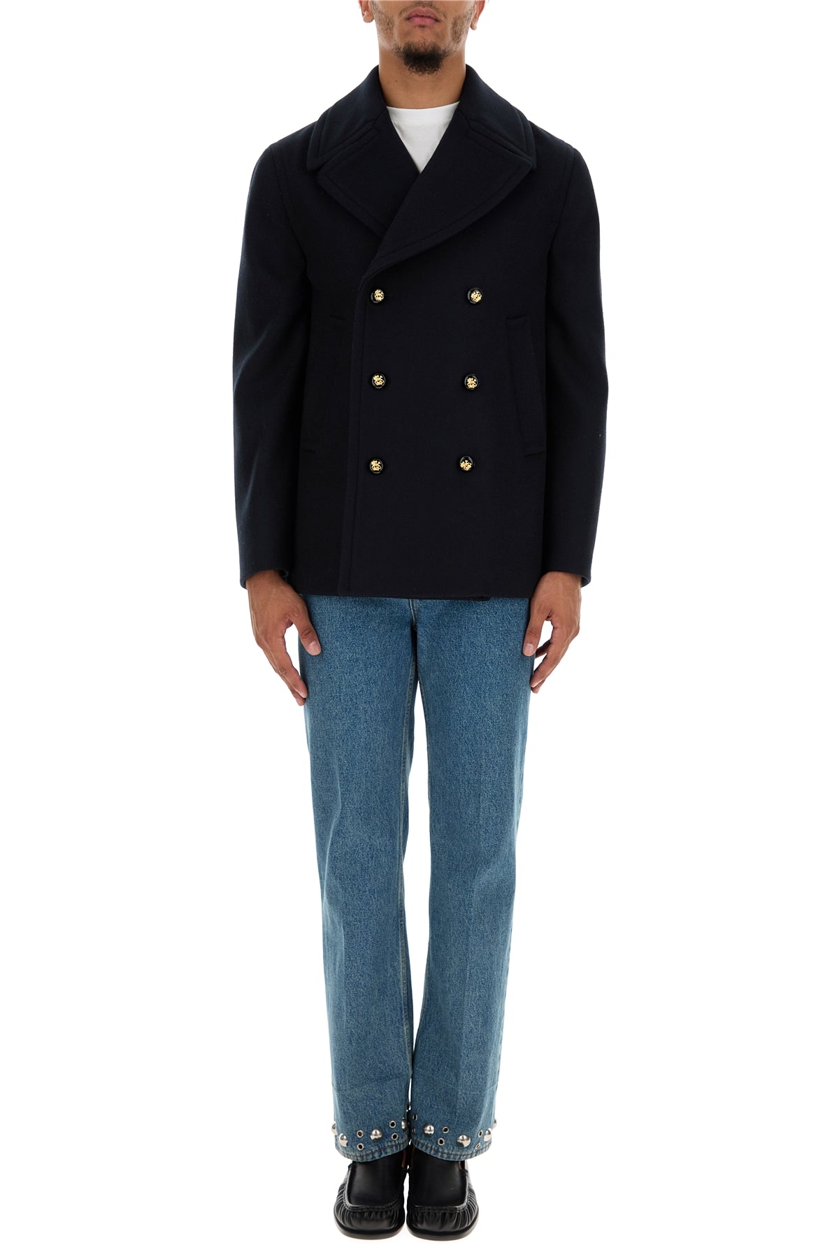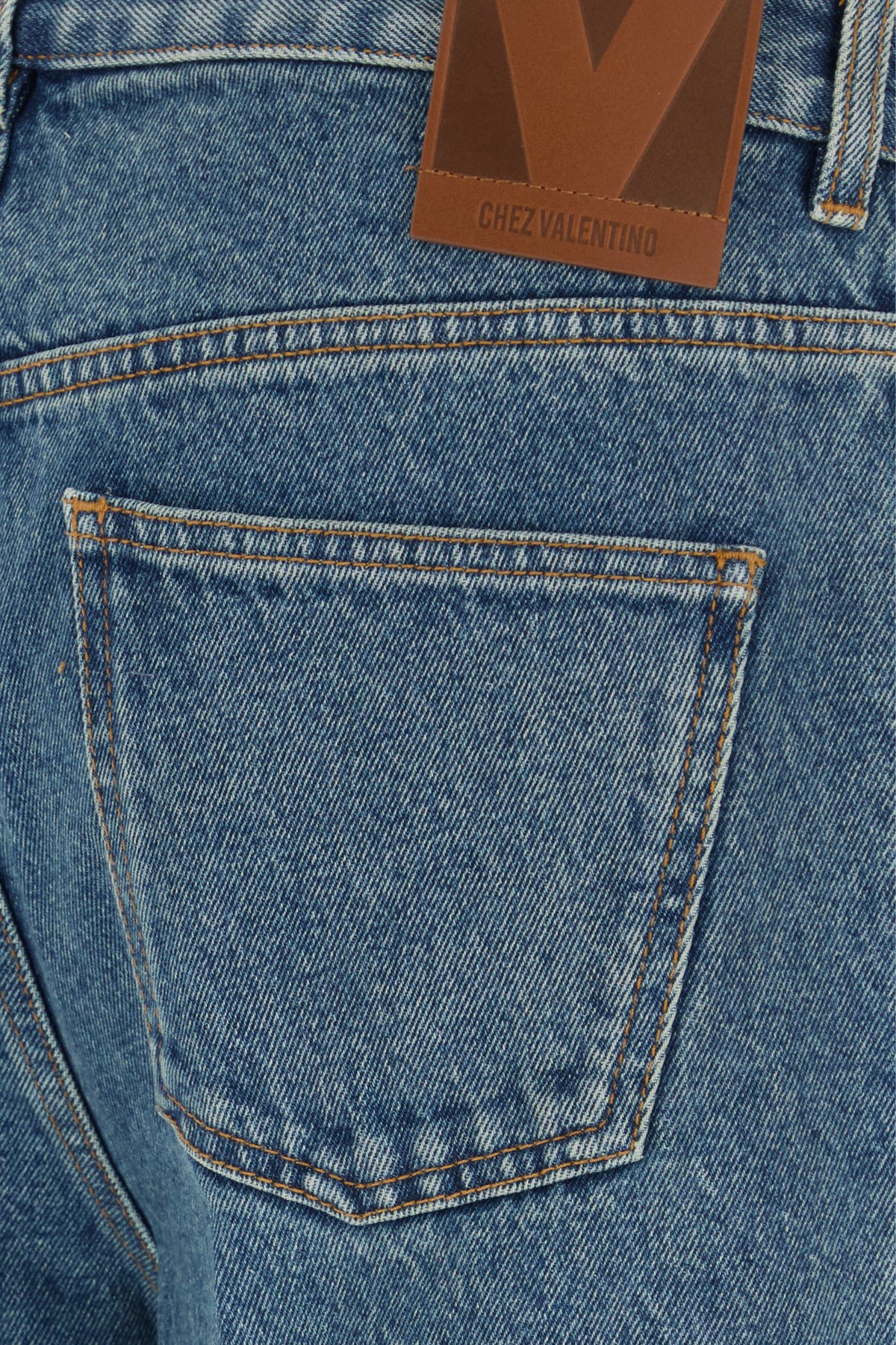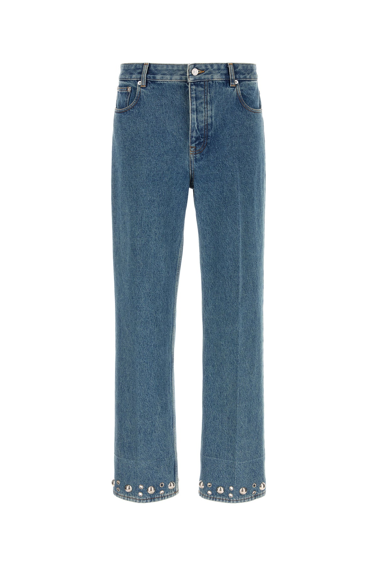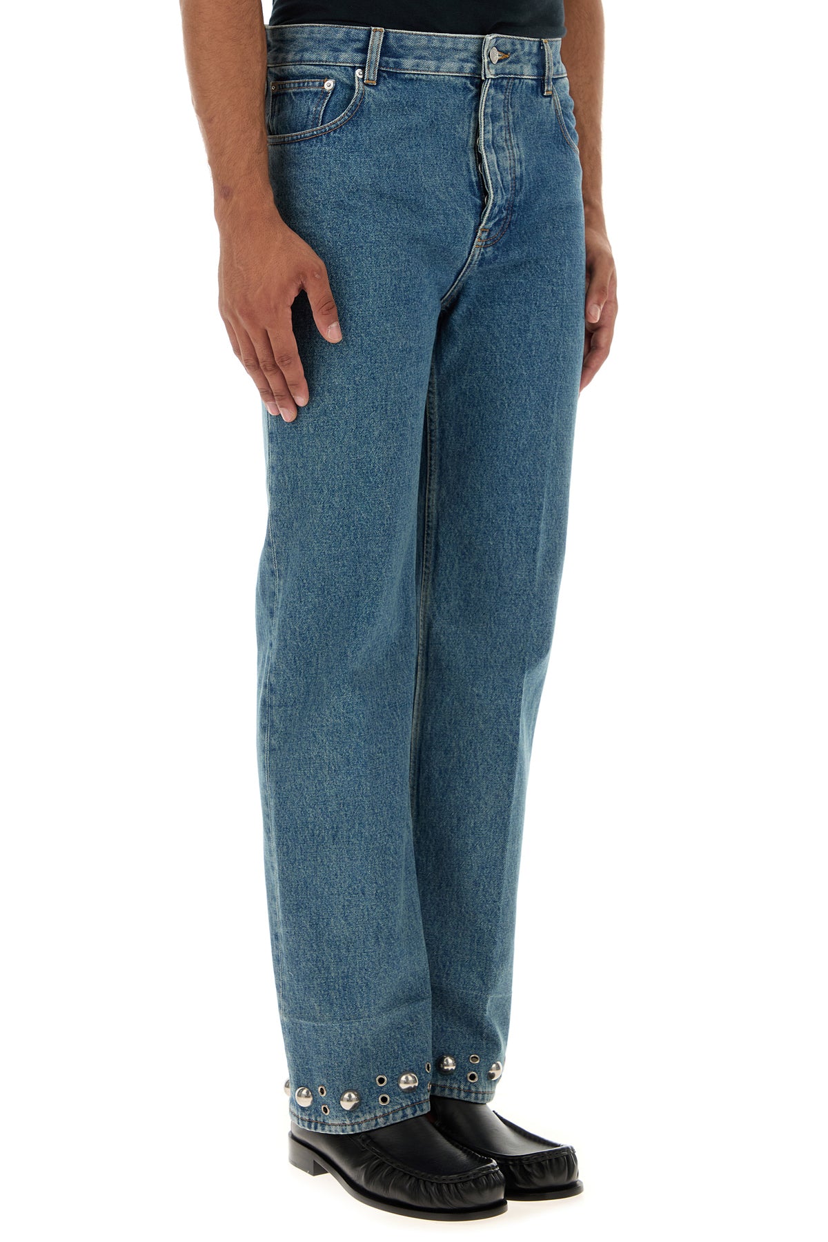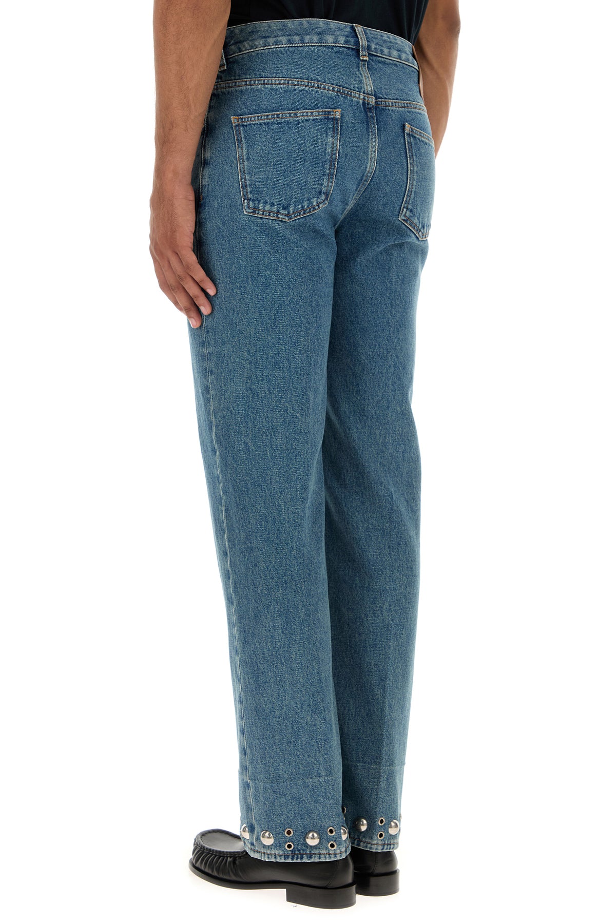 Jeans realized in pure cotton denim enriched by metal studs on the hemline.