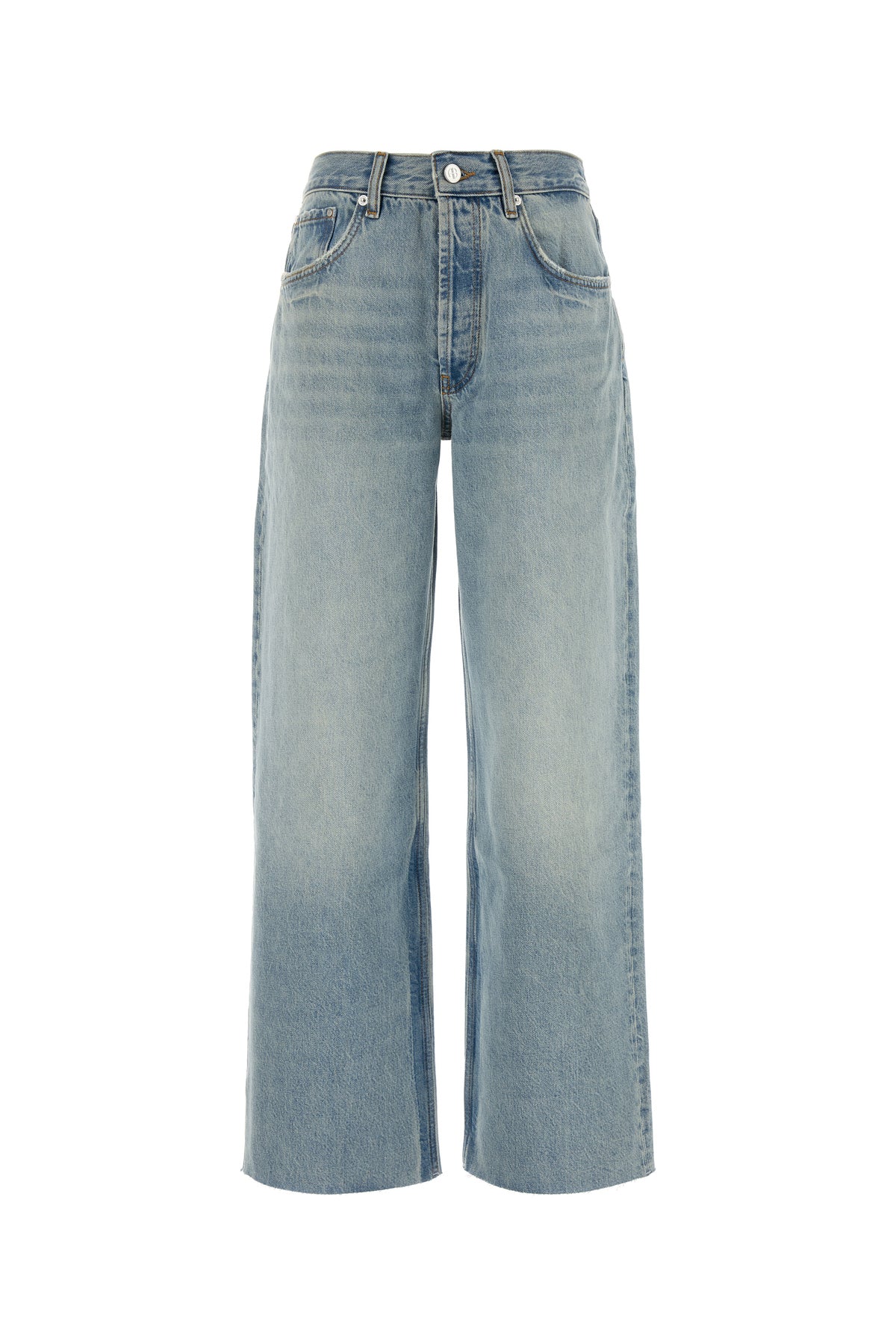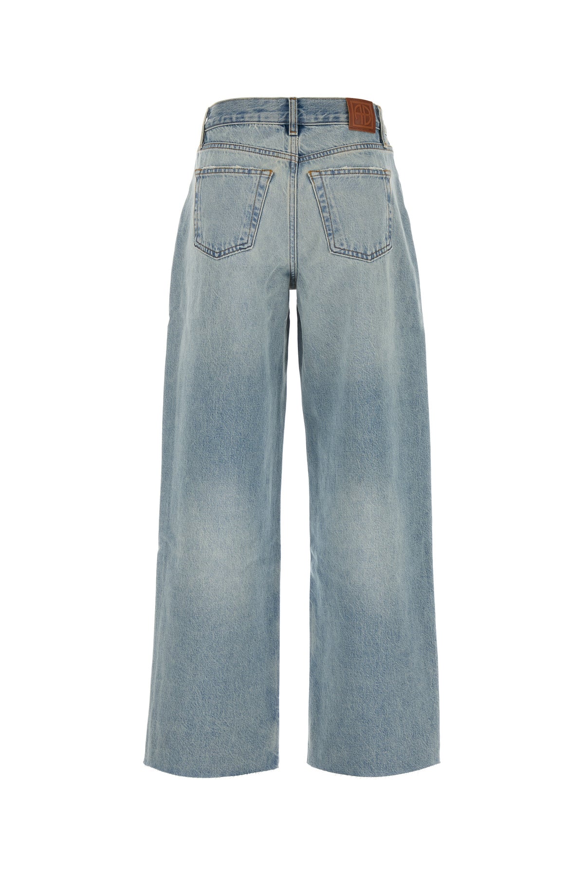 Jeans realized in stonewashed and distressed pure cotton denim enriched by contrasting logoed label at the back.