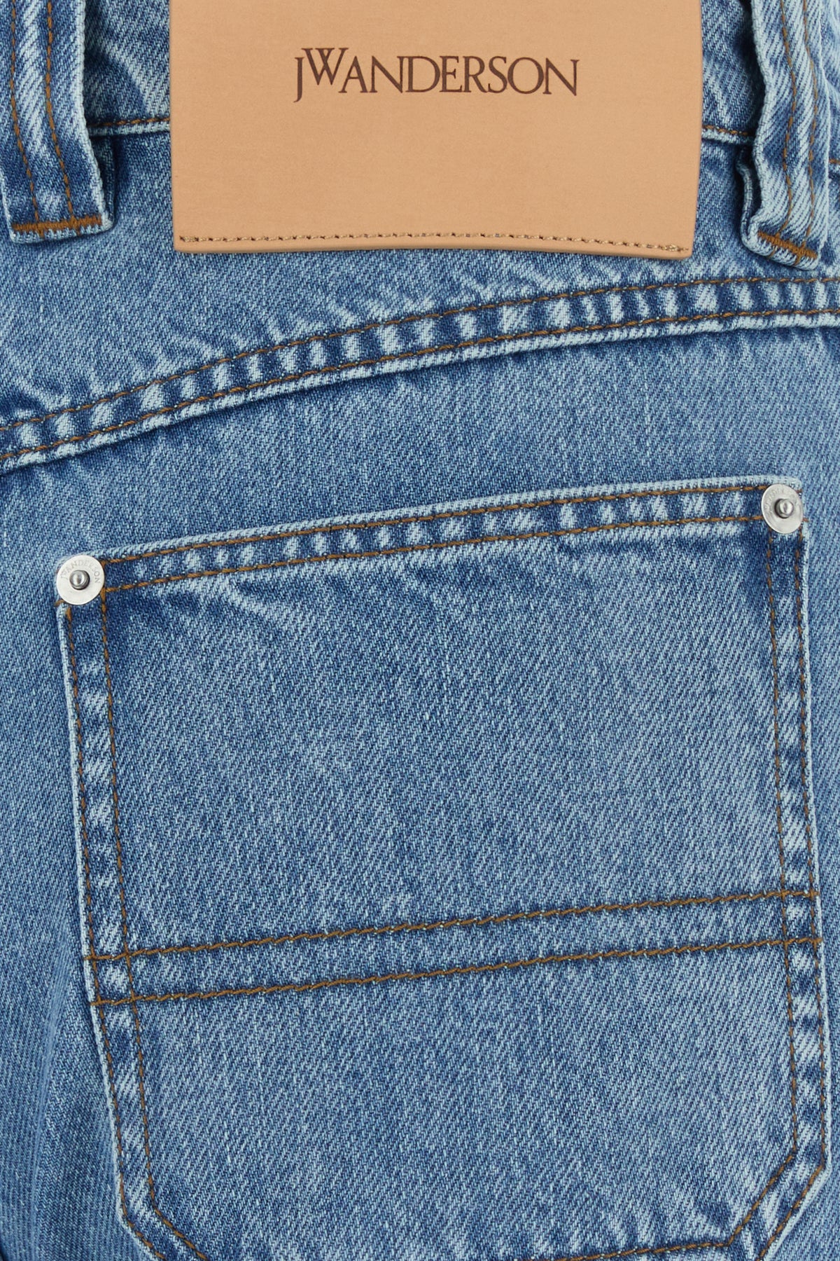 Jeans realized in pure cotton denim enriched by contrasting logoed patch at the back.