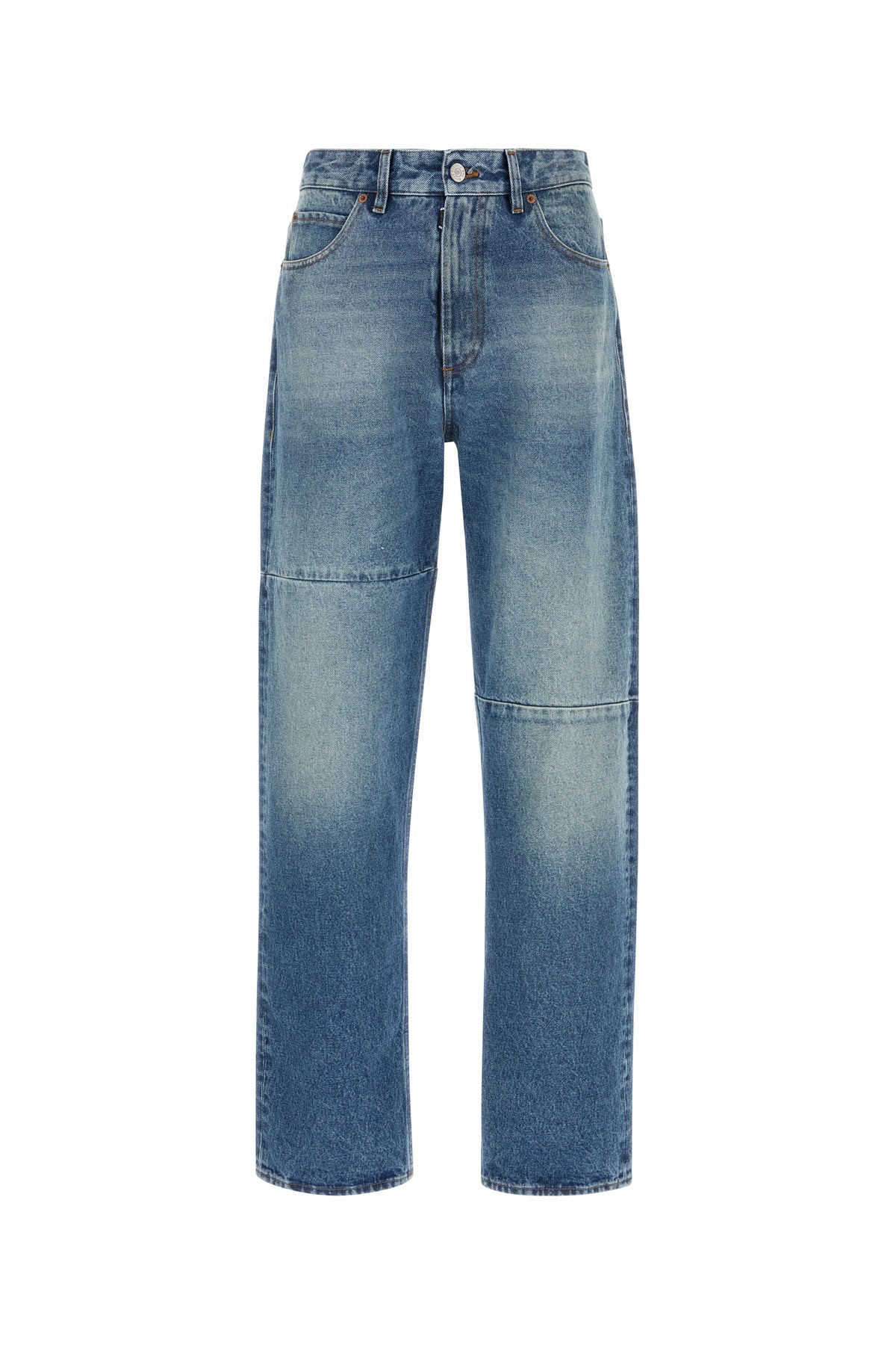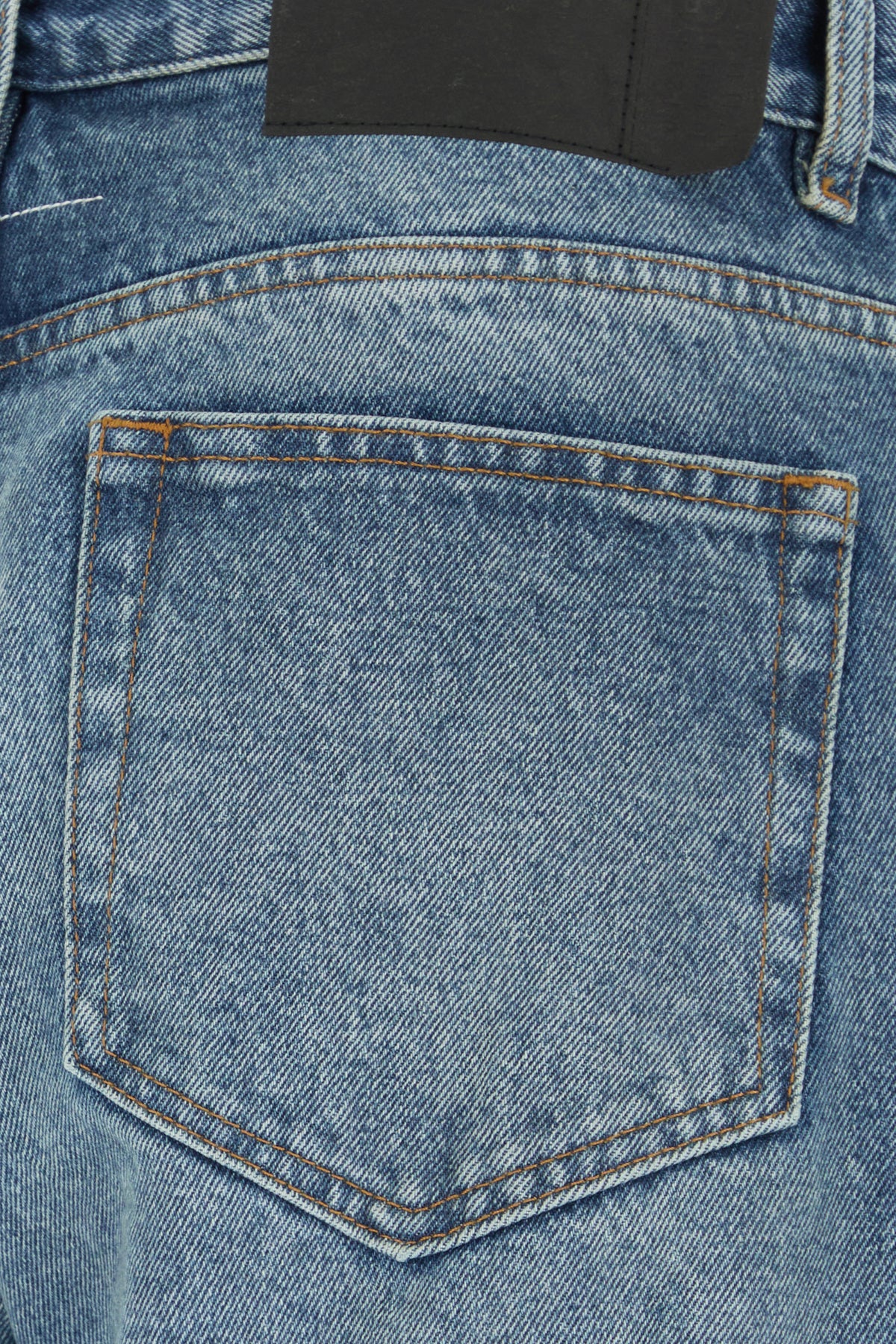 Jeans realized in stonewashed pure cotton denim characterized by contrasting iconic stitching at the back.