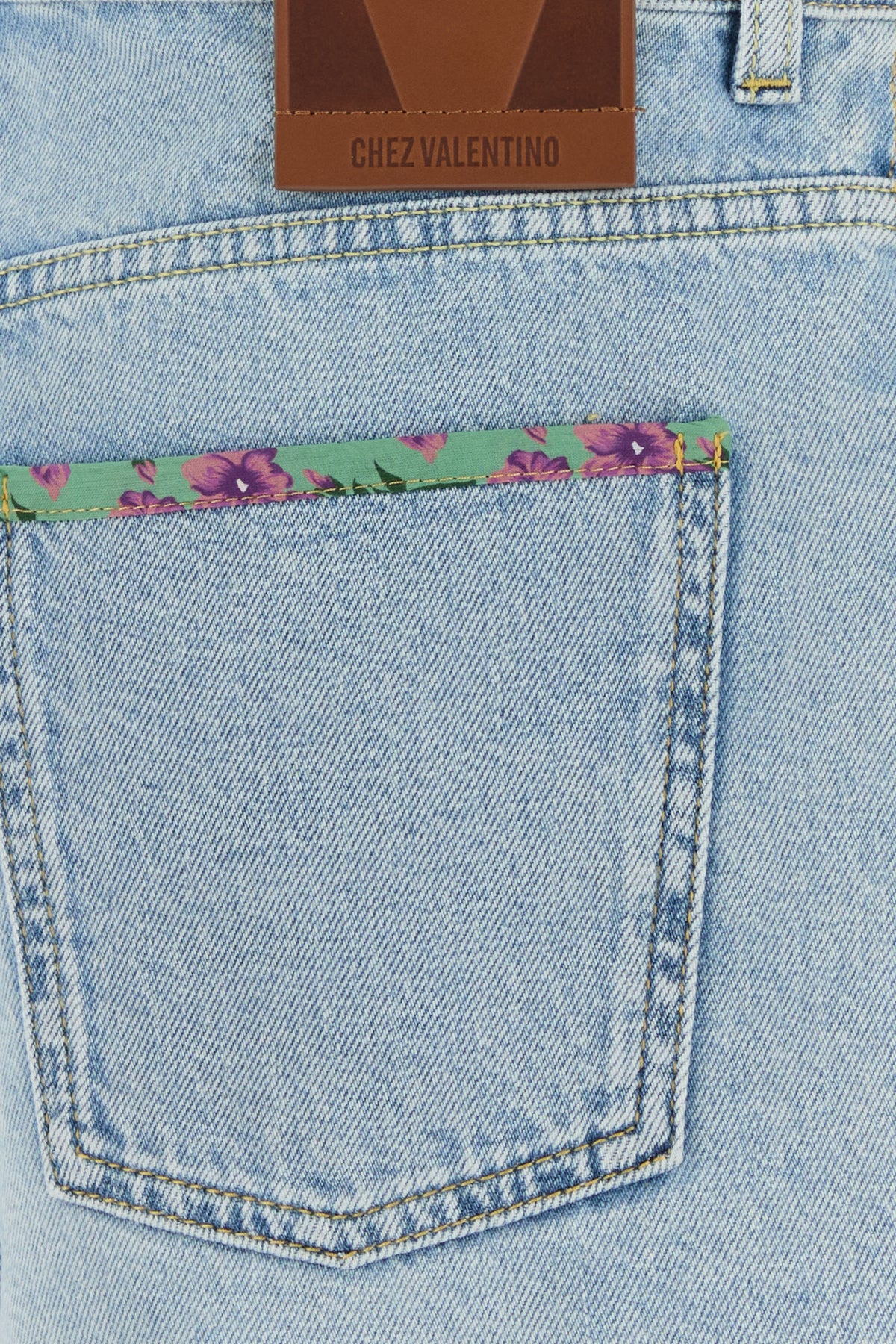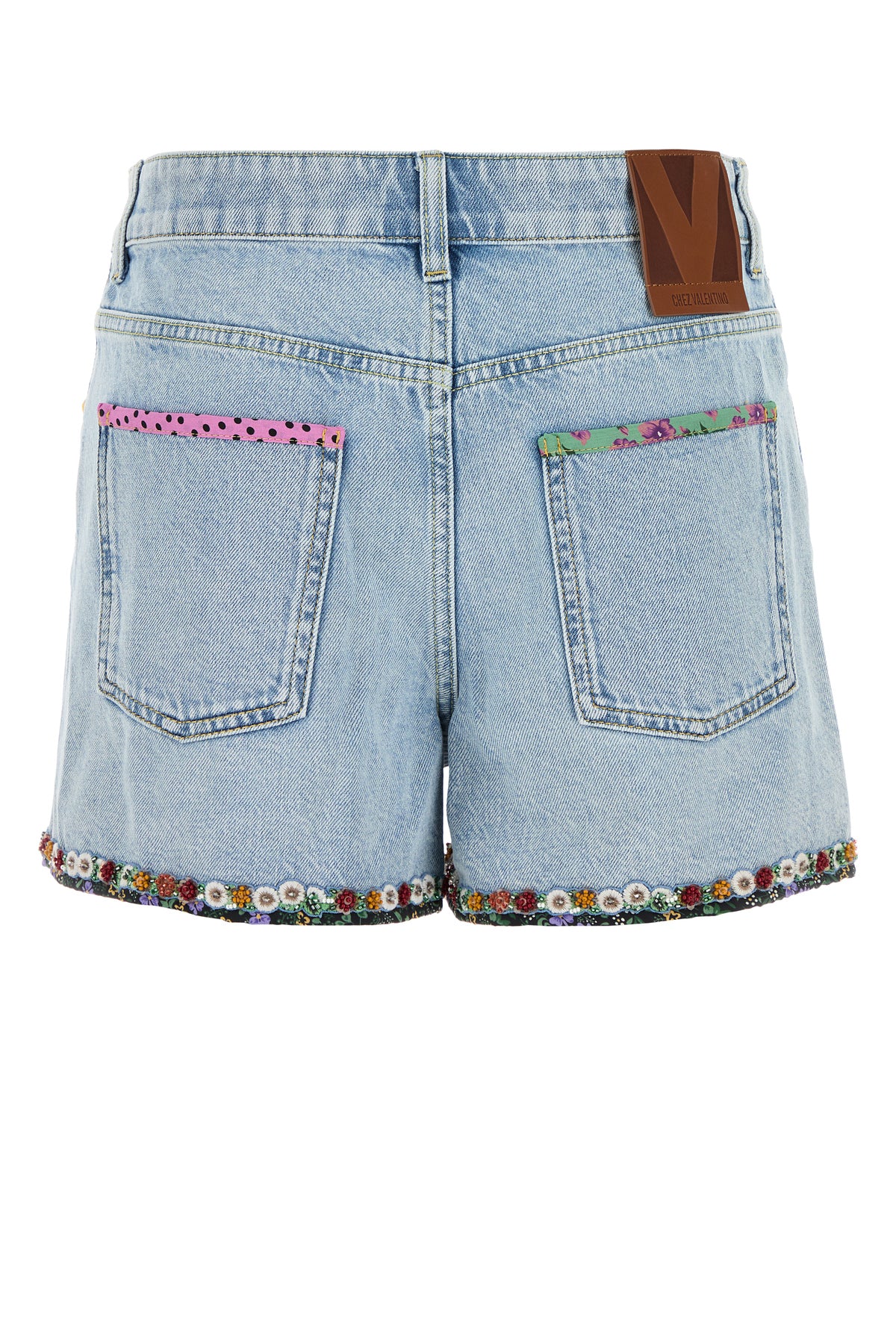 Shorts realized in pure cotton denim characterized by floral embroidery on the hemline.