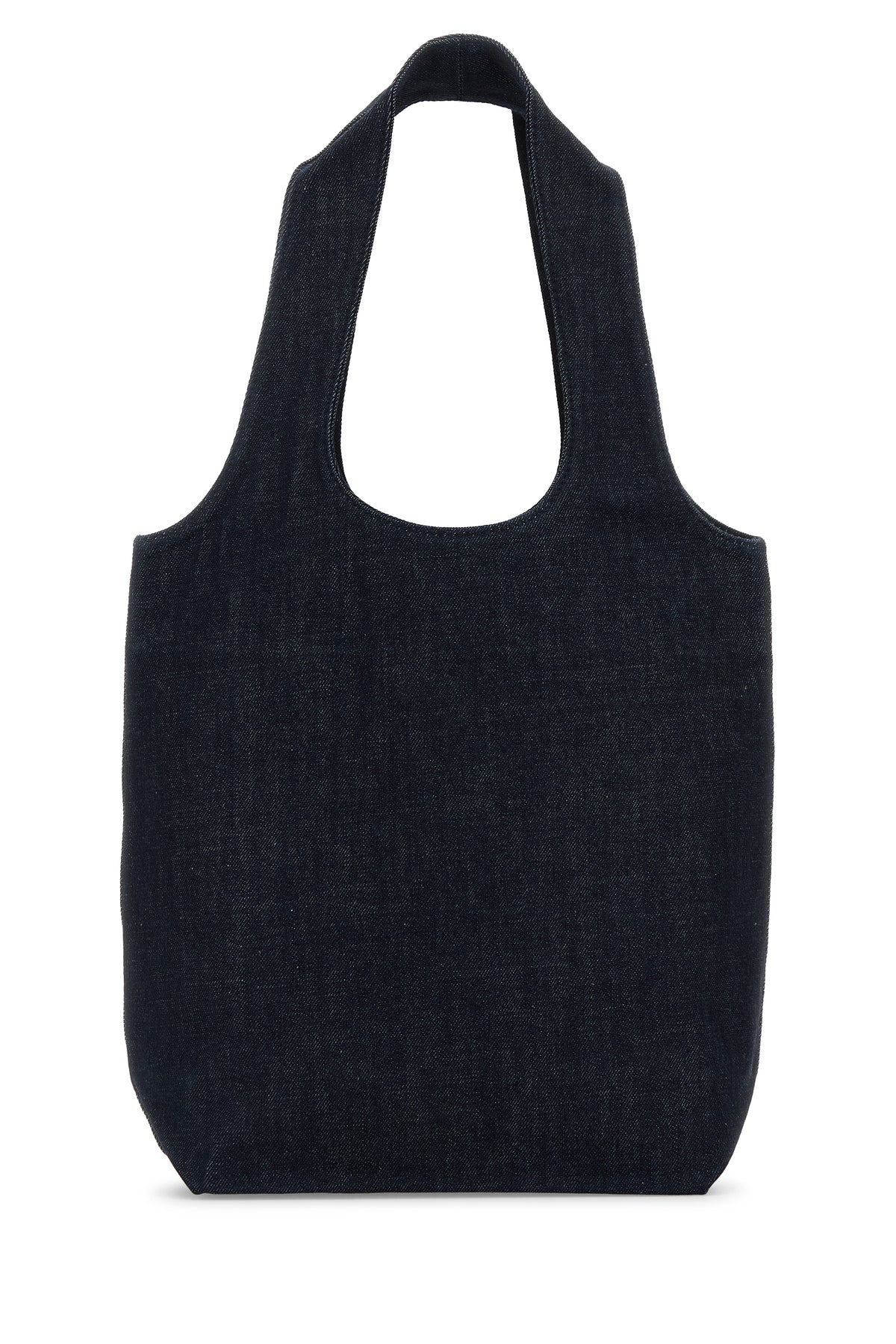 Shopping bag realized in pure cotton denim characterized by contrasting printed logo at the front.