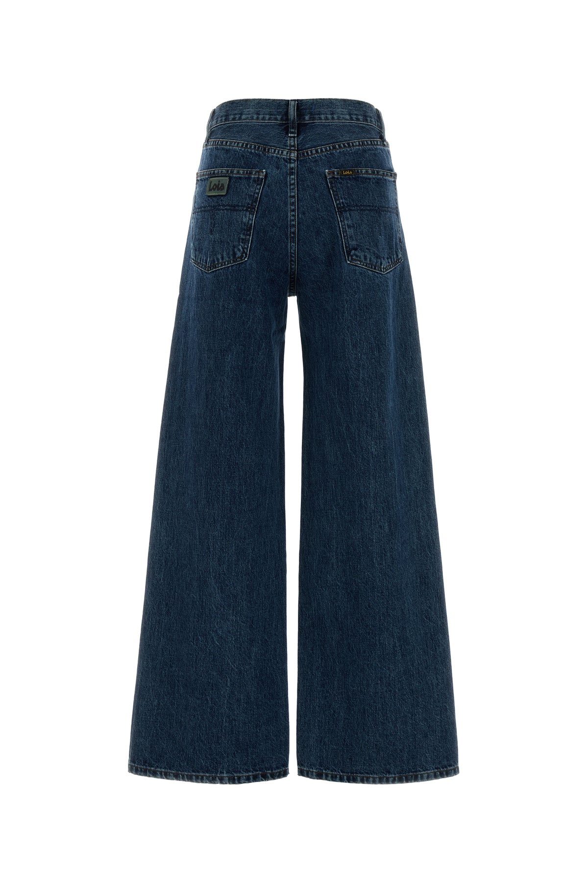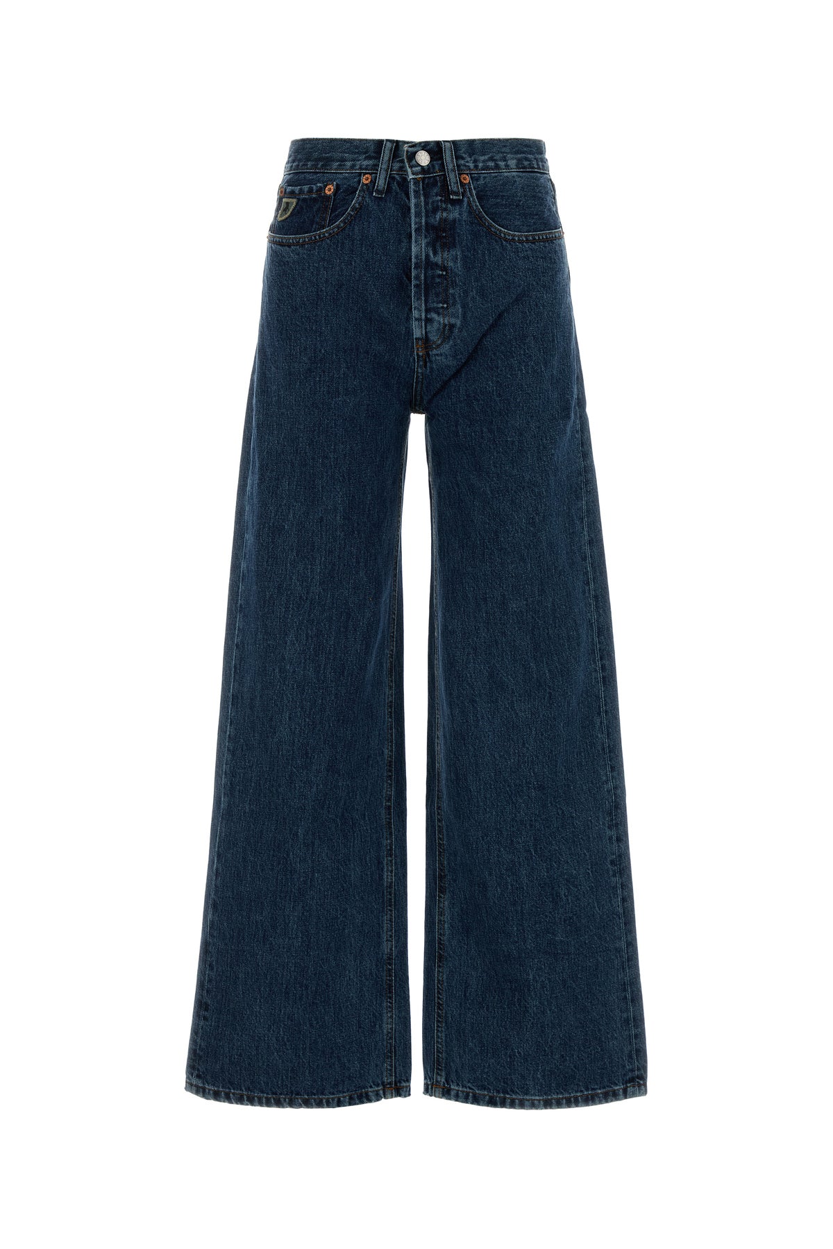 Wide-leg jeans realized in slightly stonewashed cotton and organic cotton denim enriched by logoed label at the front and at the back.