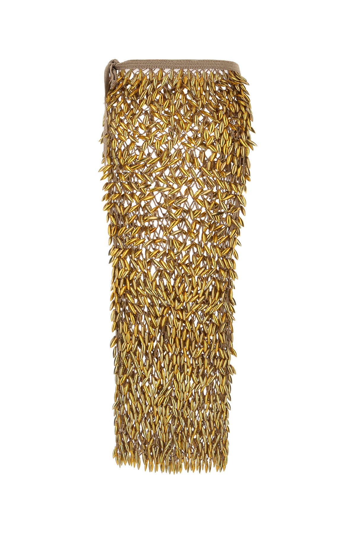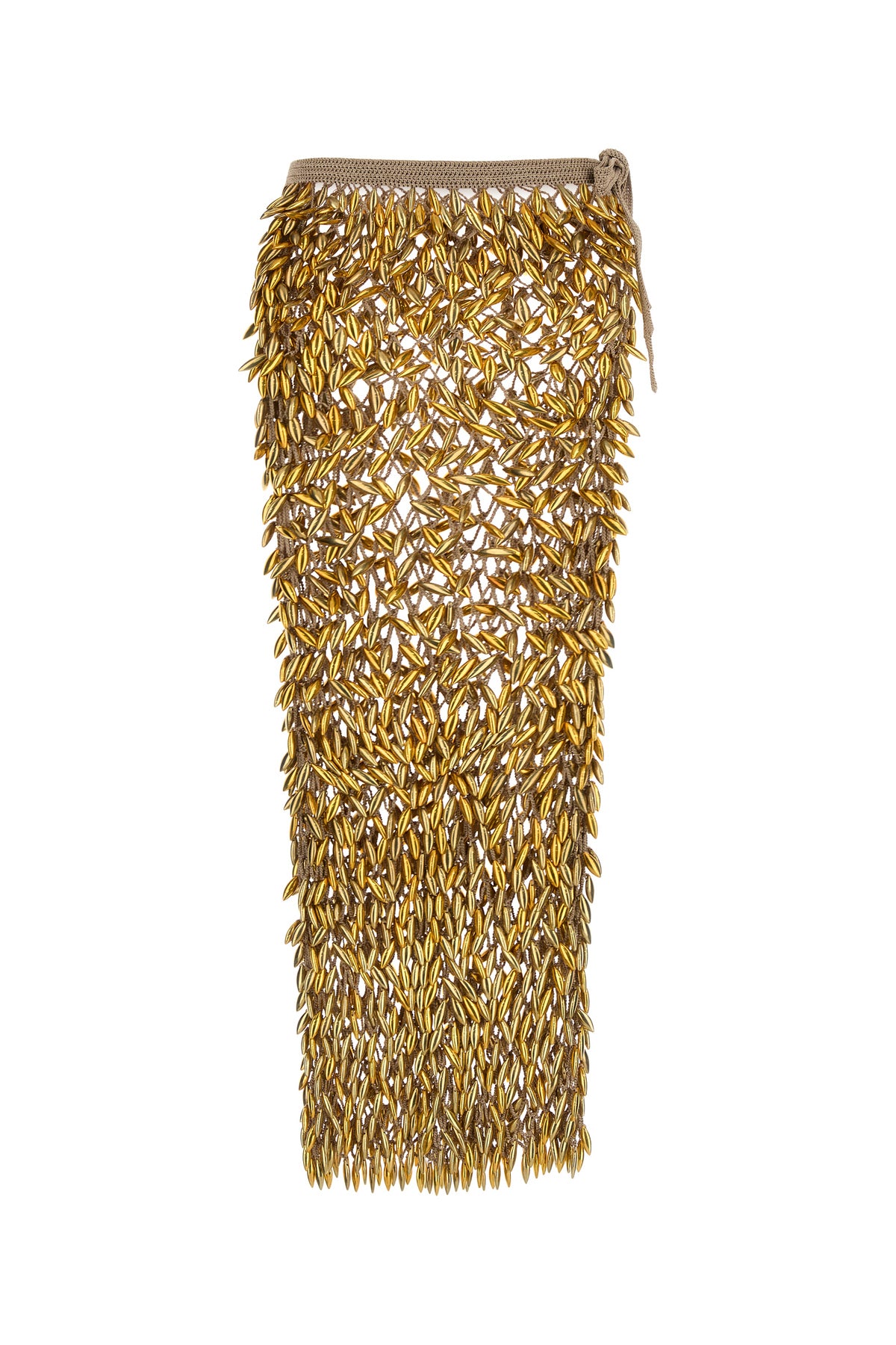 Skirt that can be worn also as a dress realized in crochet enriched by metal embellishments on the entire surface.